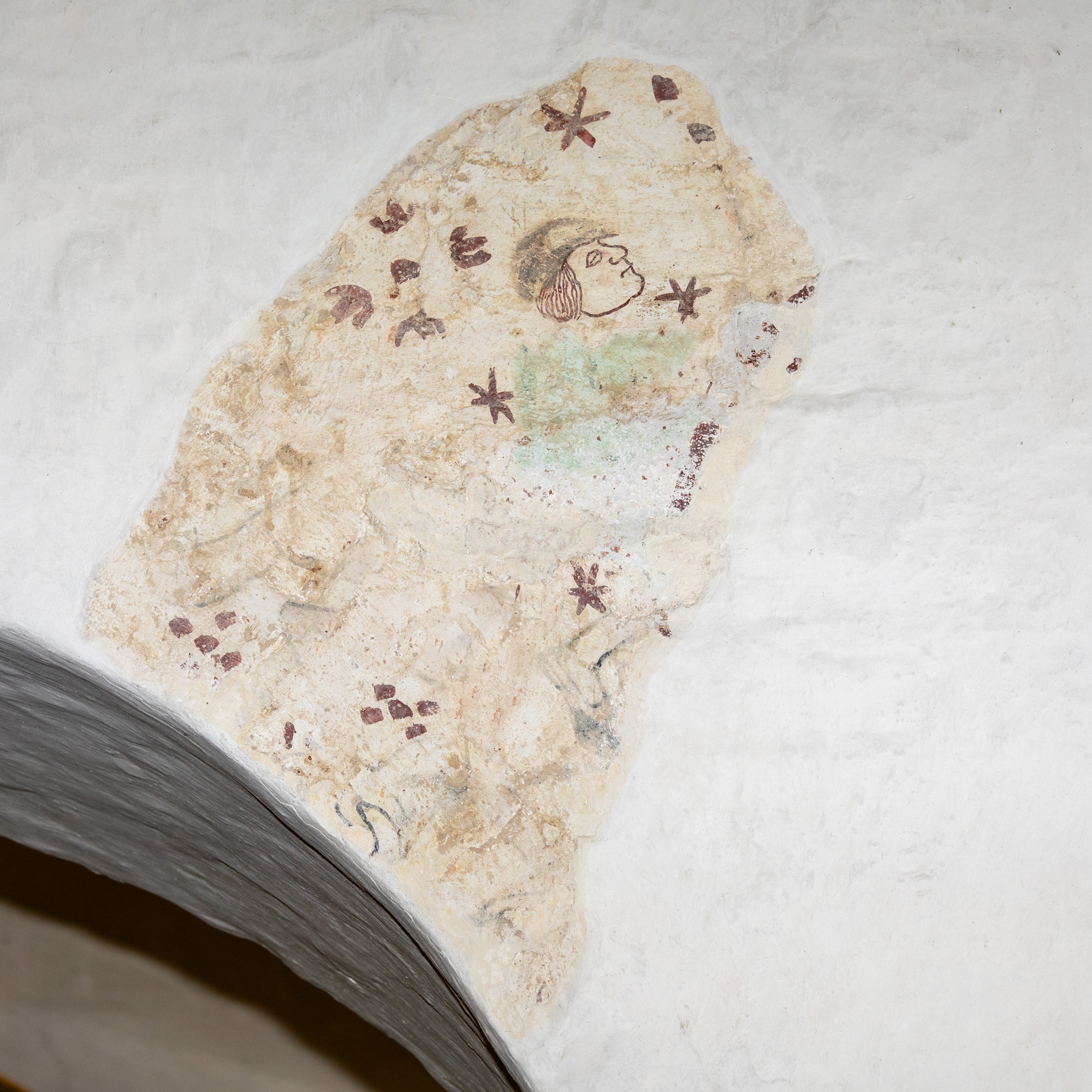 På gjordbuen ses et fragment af et ældre kalkmaleri, som er udført, inden hvælvet blev bygget.