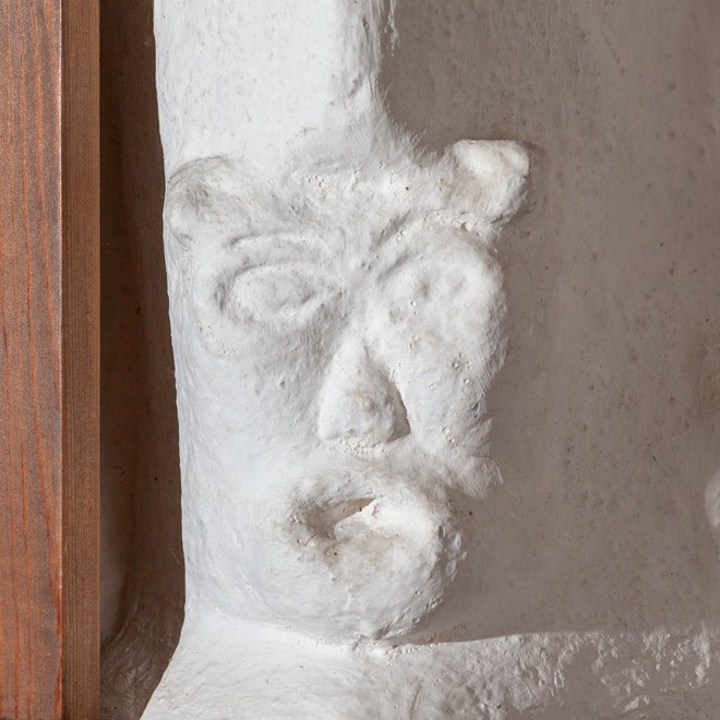 Tårnrummet, som nu er våbenhus, har et krydshvælv, hvor tre af ribbernes nederste afslutning er dekoreret med et ansigt.