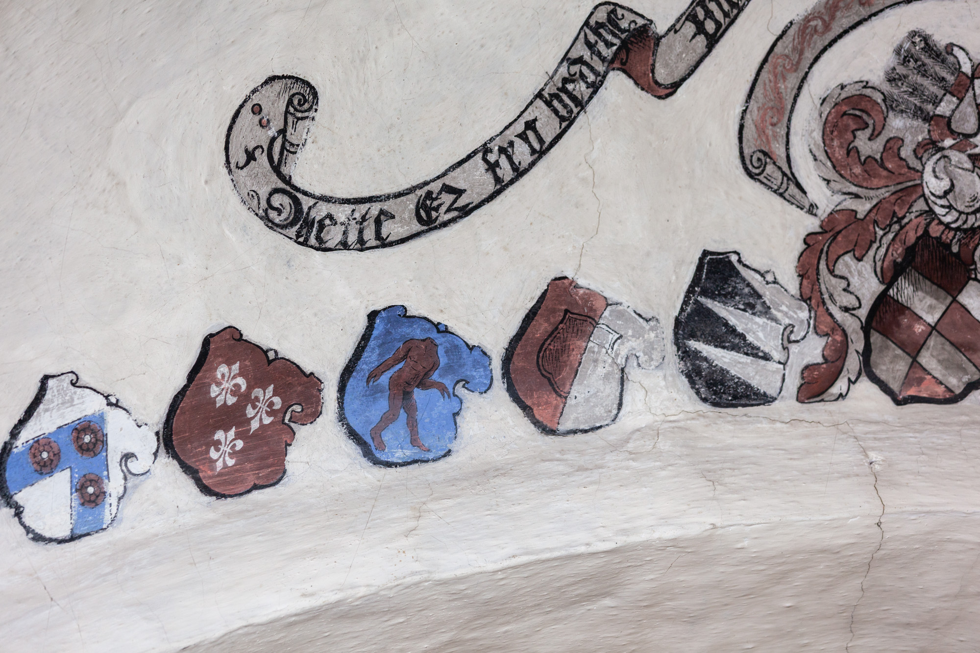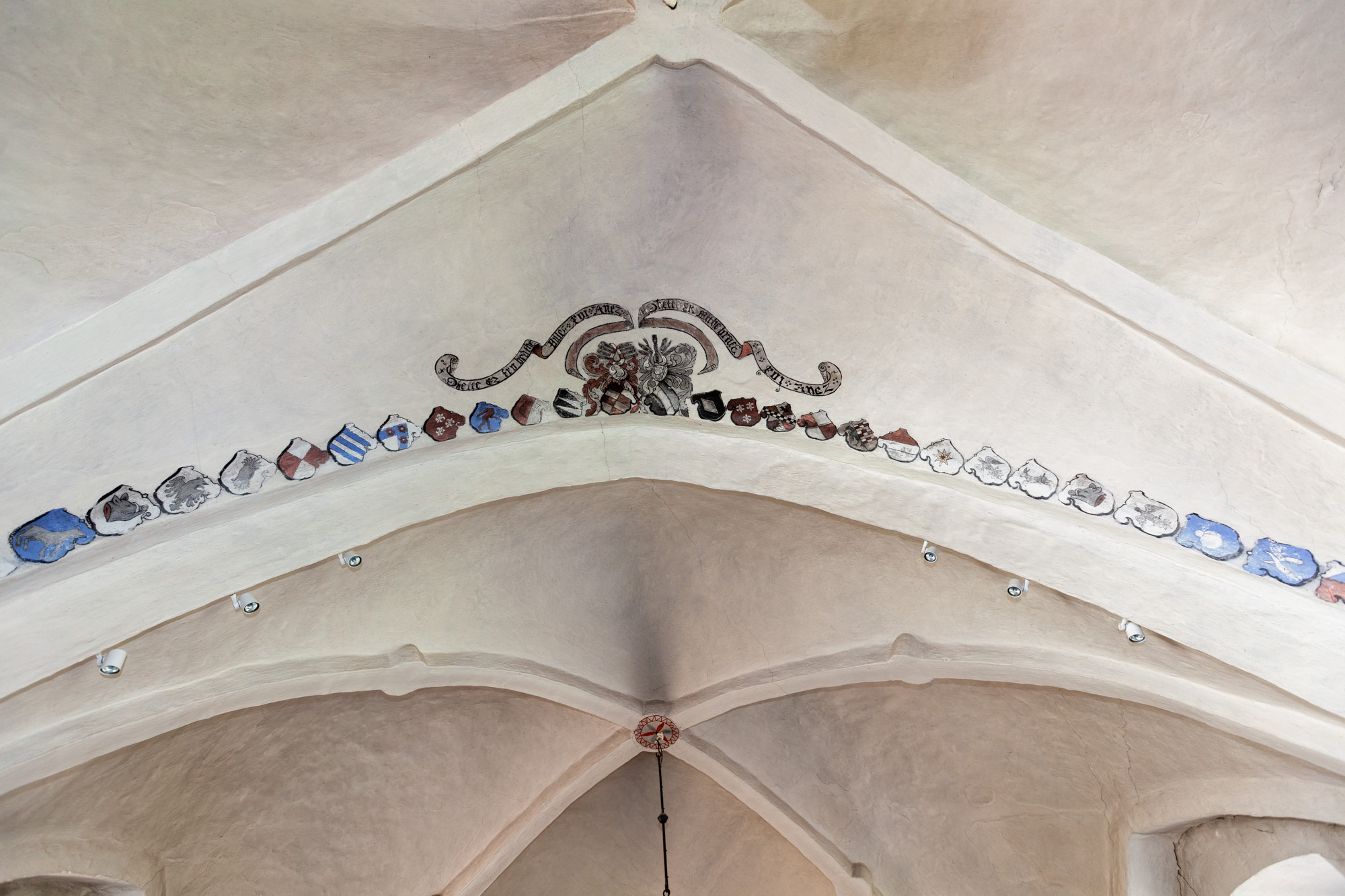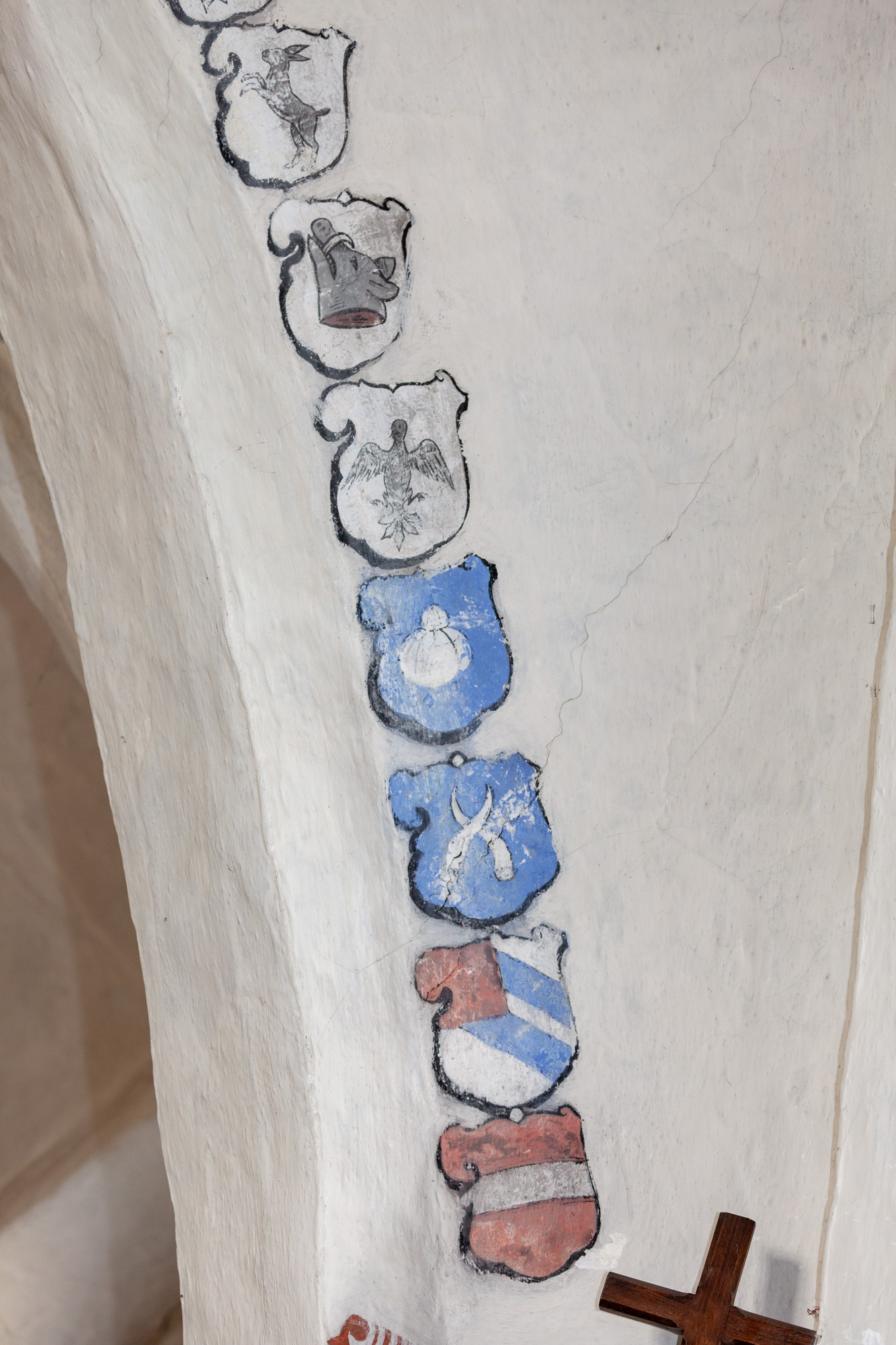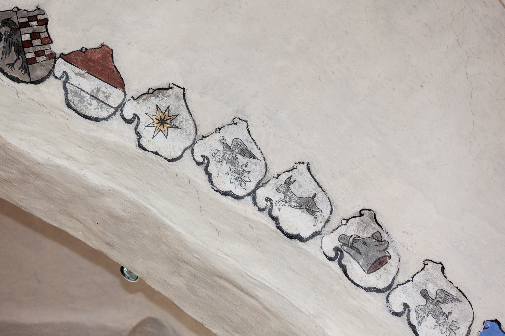I koret findes 2 gange 16 anevåben for Otto Brahe, 1510-1571, og Beate Bille, 1526-1605. De blev gift i 1544. Derfor kan de dateres til perioden 1544-1571. På båndene står der: