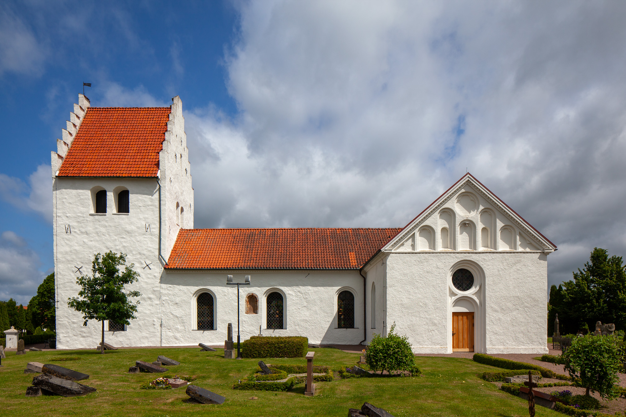 Den romanske kirke bestod af skib, kor og apsis. I senmiddelalderen blev tårnet bygget samt et våbenhus på skibets sydside. Tårnet er kvadratisk og har samme bredde som skibet. Det blev forhøjet 1769. I senmiddelalderen blev der bygget hvælvinger. To tilmurede romanske vinduer er bevaret på skibets nord- og sydside.