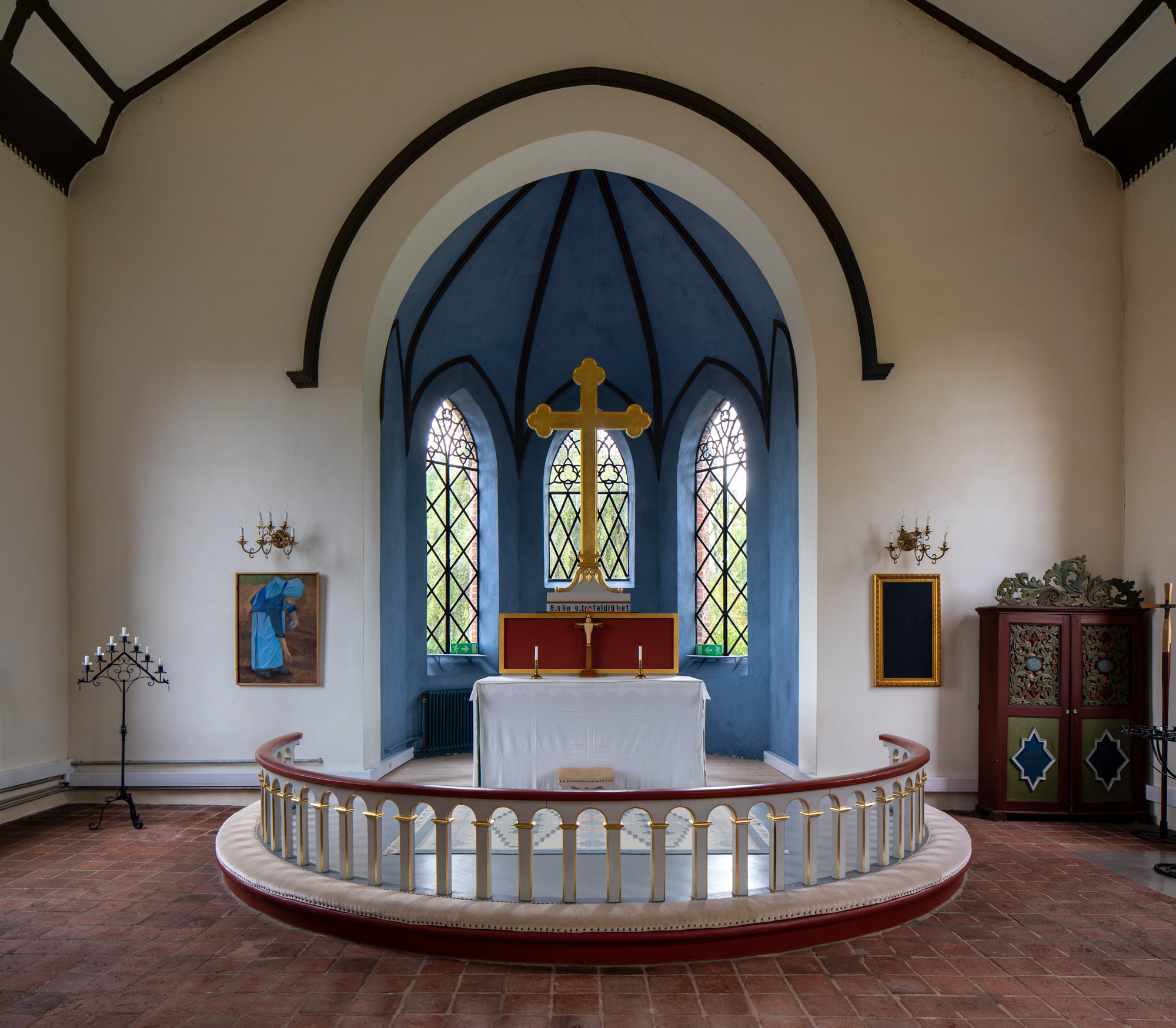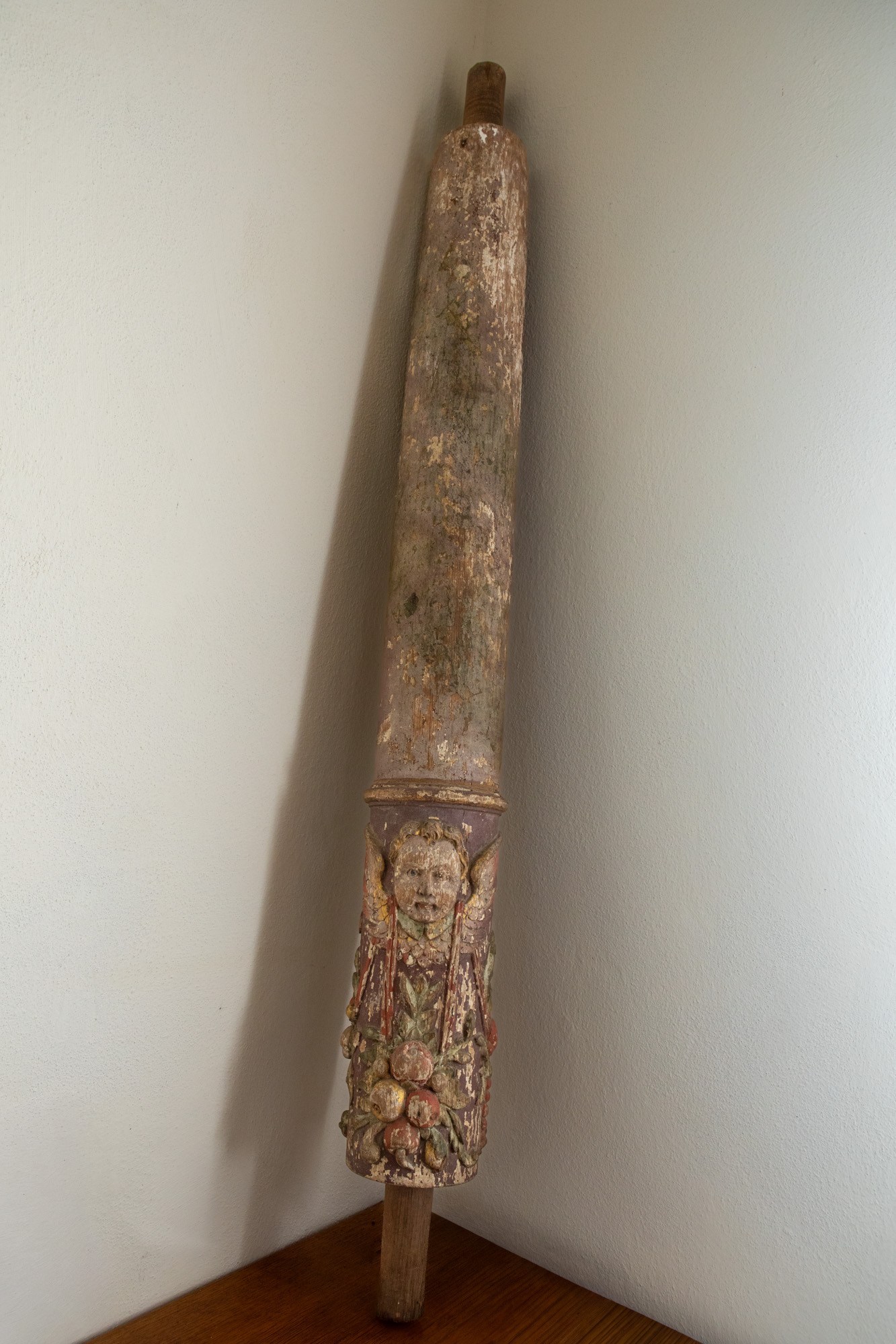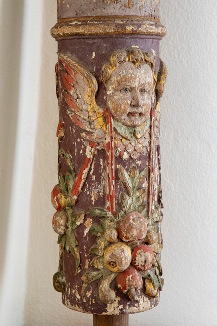 Af en ellers forsvunden renæssancealtertavle er bevaret en søjle med prydbælte.