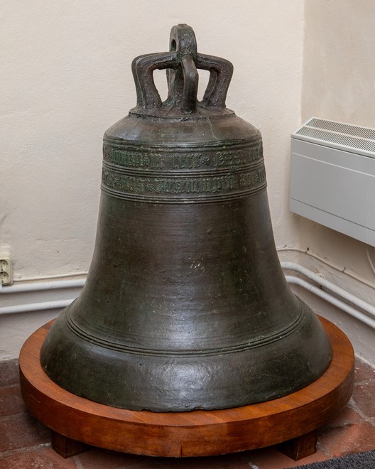 Klokken er støbt af den tyske klokkestøber Hans Ghyse. Det er formodentlig den samme Hans Giese, som har støbt den store klokke i Stralsund S. Marienkirche 1432.