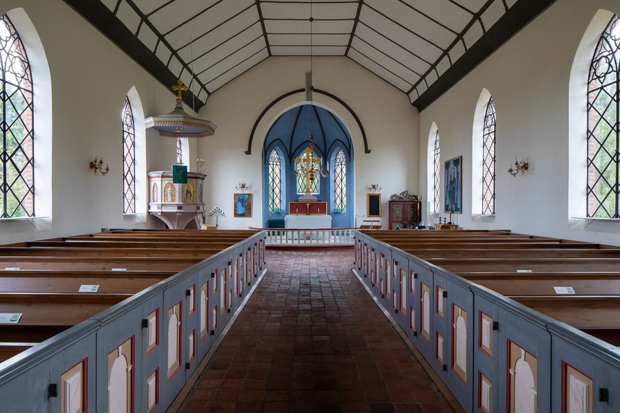 Den middelalderlige kirke bestod af skib og kor. Bygningen var kalket. Et tårn, der blev opført i 1824, har sikkert afløst en fritstående klokkestabel. På et tidspunkt blev kirken forlænget mod øst. Denne forlængelse havde et tøndehvælv af brædder, mens de ældre dele af kirken havde krydshvælv. Da kirken blev revet ned i 1870, blev inventaret solgt på auktion med undtagelse af døbefont, et dåbsfad, to klokker og et skab.