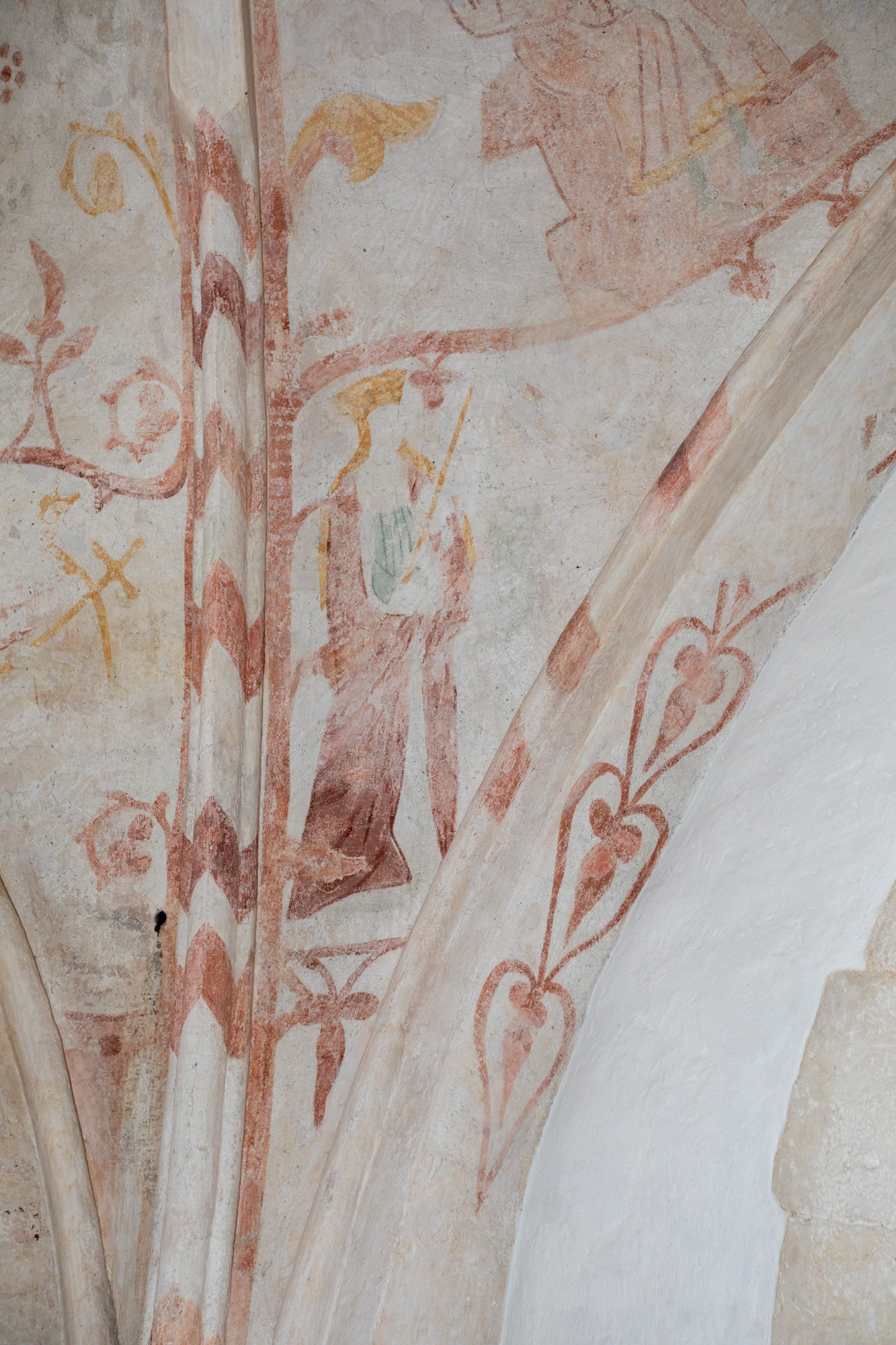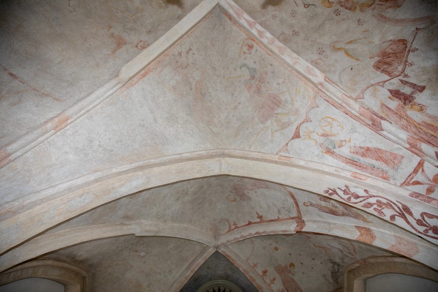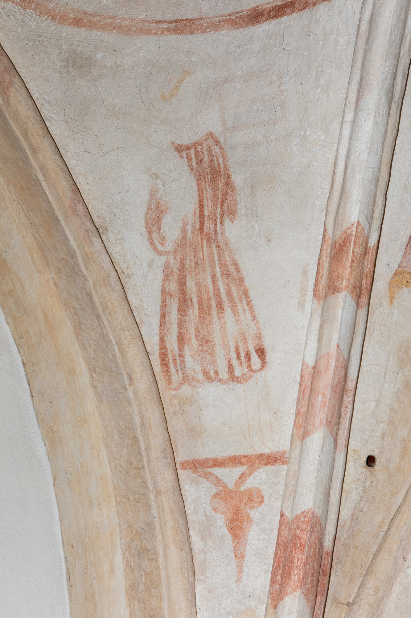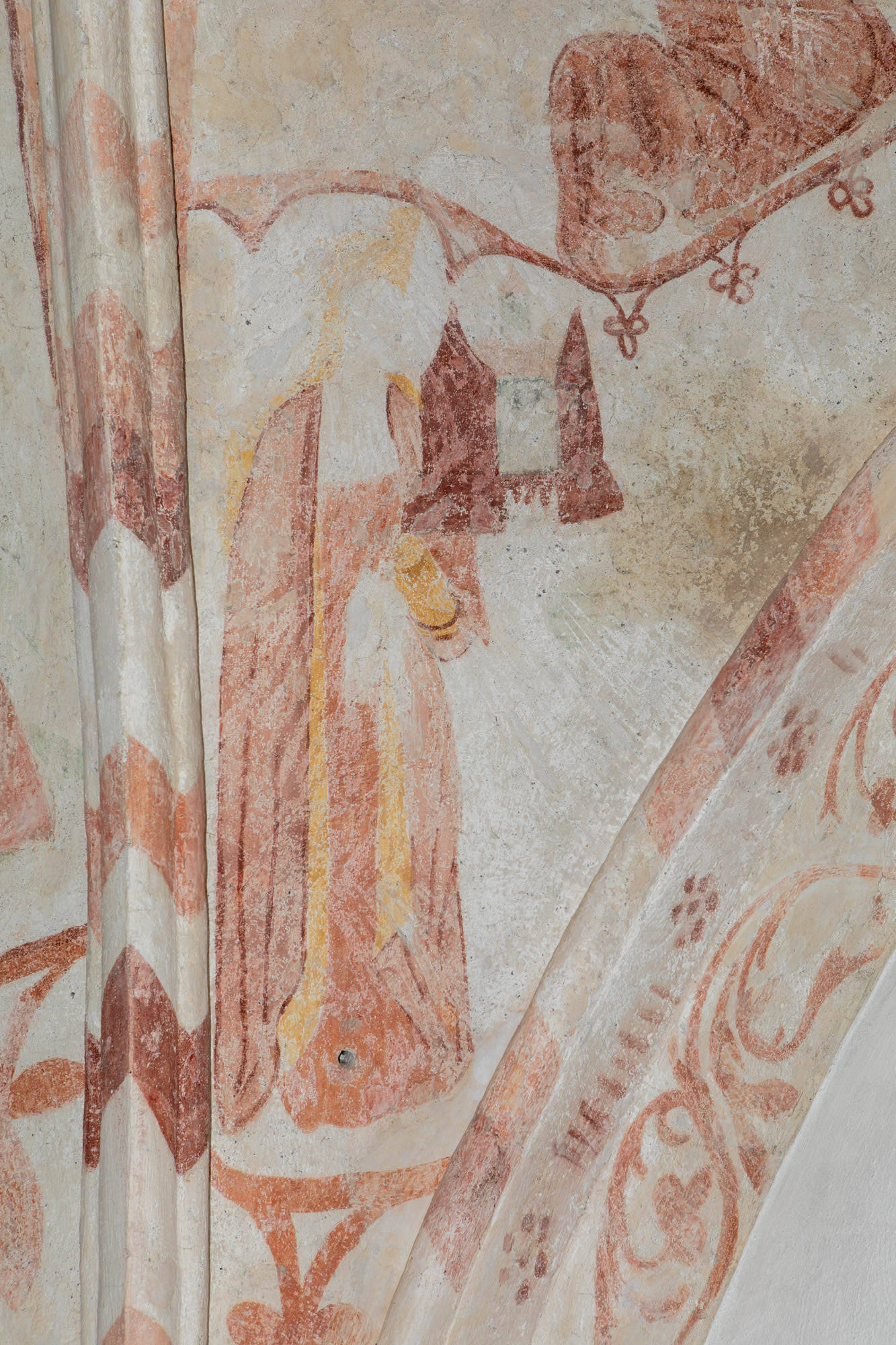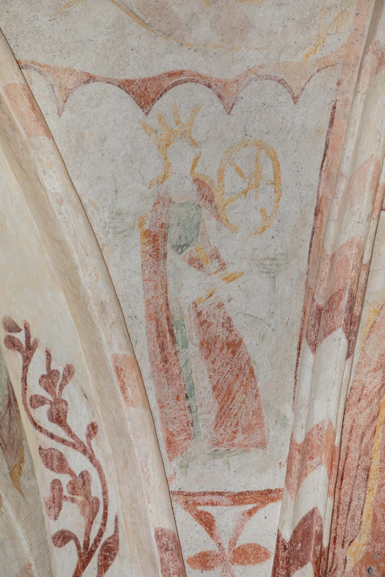 I sviklerne ses S. Gertrud med tårn og en udvisket fremstilling af S. Margareta.