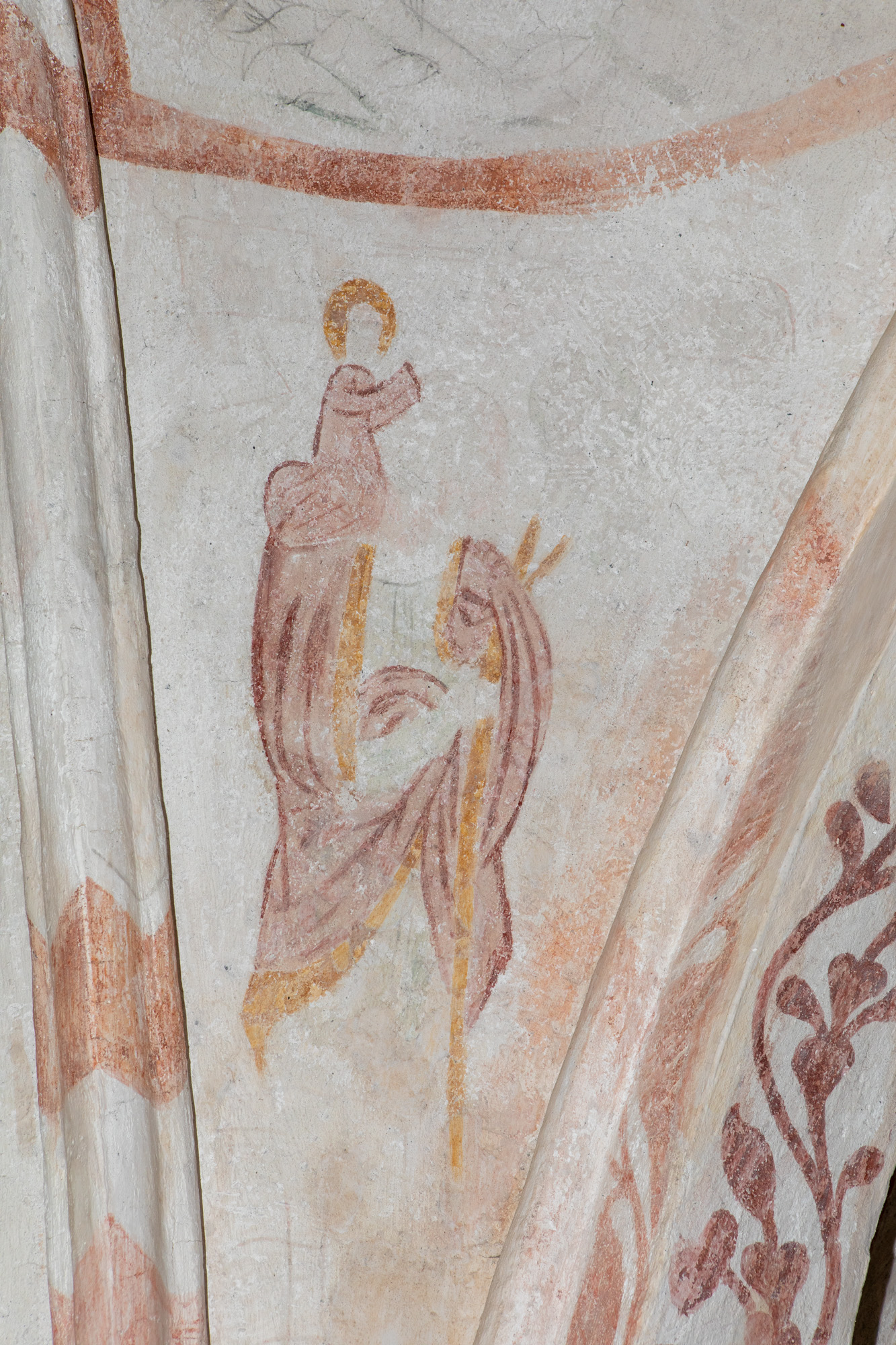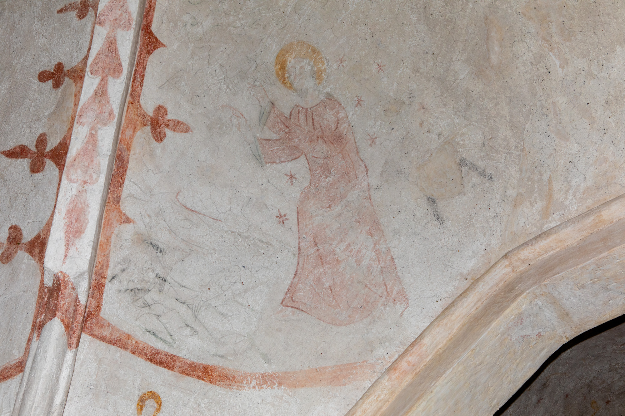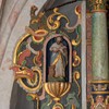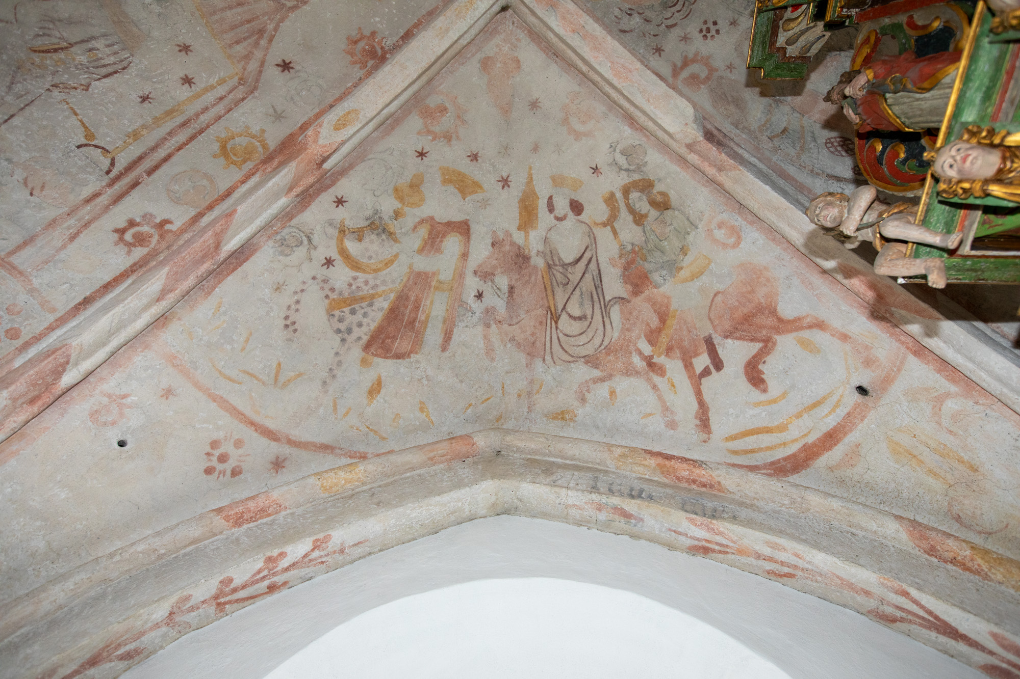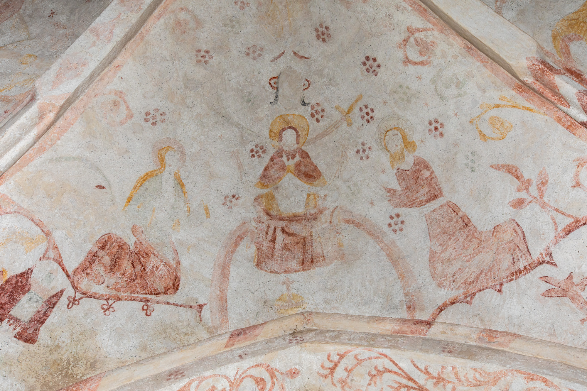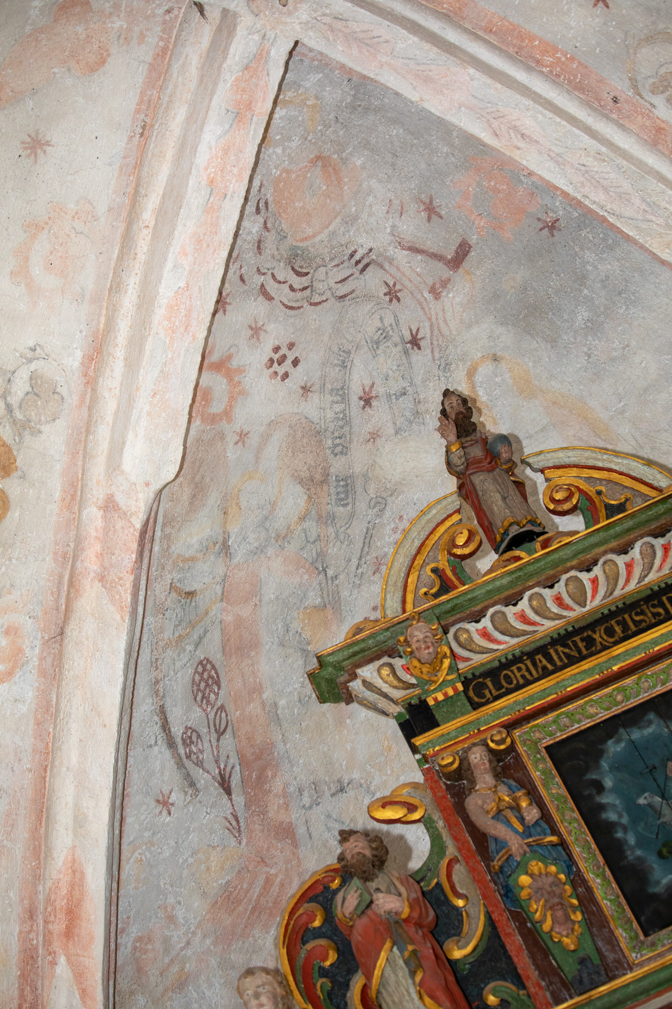 I sviklerne ses S. Gertrud med tårn og en udvisket fremstilling af S. Margareta.