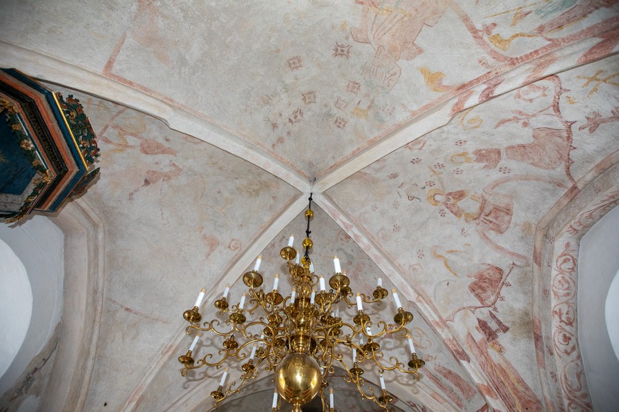 Kalkmalerierne er sengotiske 1475-1500 og omfatter hvælvene i koret og 1. og 2. fag i skibet. Der er nogle få fragmenter på væggene. De er alle sammen lidt utydelige.