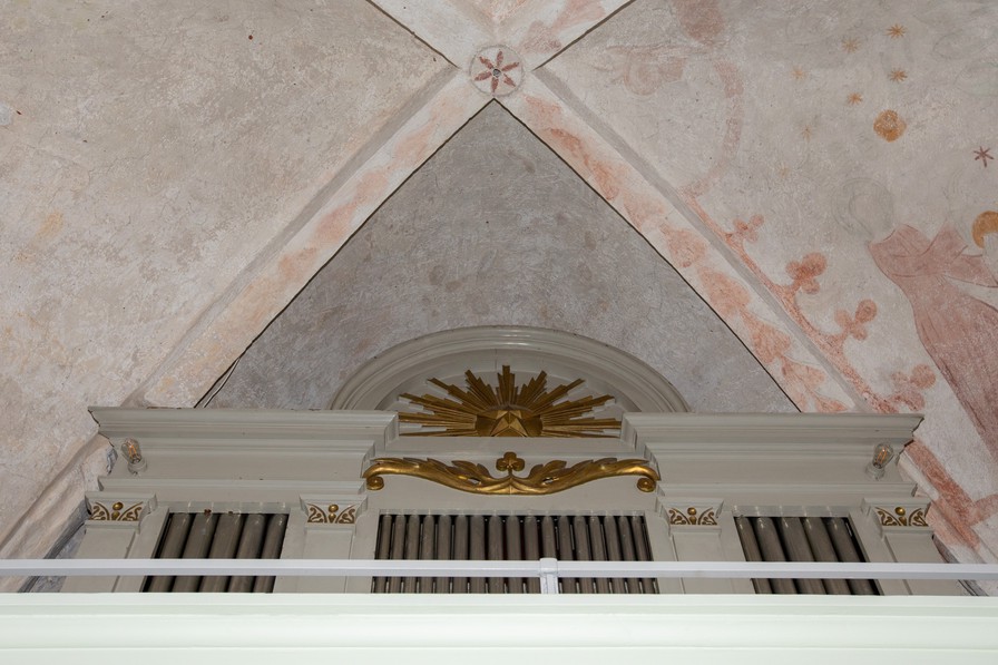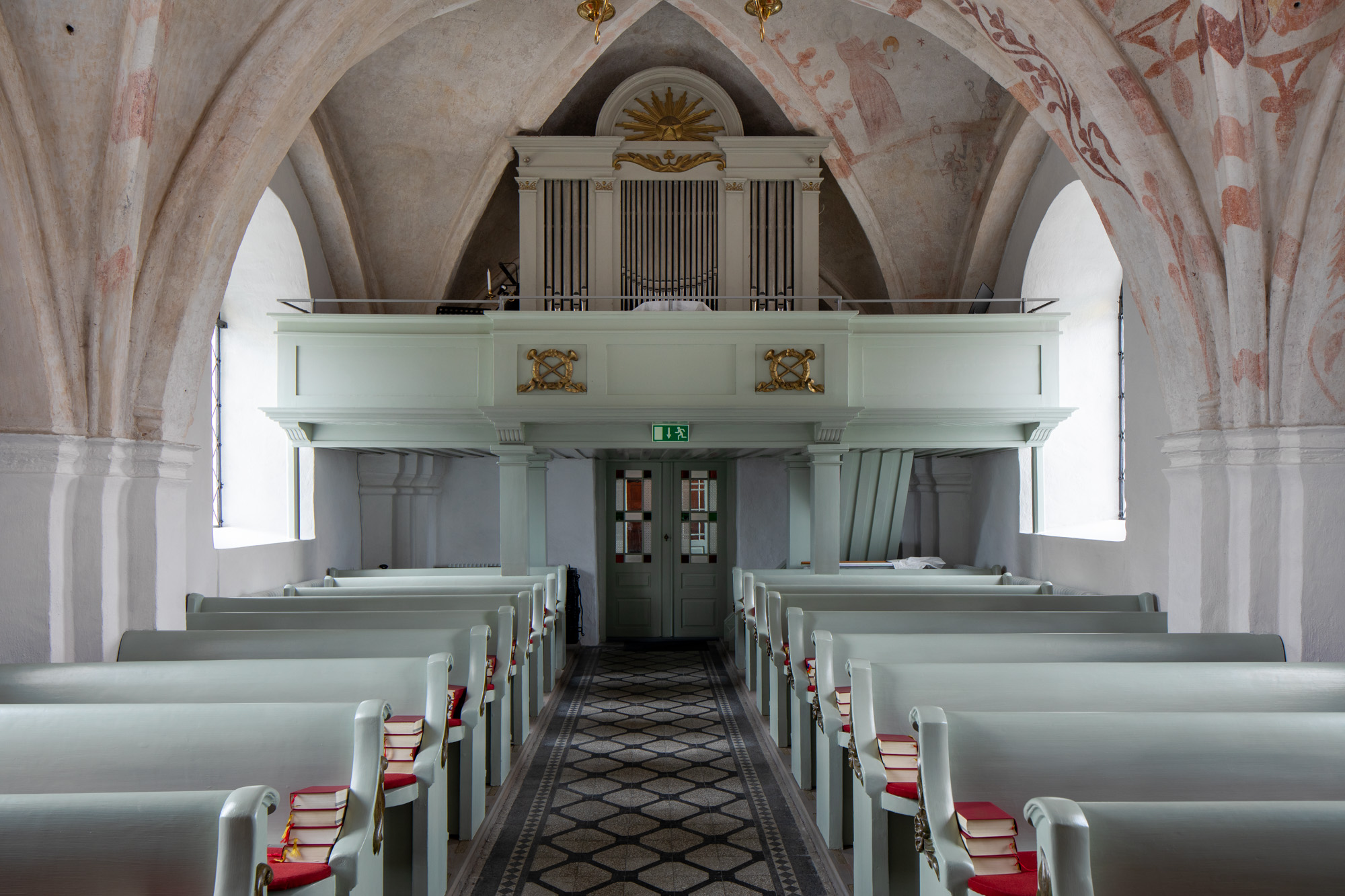 Vestkappe. Der skal være nogle farvespor bag orglet.