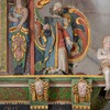 Østkappe. Bebudelsen: Gabriel knæler for Maria. Længst mod syd anes læsepulten. På skriftbåndet ved Gabriel står der: ”Ave gracia plena dominus [te]cum”