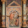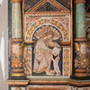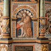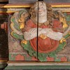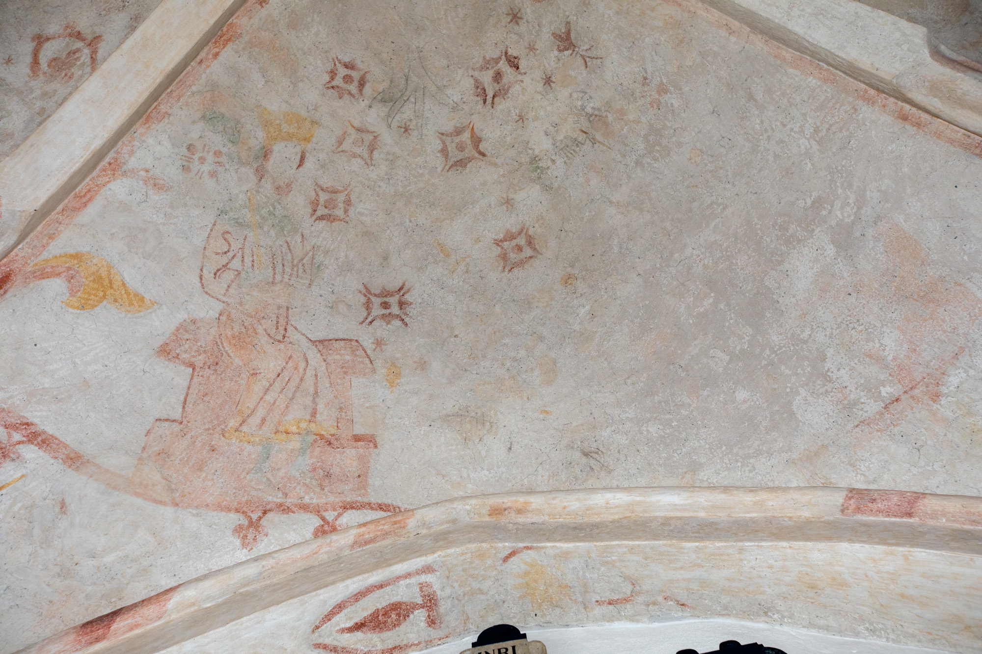 Østkappe. Barnemordet i Betlehem: Det meste af billedet er udslettet. Synlig er stort set kun kong Herodes, der sidder på sin tronstol og udsteder ordren.