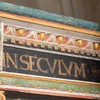 Sydkappe. Besøgelsen. Maria og Elisabeth kan netop skimtes. Den fragmentariske inskription lyder: ”Elisabe[t eterni patris] filium.