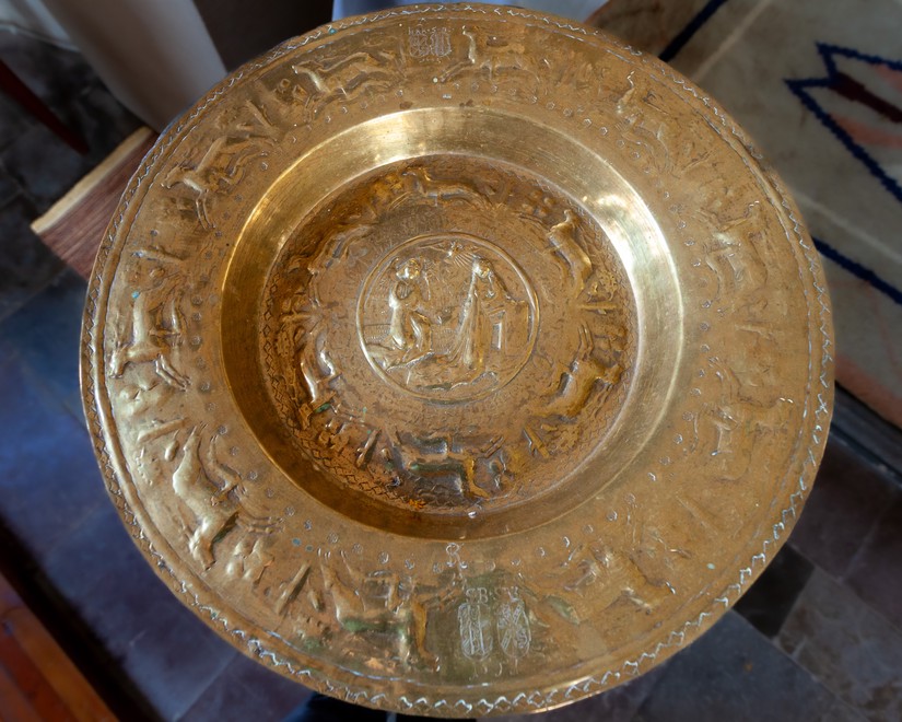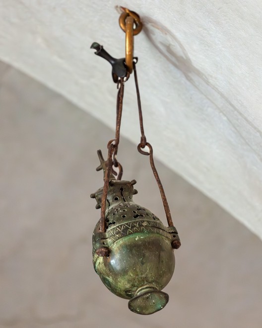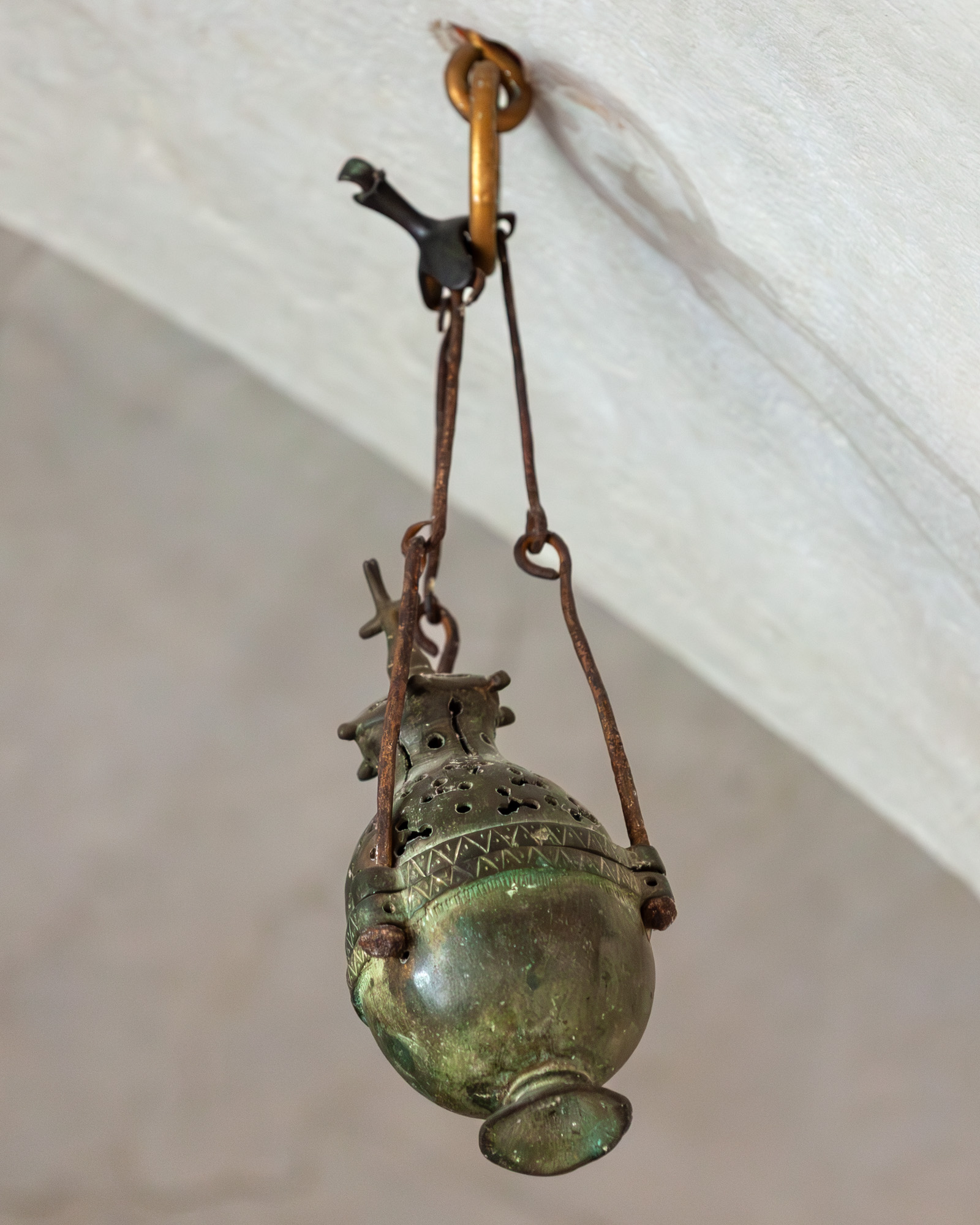 Et røgelseskar fra slutningen af 1200-tallet hænger i tribunbuen.