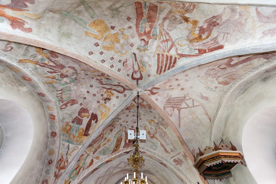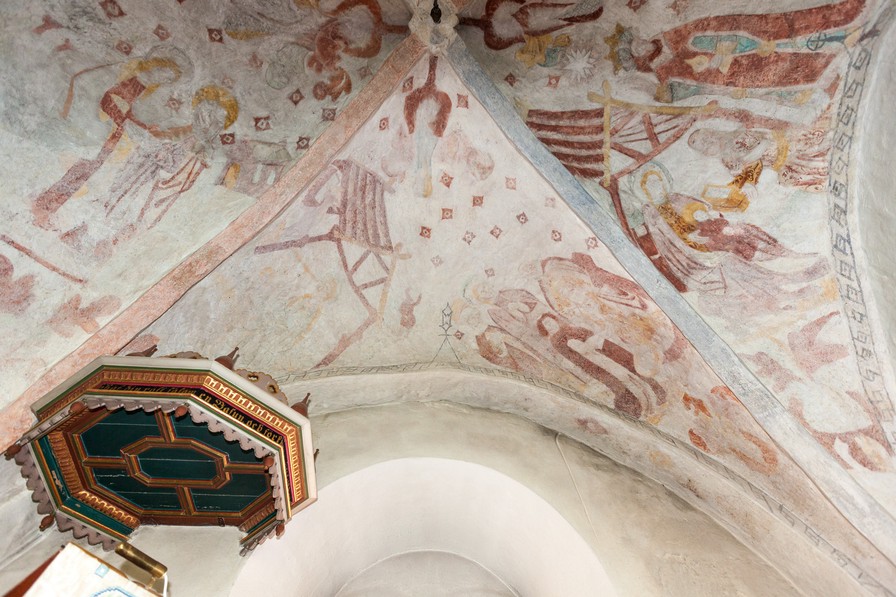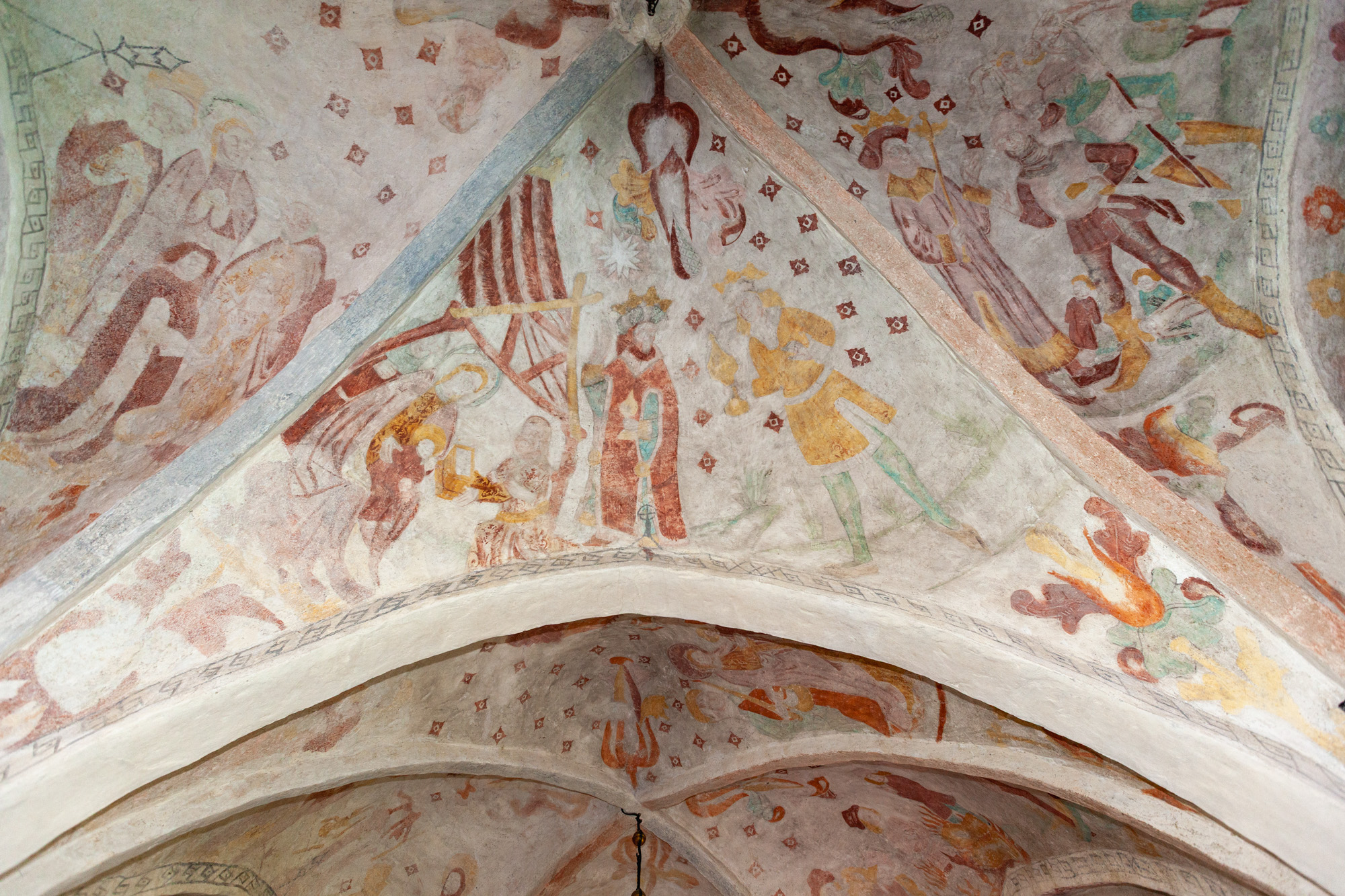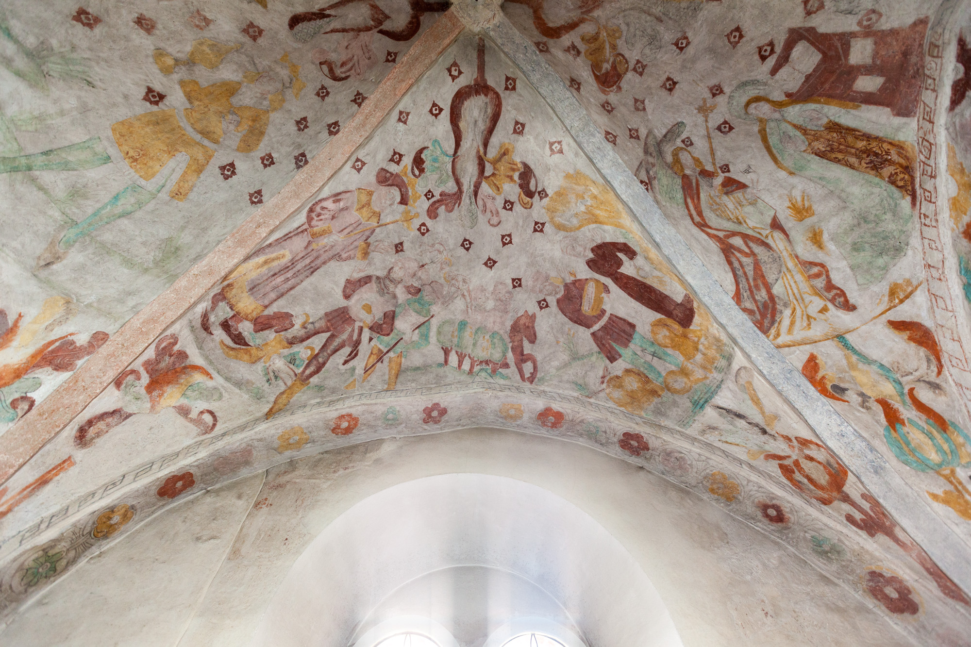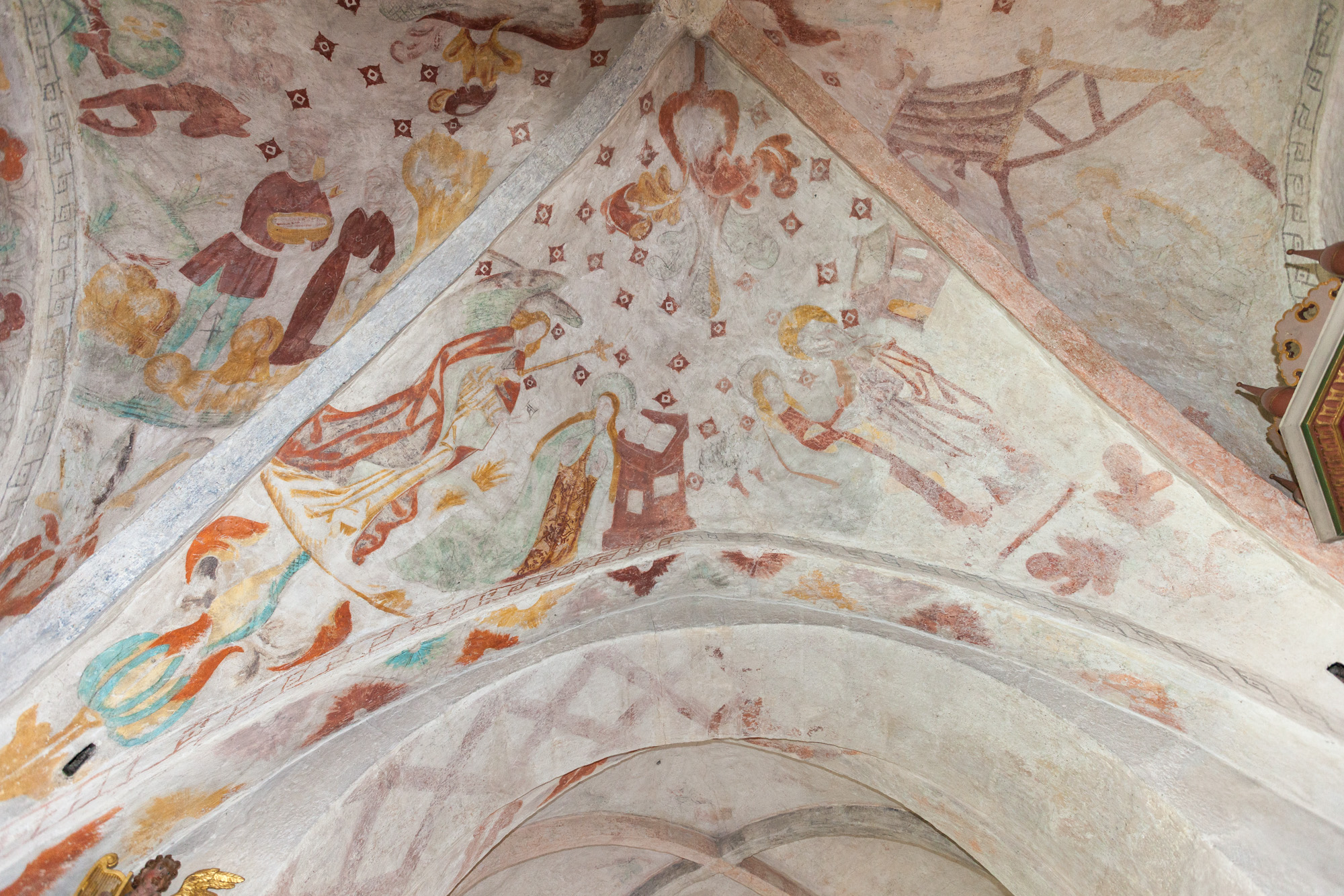 Kalkmalerierne er udført af Kongeværkstedet 1500-1525.