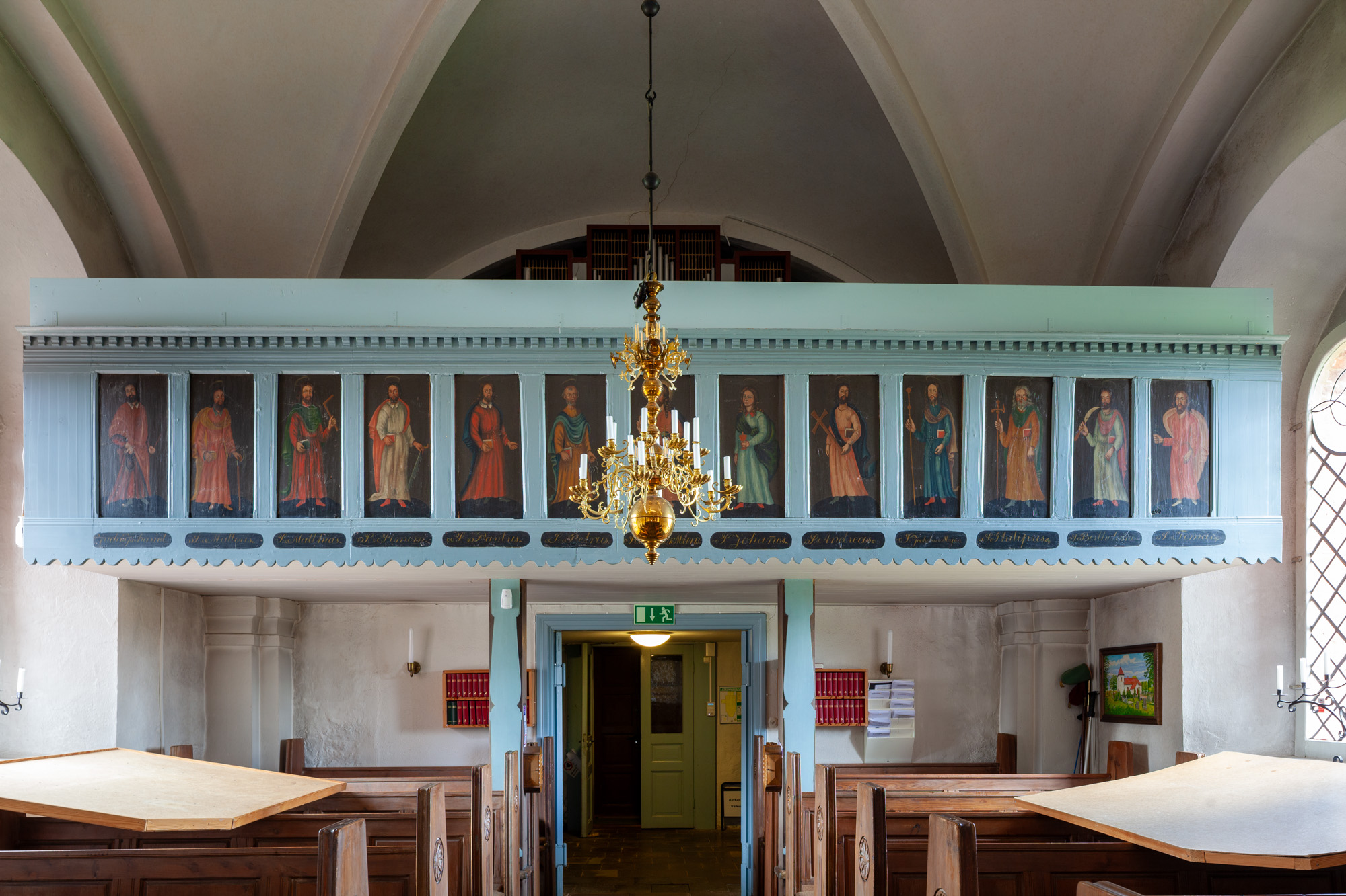 I skibets vestende findes et orgelpulpitur fra 1700-tallets begyndelse.