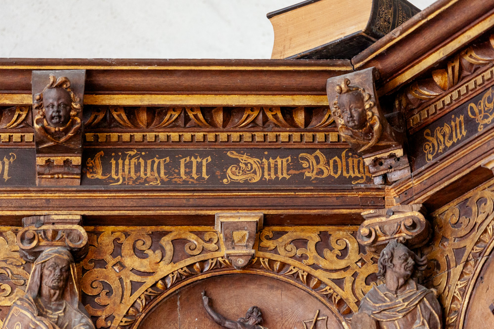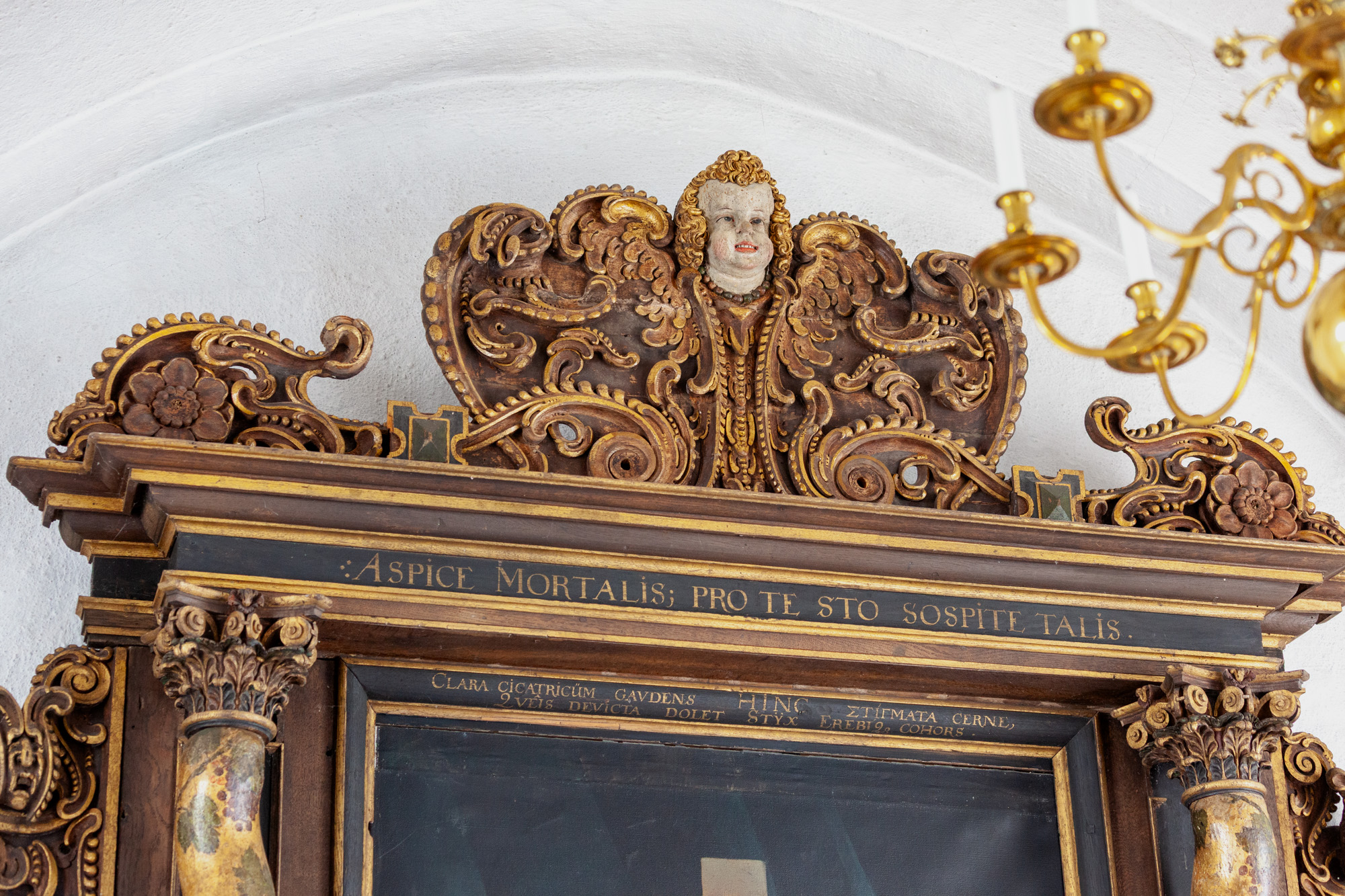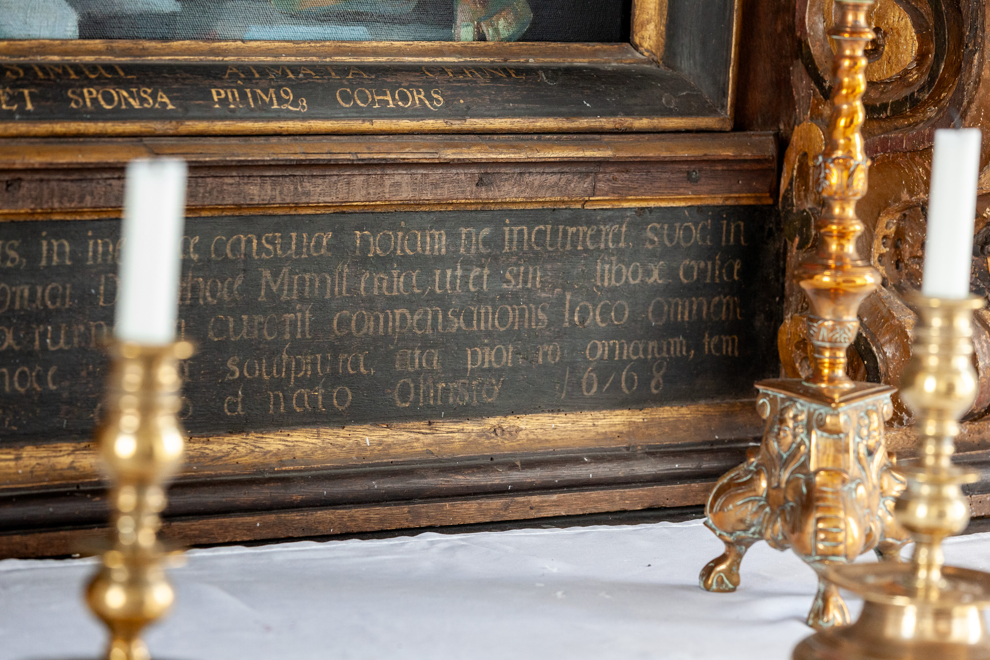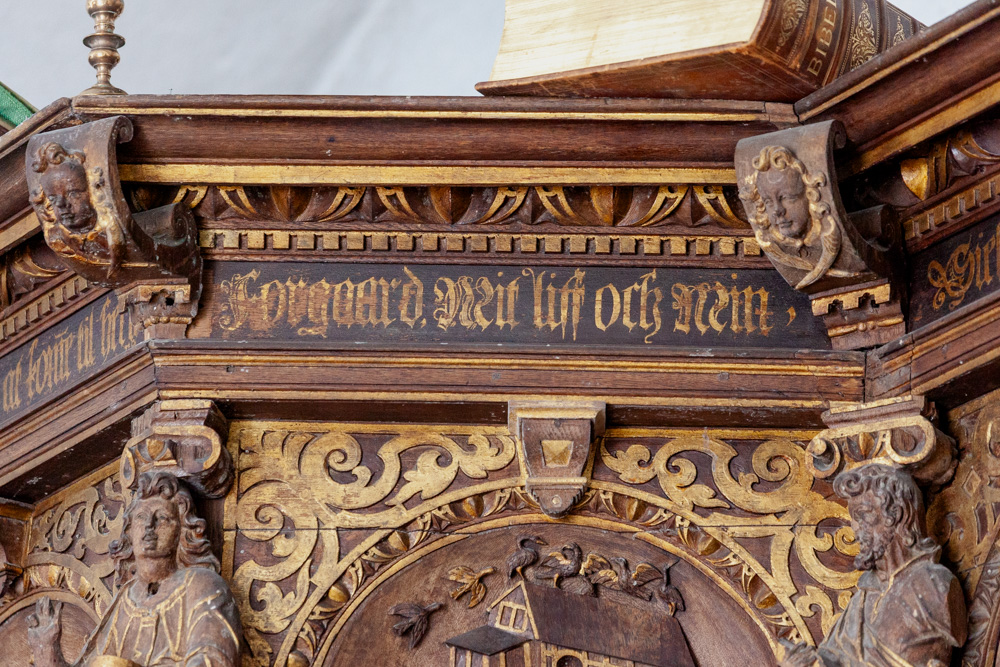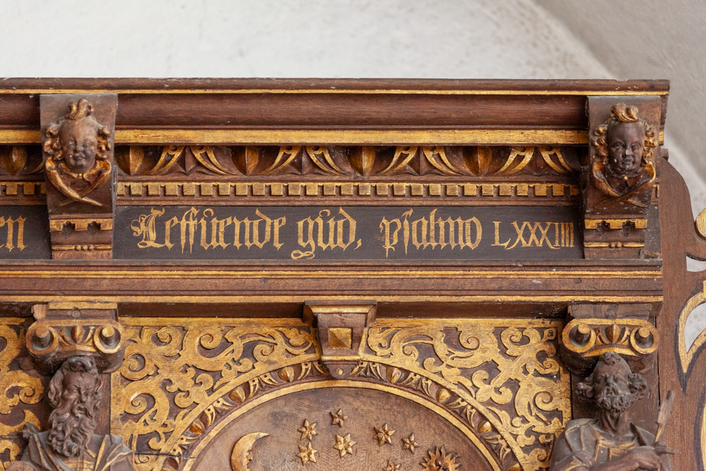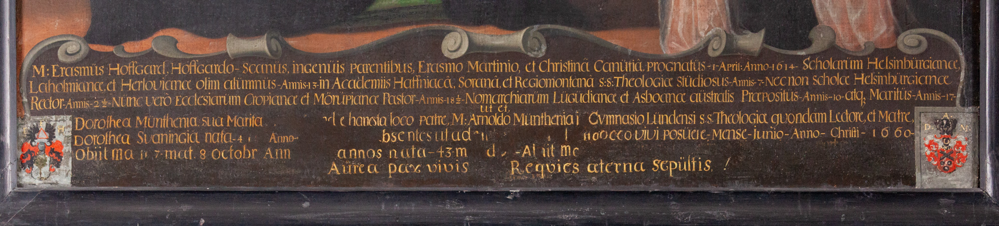 Herre Zebaoth Huor Lÿstige ere Dine Boliger. Min Siel Lengis och Begerer Inderlig at komme til herrens Forgaard. Mit liff och min Siel Gleder sig i Den Leffuende gud, psalmo LXXXIIII. (Hvor er din bolig vidunderlig, Hærskarers Herre! Min sjæl fortæres af længsel efter Herrens forgårde, mit hjerte og min krop råber efter den levende Gud. Ps. 84,2-3.)