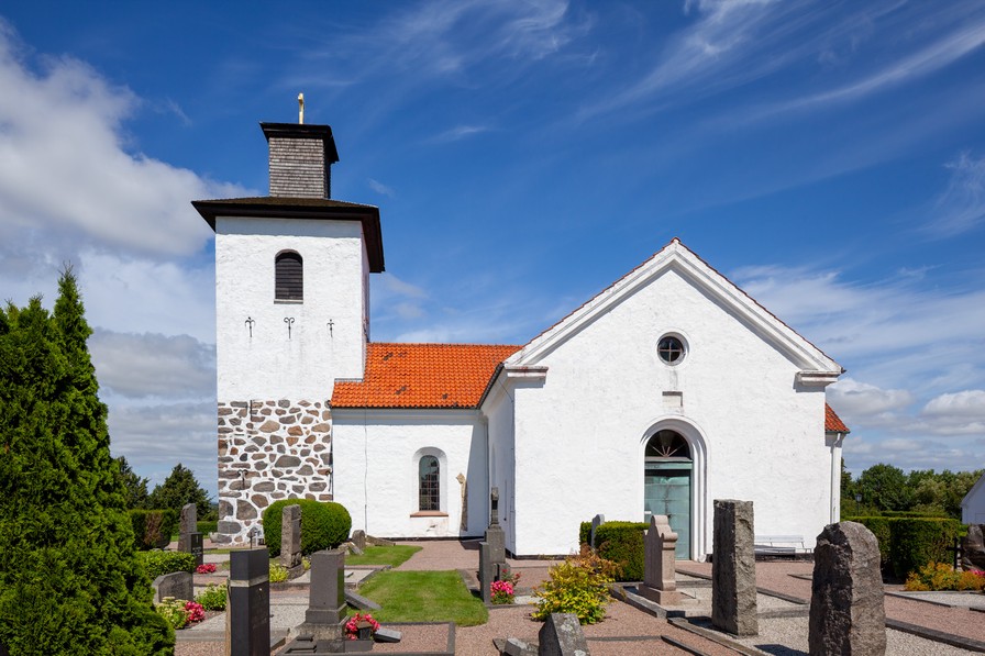 Kirken menes at være opført i første halvdel af 1100-tallet. Den bestod oprindeligt af skib og kor. Den er opført af fint tilhuggede sandsten. Tårnets planform er kvadratisk og smallere end skibets bredde. Det er usikkert, hvornår det er opført. På tårnets nordside er der et kvadratisk trappetårn med vindeltrappe. På en kvadersten er et stenhuggermærke, som svarer til en stenmester på domkirken.
