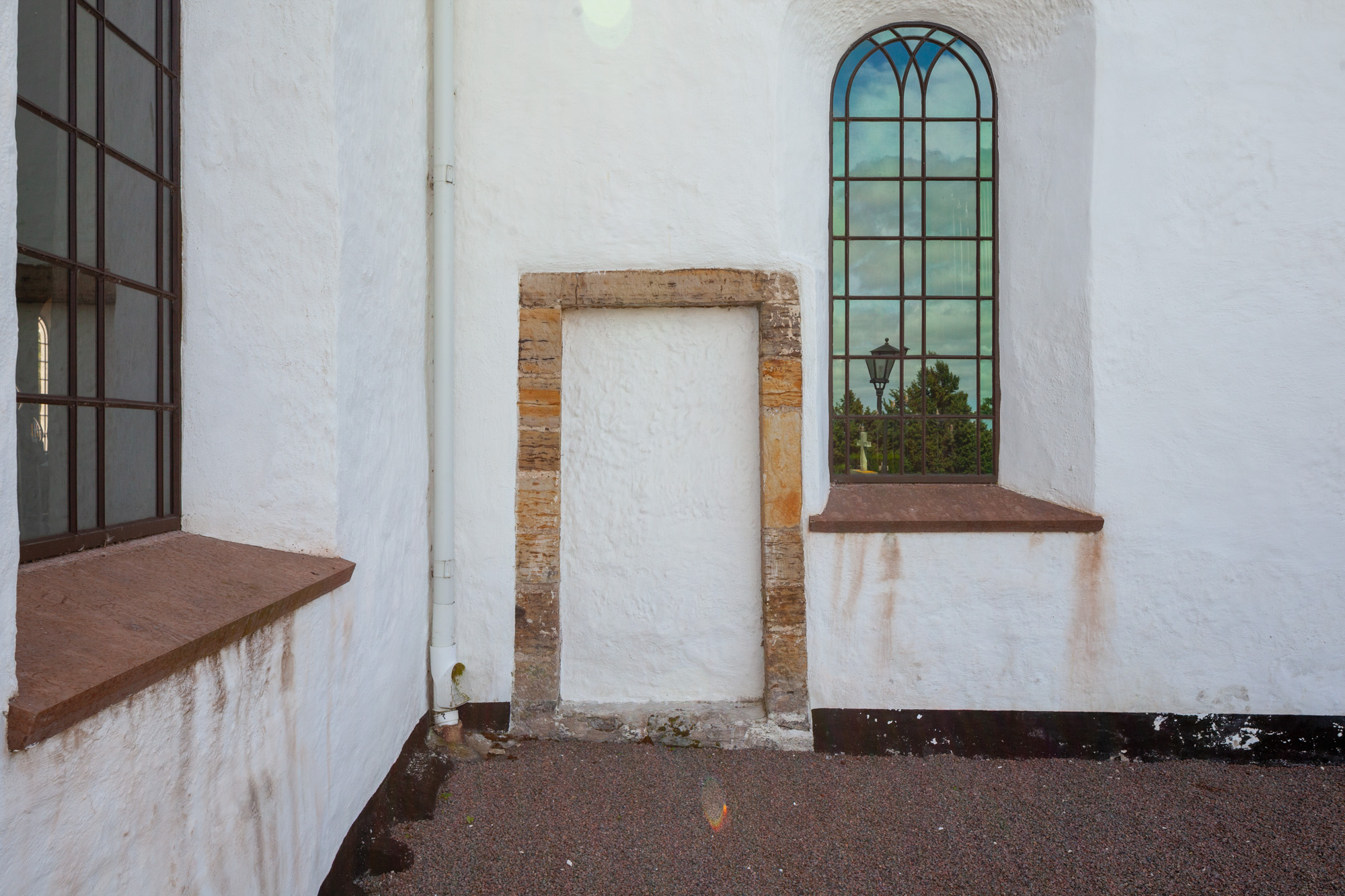 Begge de gamle døre er tilmurede, men stadig synlige indvendigt og udvendigt.