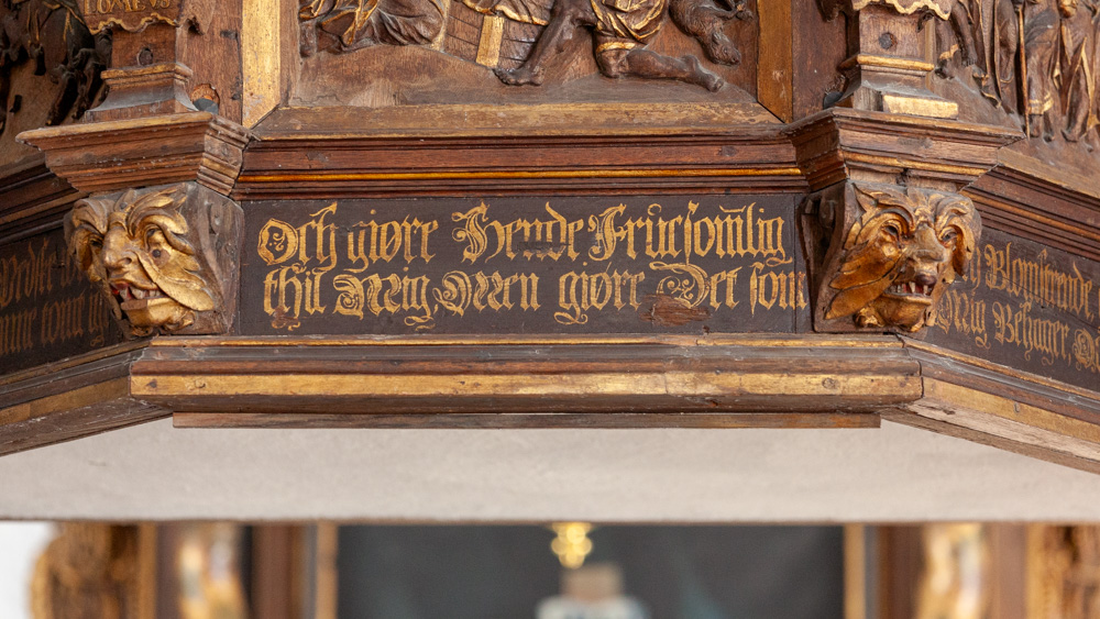 Monica Rydbeck foretager en dybtgående analyse af prædikestolen, hvor hun blandt andet fremhæver den høje kvalitet i dyrefigurerne og tilskriver det Statius Ottos forstudier til arbejdet med 16 heste, som han skar til Frederiksborgs kongesal. Analysen omfatter en detaljeret sammenligning med prædikestolen i Helsingborg.
