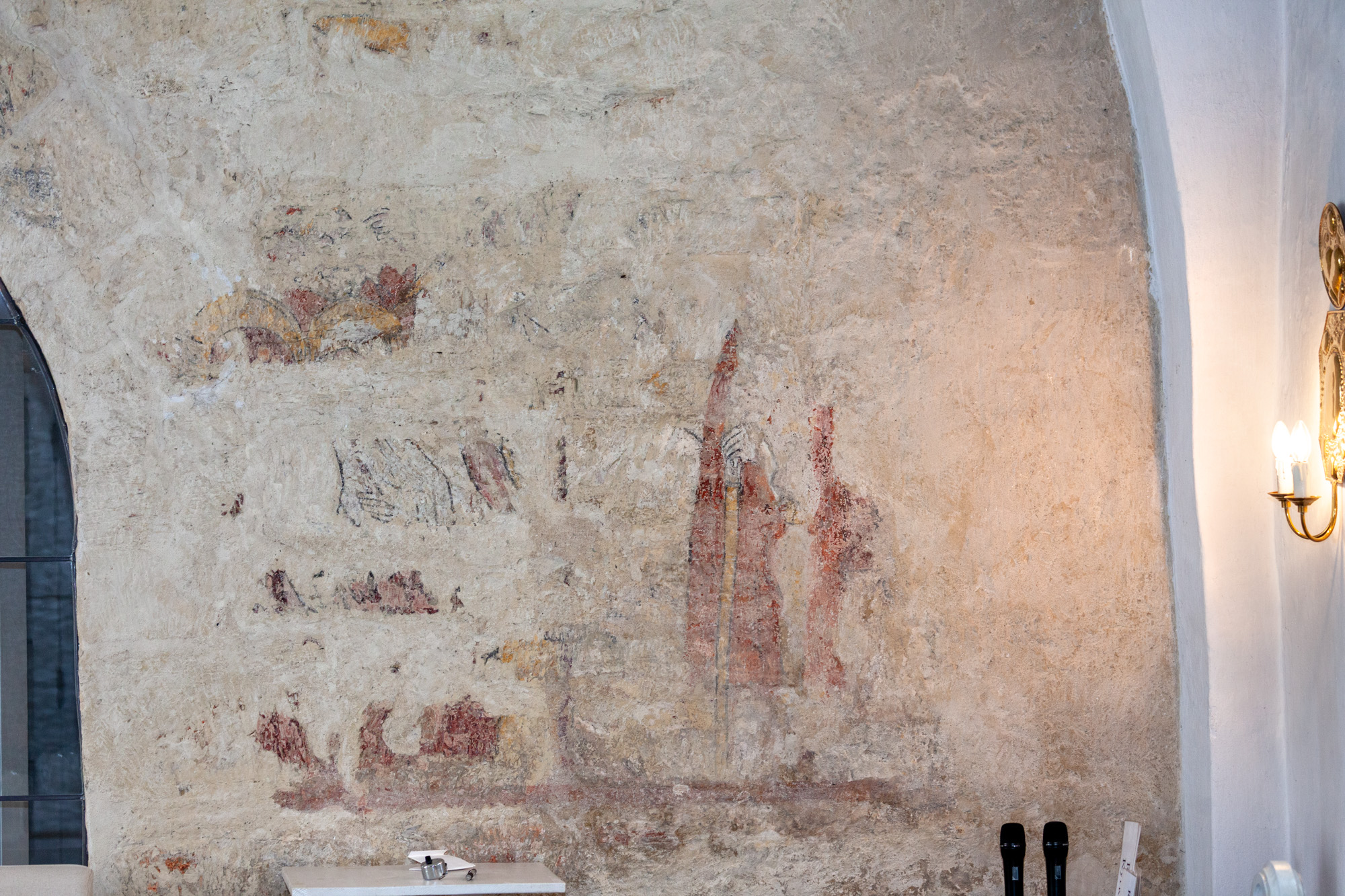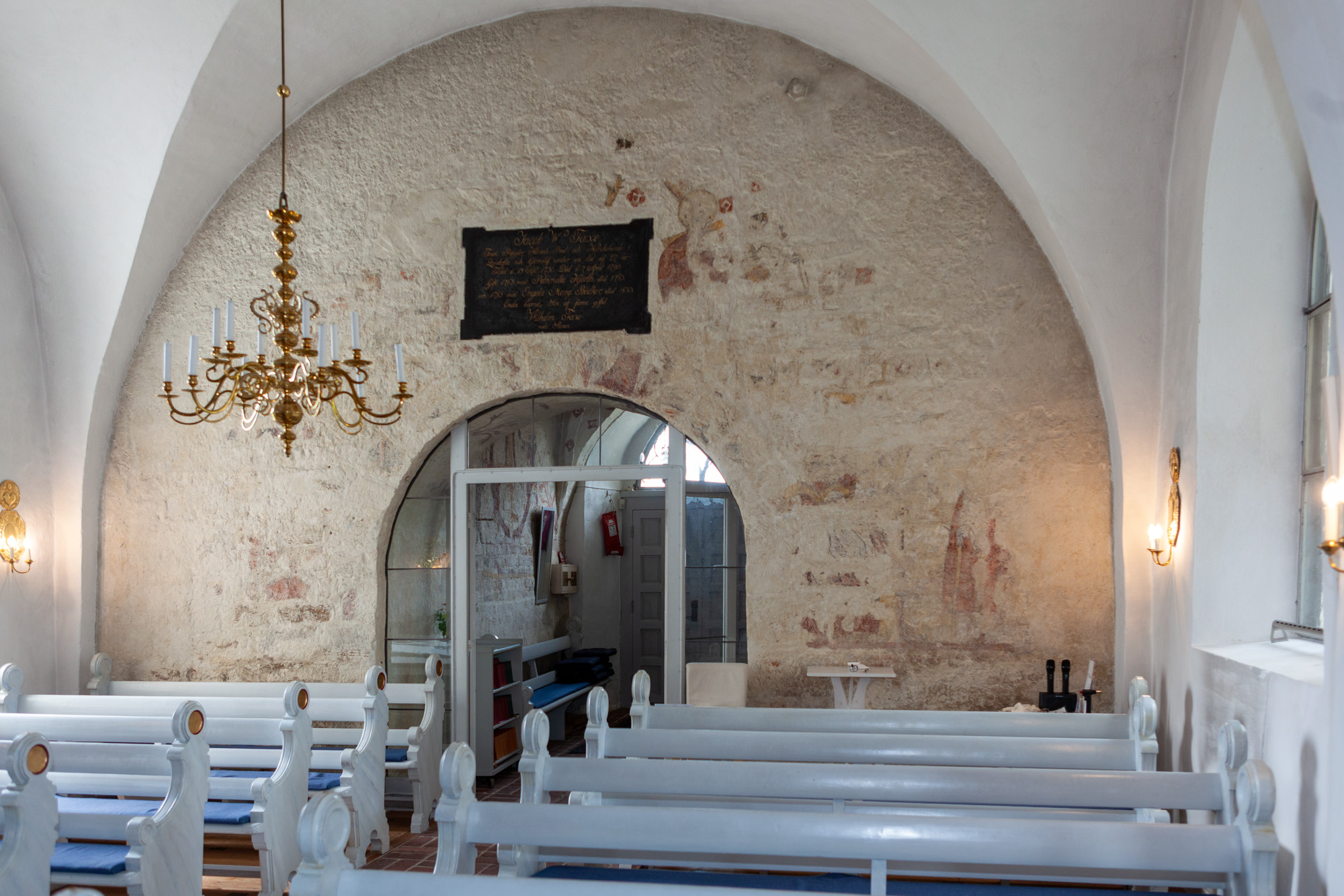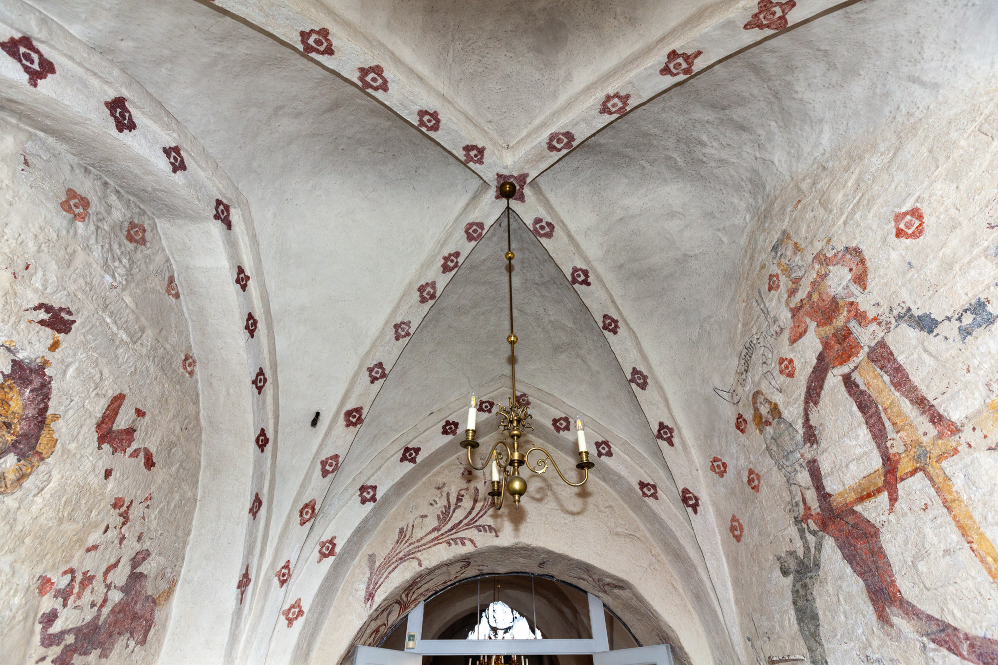 På skibets vestvæg og i tårnrummet er der kalkmalerier fra omkring år 1500.