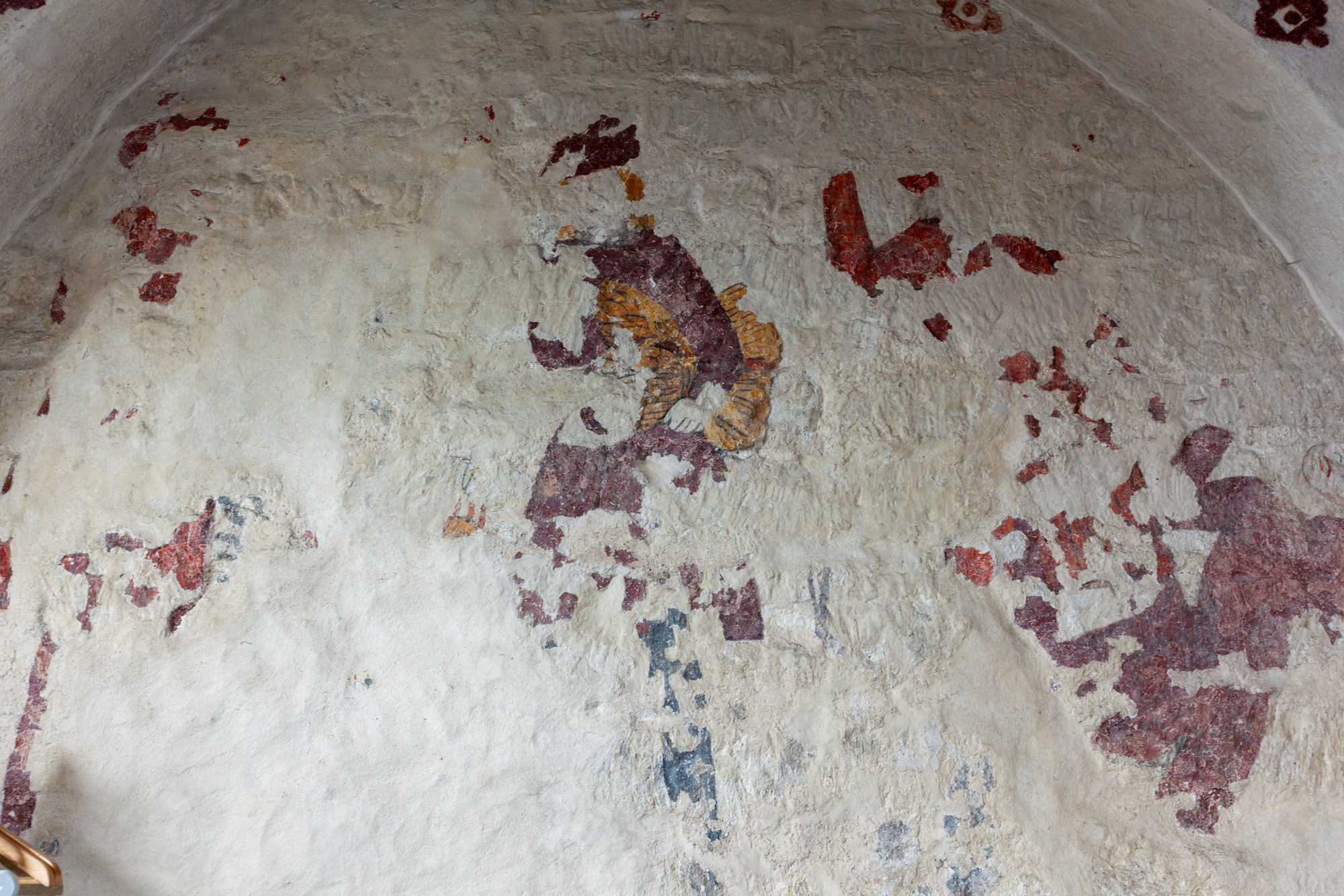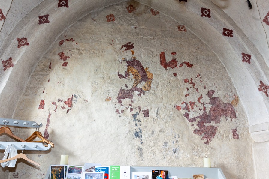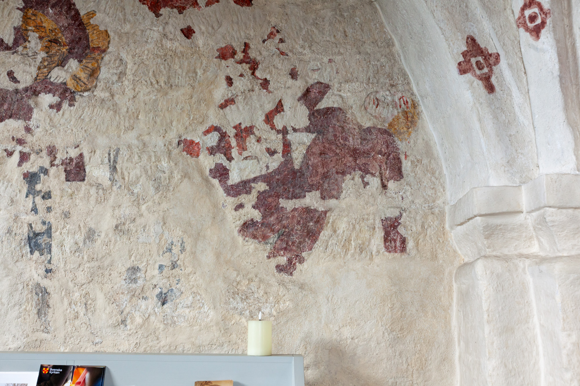 På væggens sydside er der kun sparsomme farvespor, som ikke kan tydes.