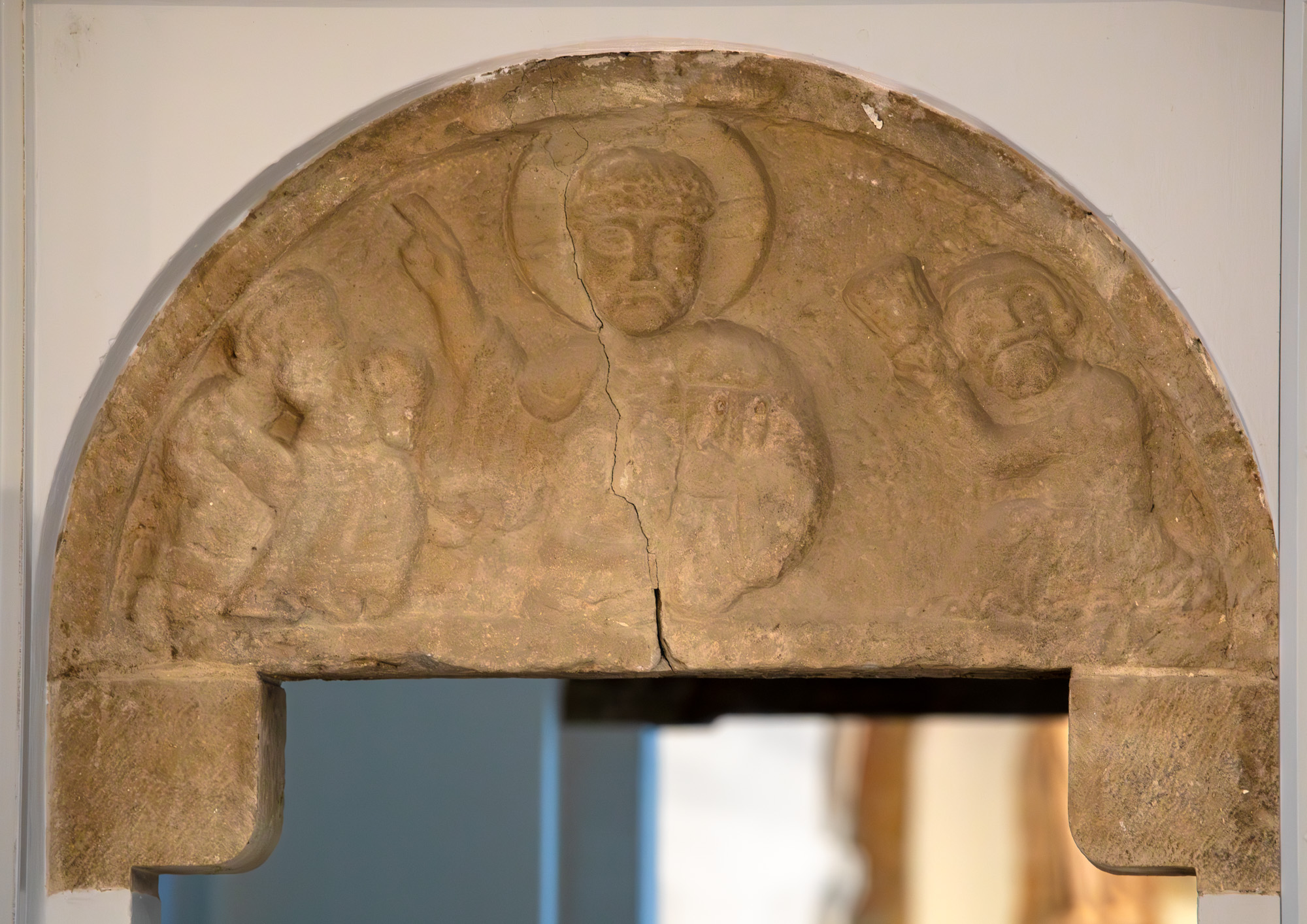 Tympanon opbevares på LUHM. Motivet er Kains og Abels ofre. Midt i billedet sidder Gud Herren med korsglorie og højre hånd løftet velsignende over Abel, der ofrer en vædder. I modsatte side ses Kain, der frembærer et neg eller et knippe. Han har en fodlang kjortel på. Han har skæg og vender ansigtet væk fra Gud Herren.