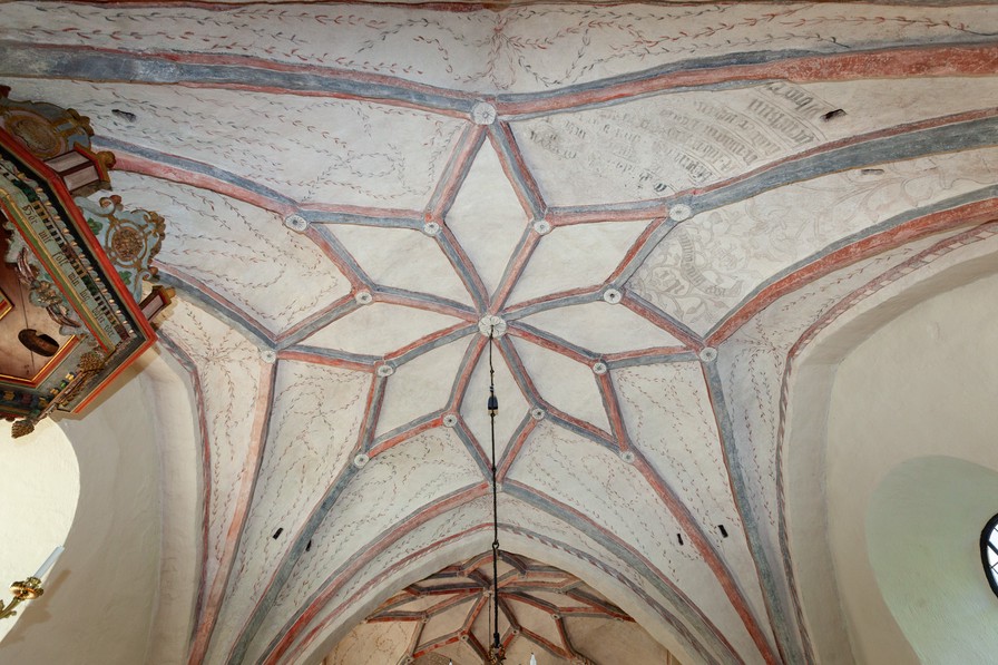 Stjernehvælvene i skibets første og andet fag er udført af Olaus Petri. Han kom fra Sverige, men har sikkert lært teknikken i Tyskland. Han har bygget lignende stjernehvælv i Brunnby (Brøndby), Tåstarp (Tostrup) og i Nordvestjylland i kirkerne Vestervig, Ejsing og den nu nedrevne købstadskirke i Holstebro. Se flere oplysninger under Brunnby.