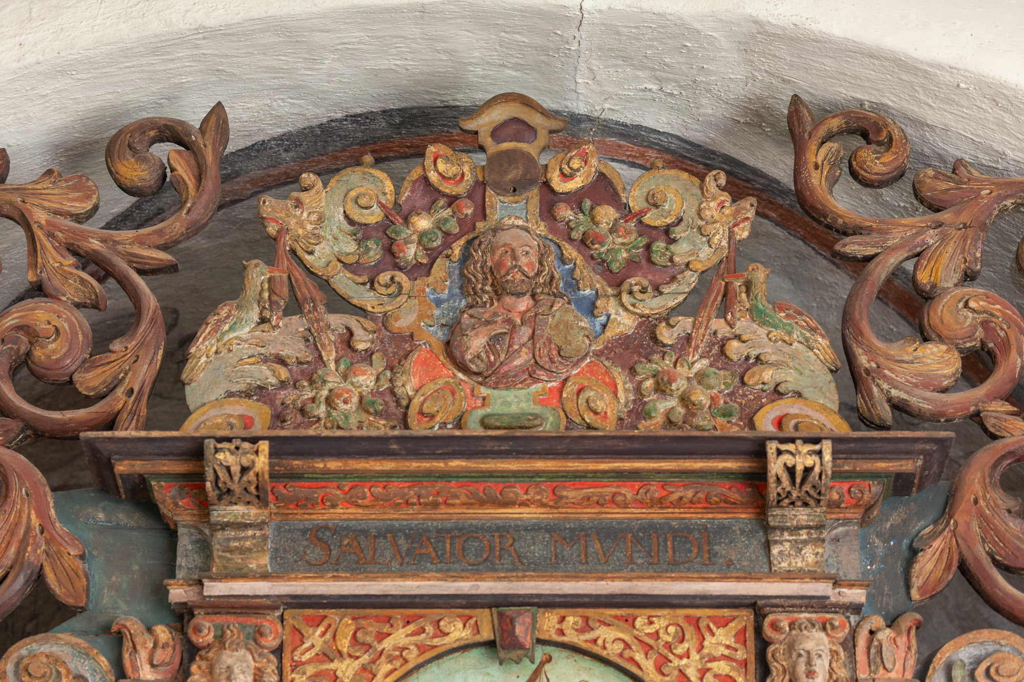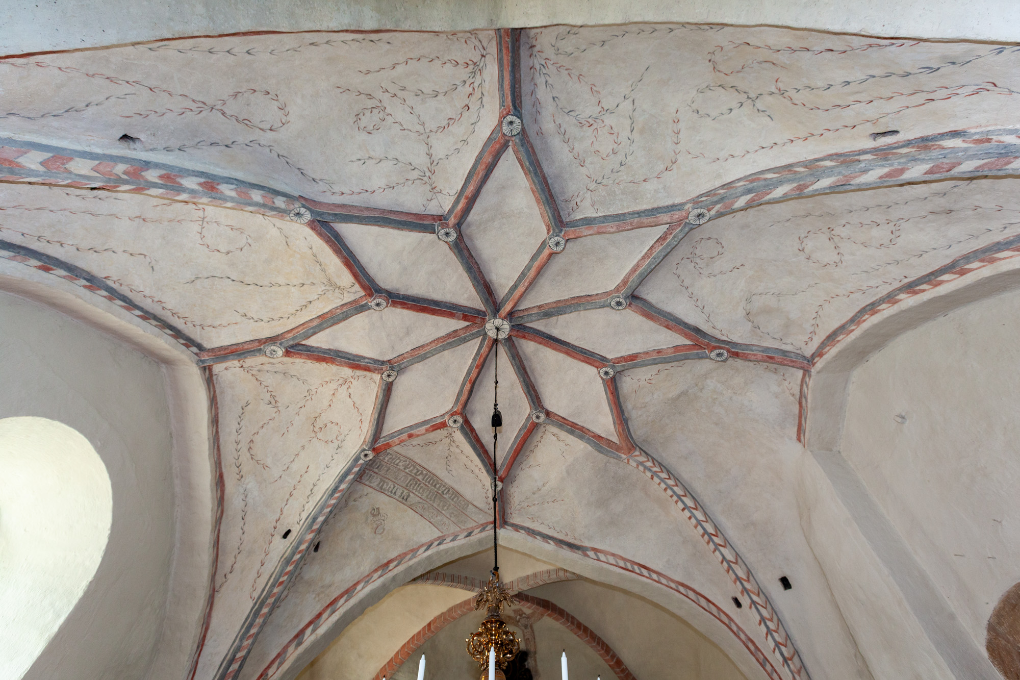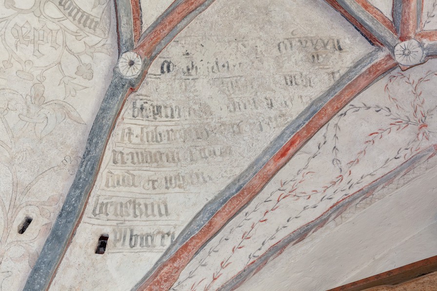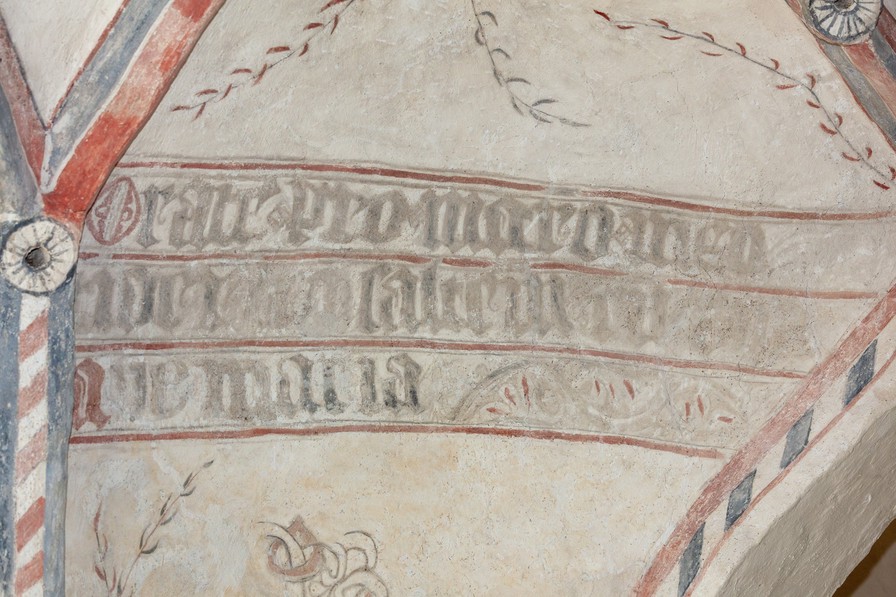 I stjernehvælvet i andet fag findes indskriften: ”Orate pro … meo … saltem cu una ave Maria.” Det er en opfordring til tilskueren om at læse et ave Maria. Formålet med det er dog ikke klart.