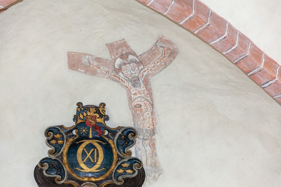 Krucifix i 2. fag, vestkappe mod syd fra 1450-1500.