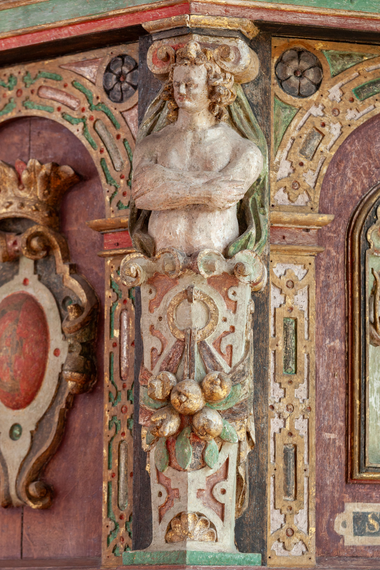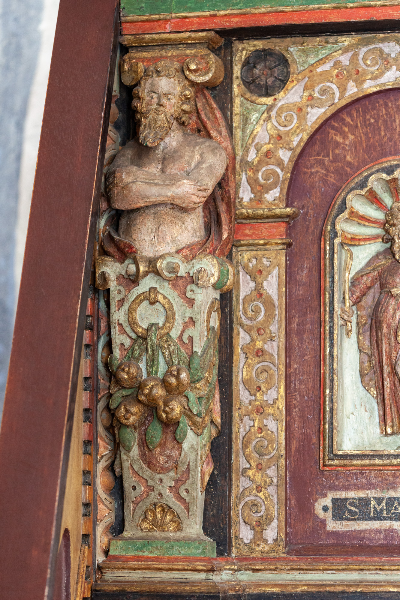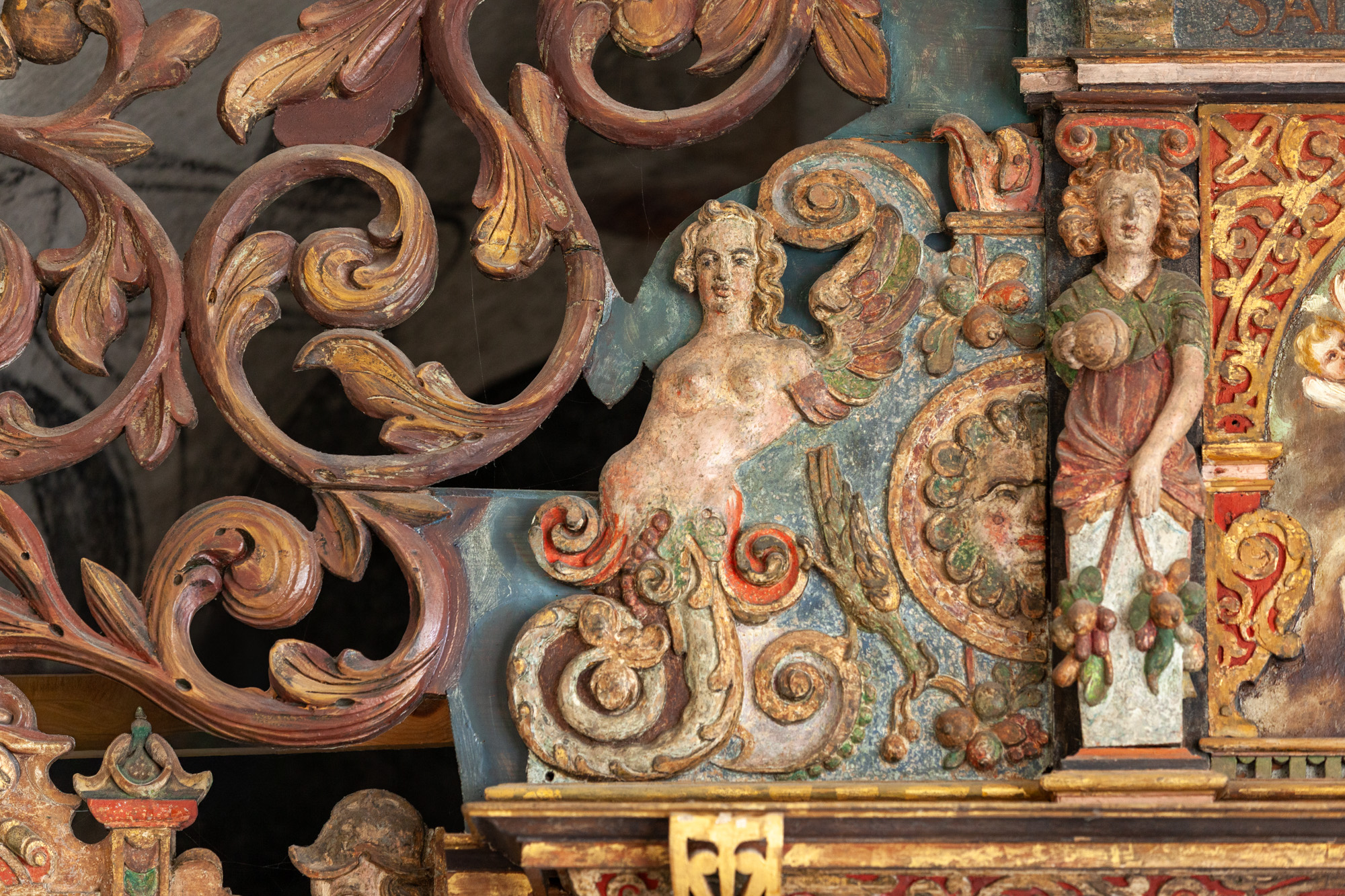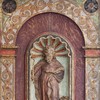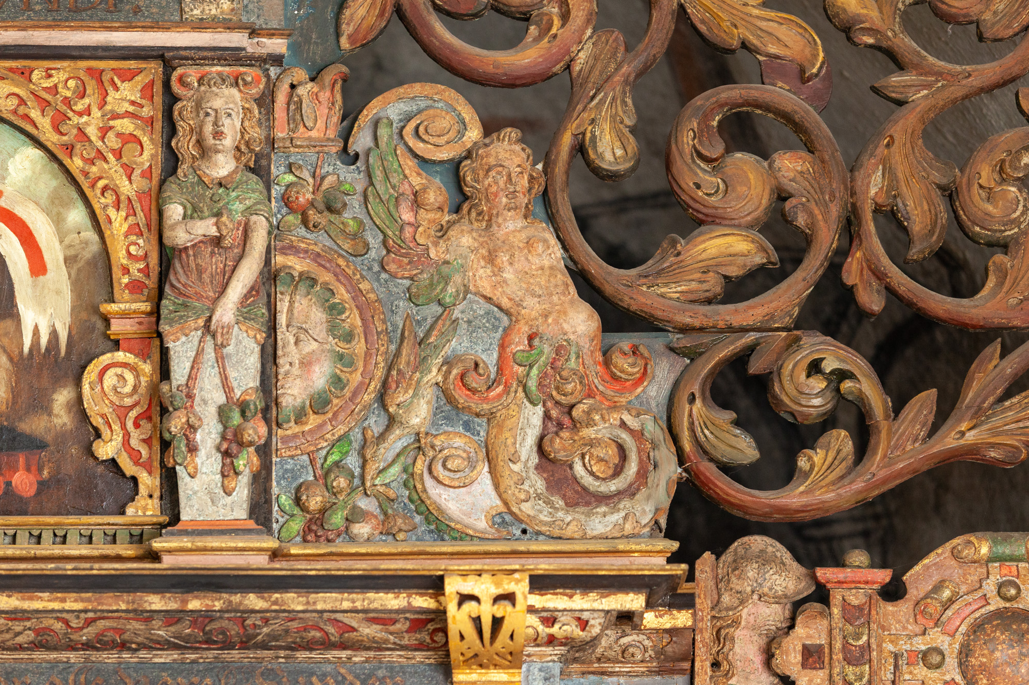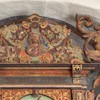 I 1768 blev altertavlen flyttet til sin nuværende plads i tribunbuen, hvorved det var nødvendigt at fjerne vingerne og fylde ud med rankeværk og døre på begge sider.