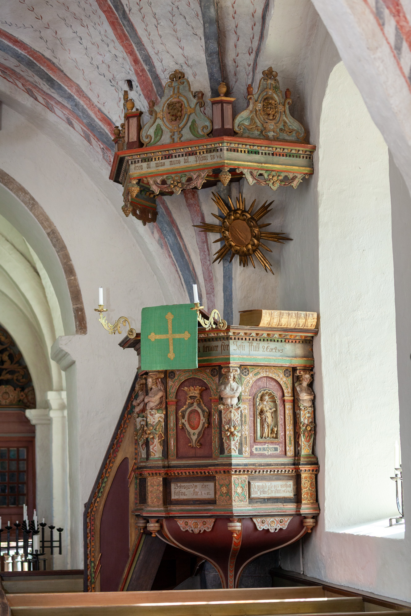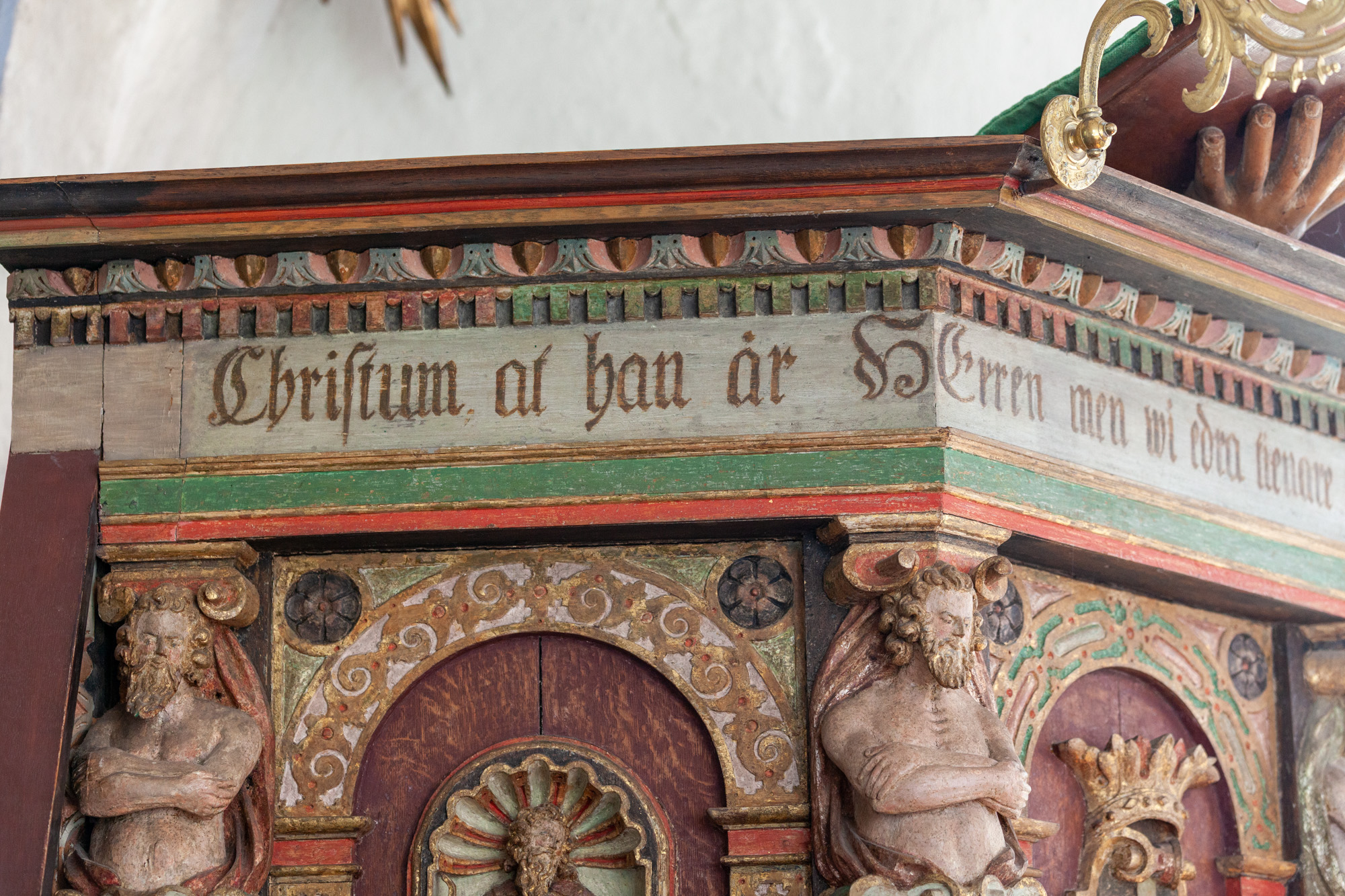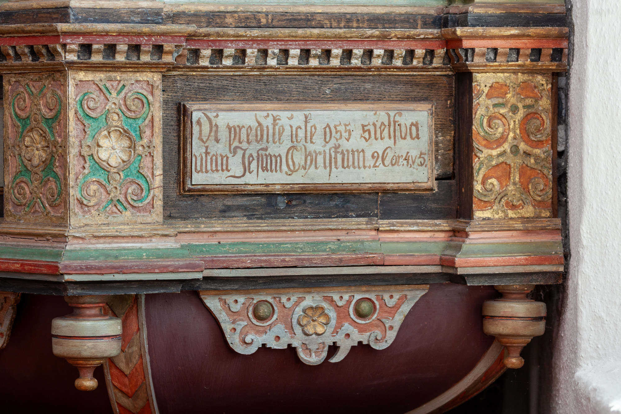 Teksterne i de to andre smalfelter for neden er ”Varer ordets görare, och icke alenast hörare,” og: ”Bedragandes eder sielfwa. Jac. 1: v 22. De to citater er fra det samme vers i Jakobsbrevet.