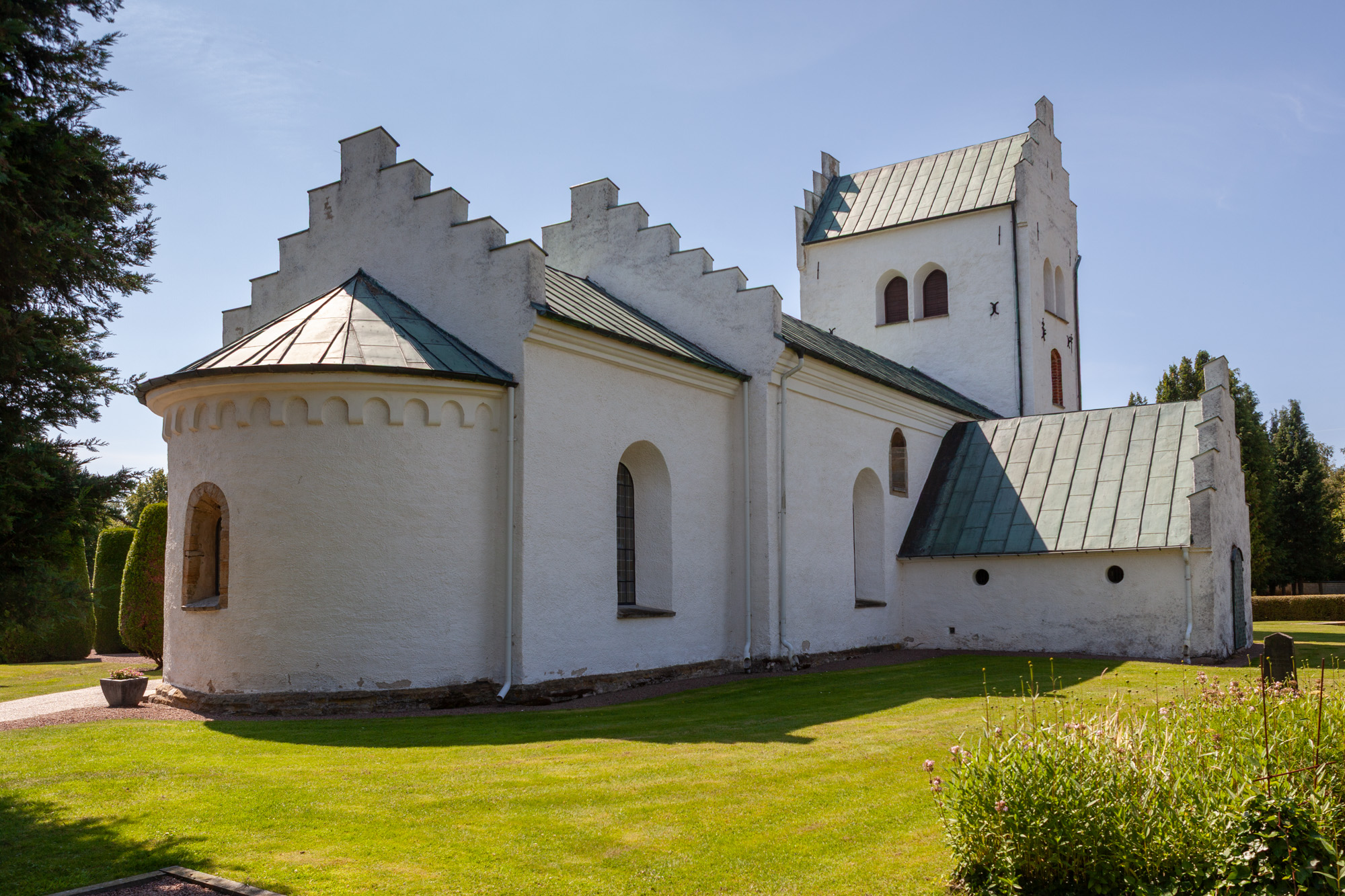 Skib, kor og apsis er fra 1100-tallet. Muligvis er apsis ikke opført samtidig med koret. Profileringen på tribunbue- og triumfbuevederlag kan lede tankerne hen på døbefonten. Triumfbuen har på vestsiden en rundstav.