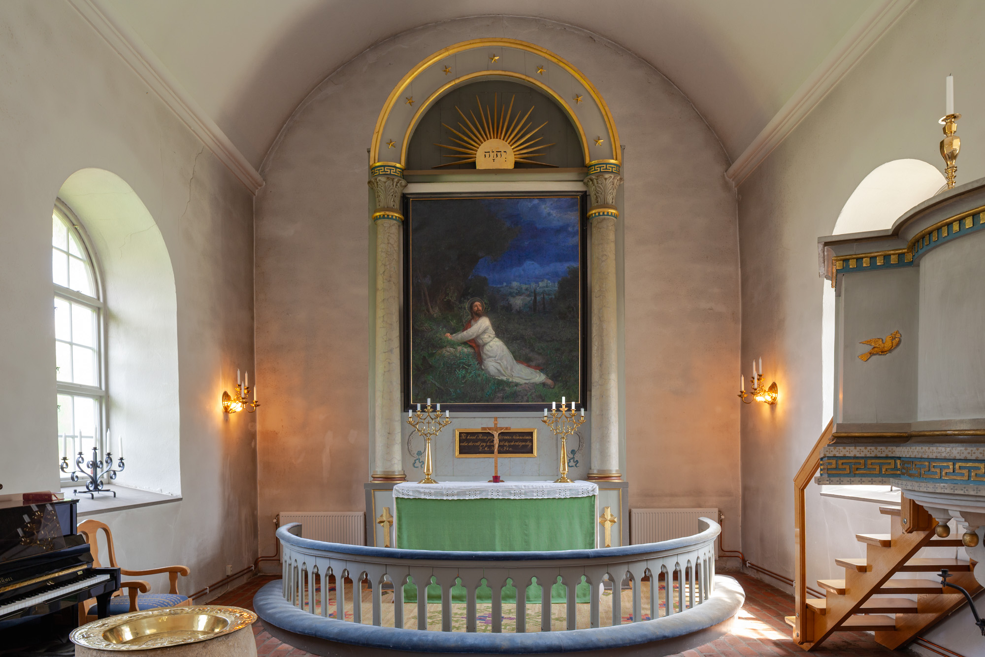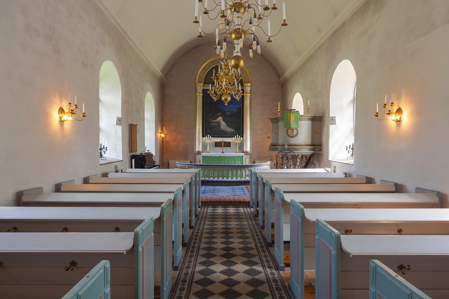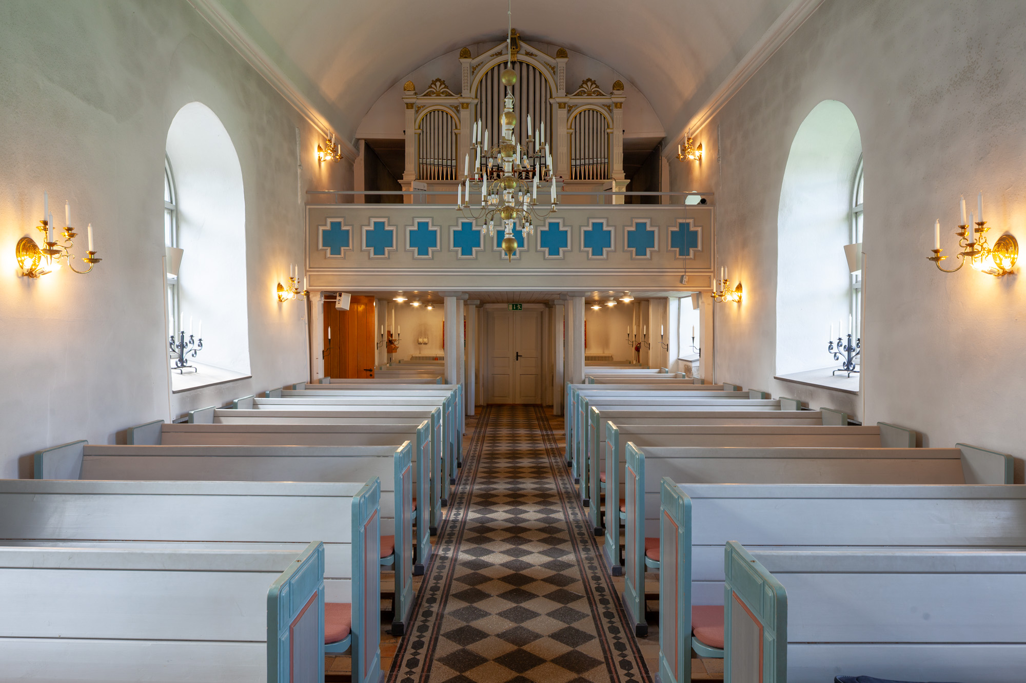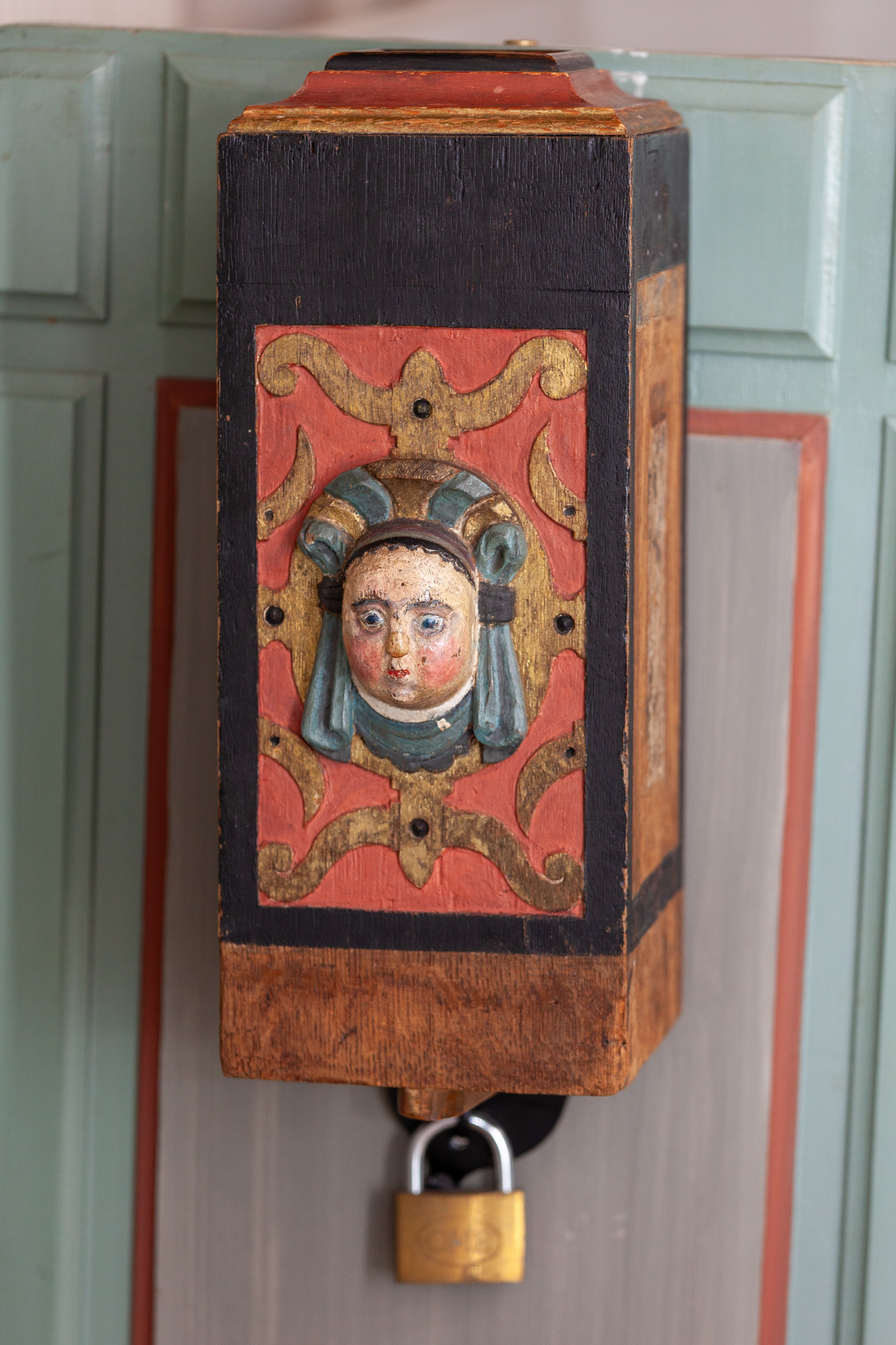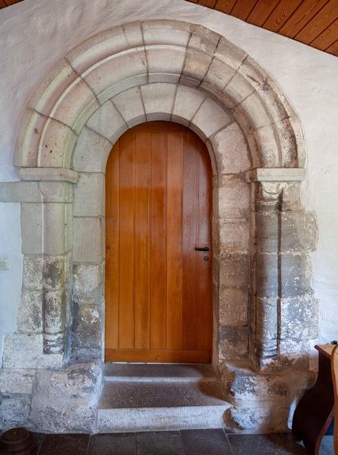 Den bevarede sydportal, som den ser ud set inde fra våbenhuset/sakristiet.