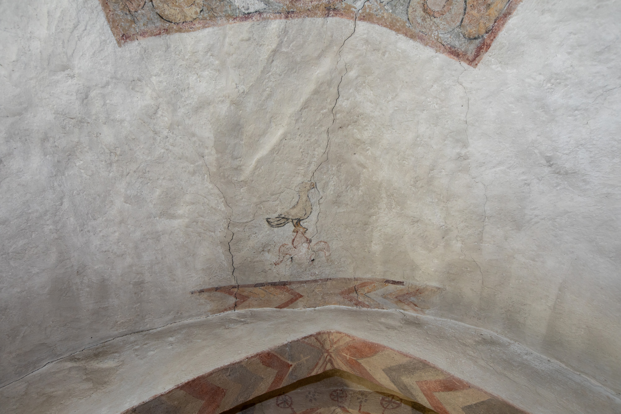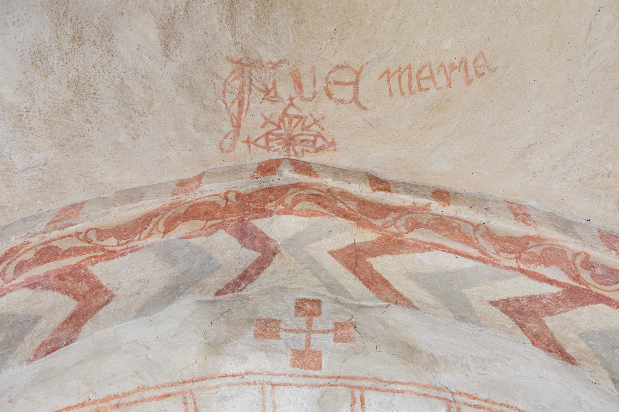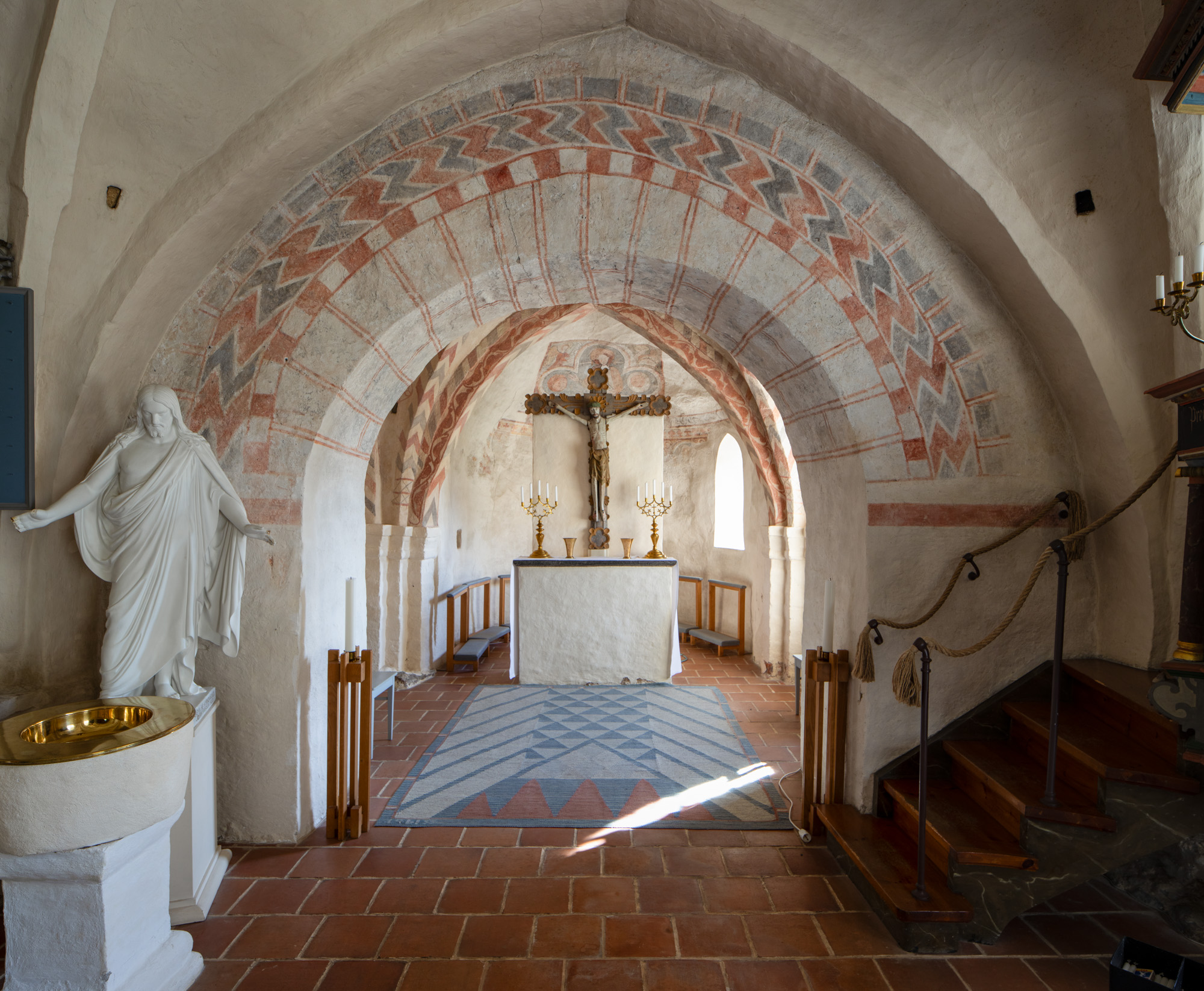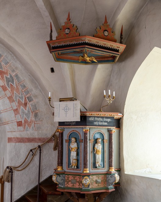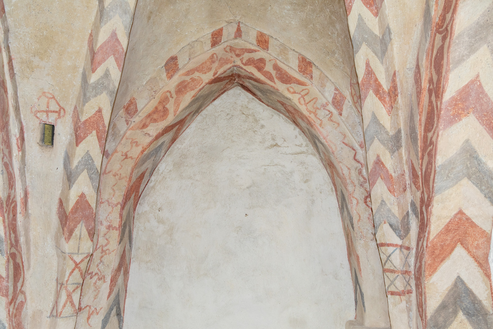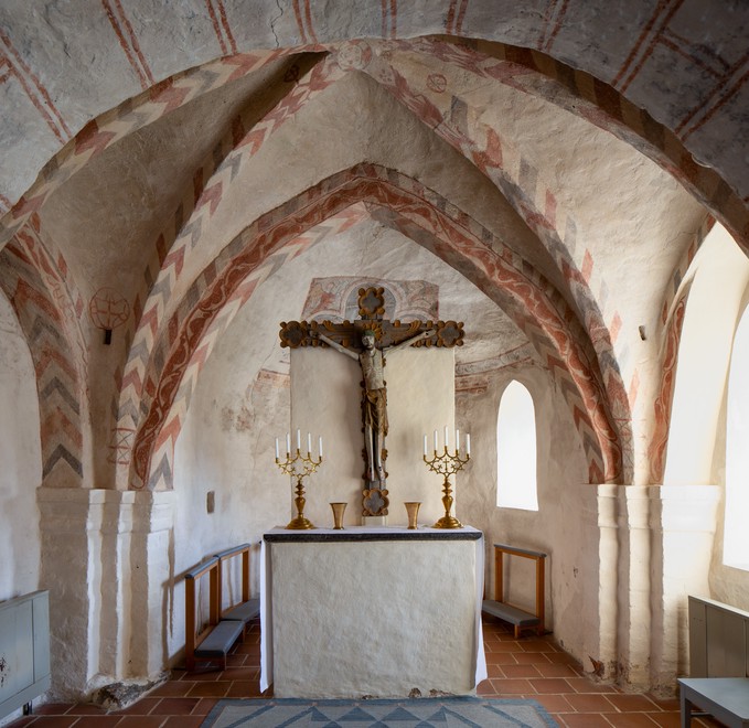 Også korbuen er bemalet med forskellige mønstre.