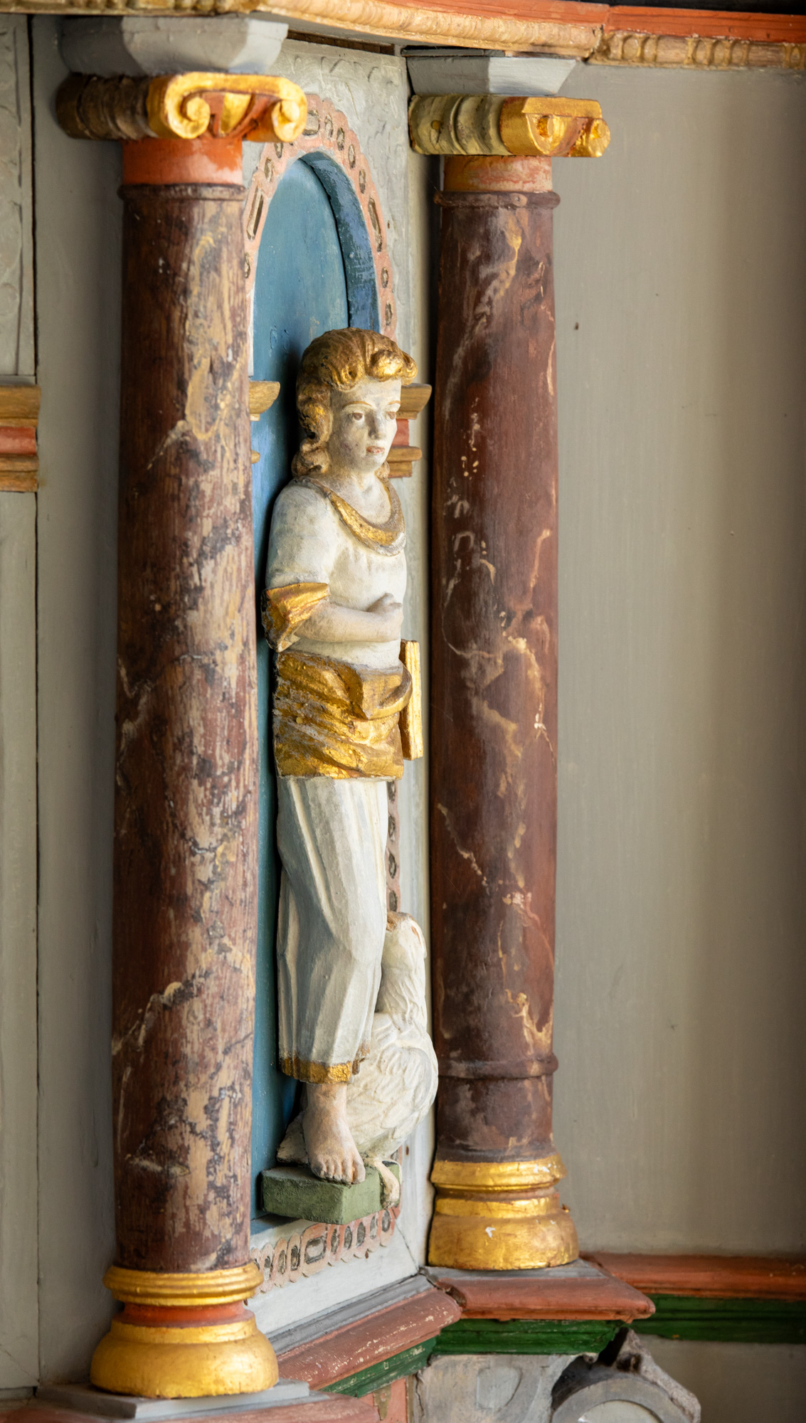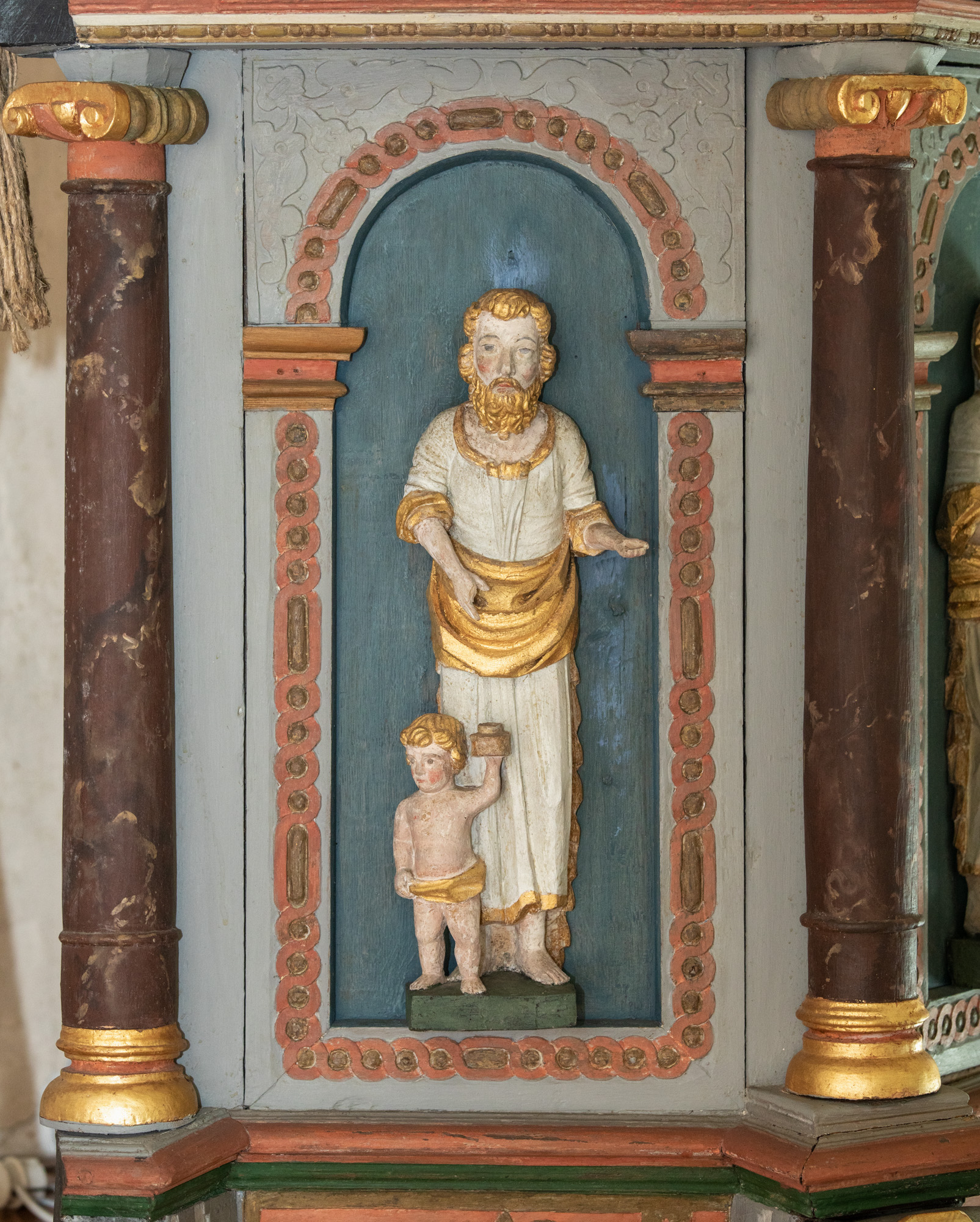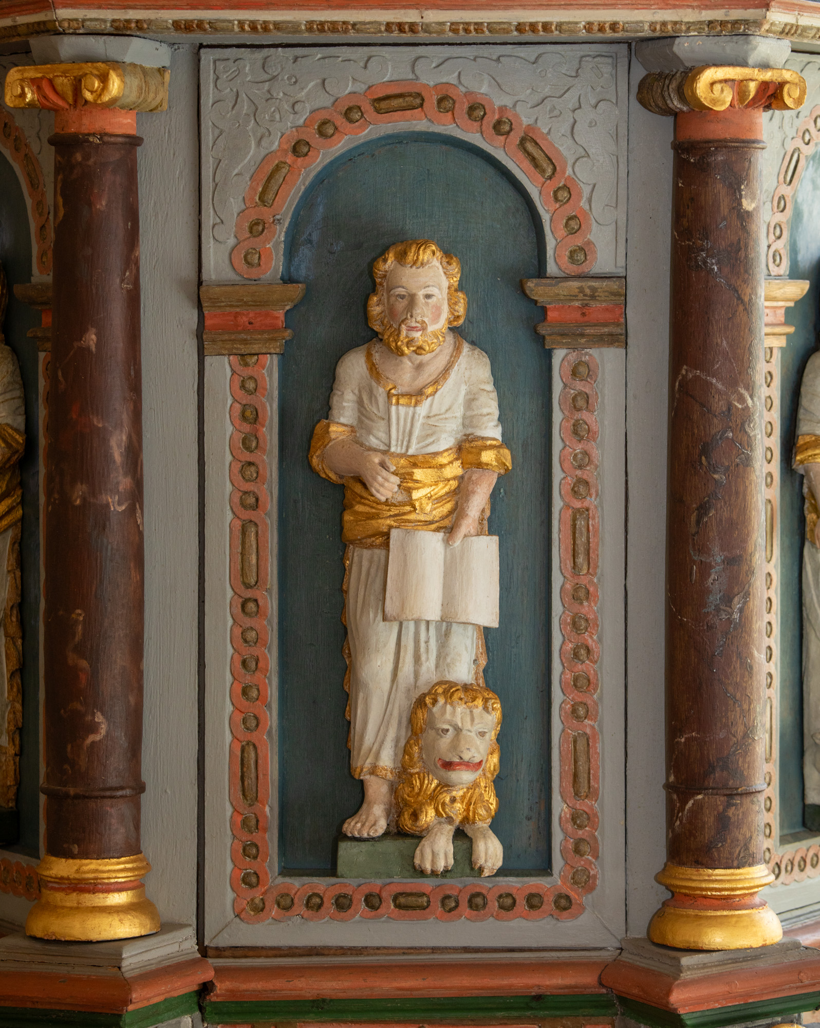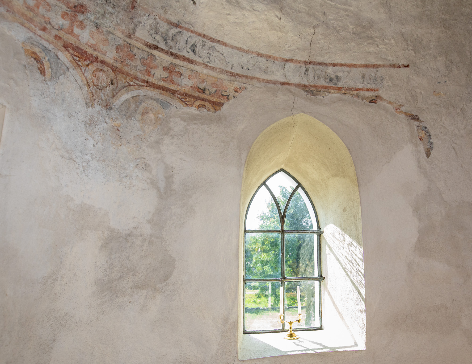 Også korbuen er bemalet med forskellige mønstre.