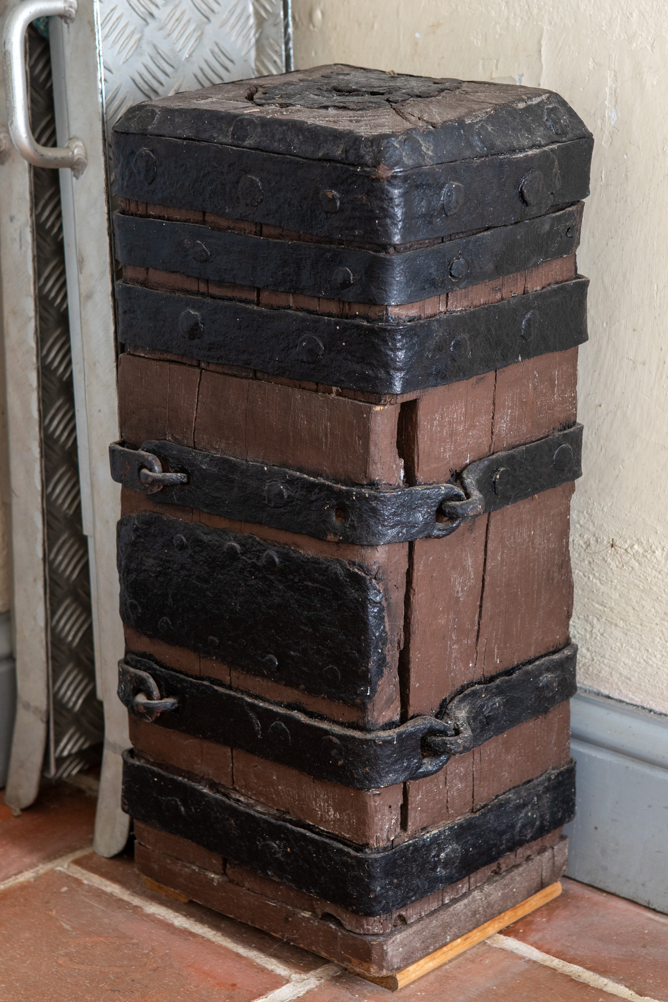I tårnet står en fattigblok af med beslag og lås af jern fra 1600-tallet.