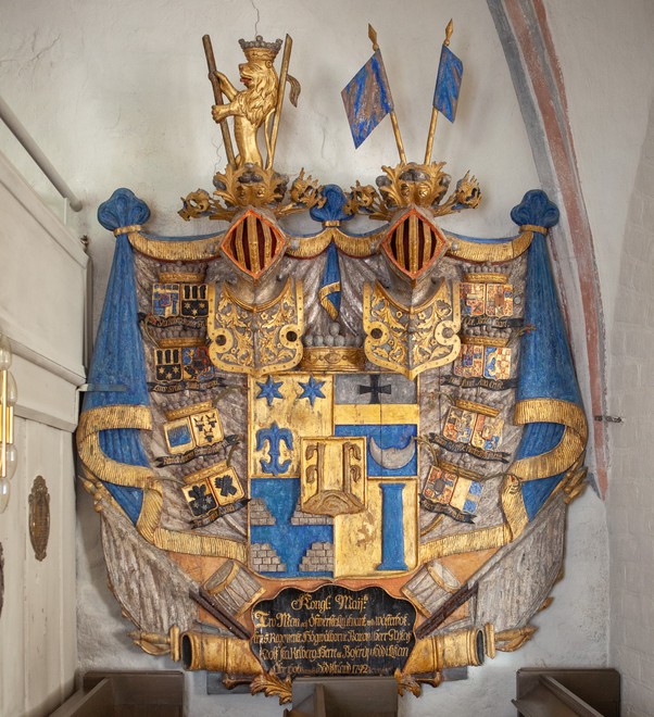 - felt: årstallet 1609 og to våbenskjold. Under det første et ulæseligt navn og under det andet Sophia Hobe.