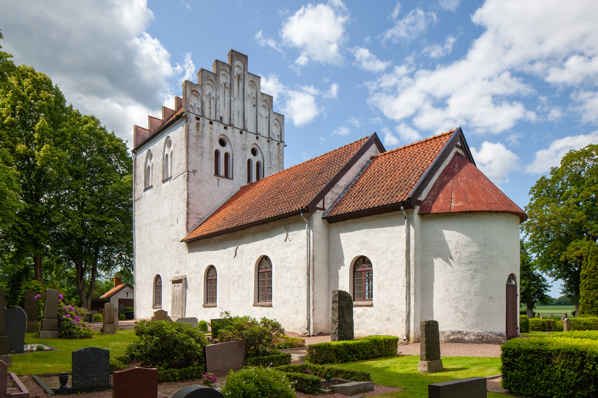 Den ældste del af kirken – 1100-tallet – udgøres af skib, kor og apsis. Byggematerialet er fint tilhuggede kampesten, mens der er anvendt sandsten ved døre og vinduer. Det ser ud til, at apsis udelukkende er opført af sandsten, så apsis kan være opført senere. Tårnet er bygget senere, måske 1400-tallet. Hvælvingerne kan være samtidige med tårnet. På nordsiden af tårnet indeholder en firkantet udbygning en vindeltrappe, som er opført af tegl, og som er samtidig med tårnet. I senmiddelalderen blev der opført et våbenhus ved både nord- og sydindgangen. På skibets sydside er der konstateret to vinduer indrammet teglsten. De menes at være samtidige med tårnet. Tårnets gavle, der vender øst-vest, har højblændinger med indre buer.