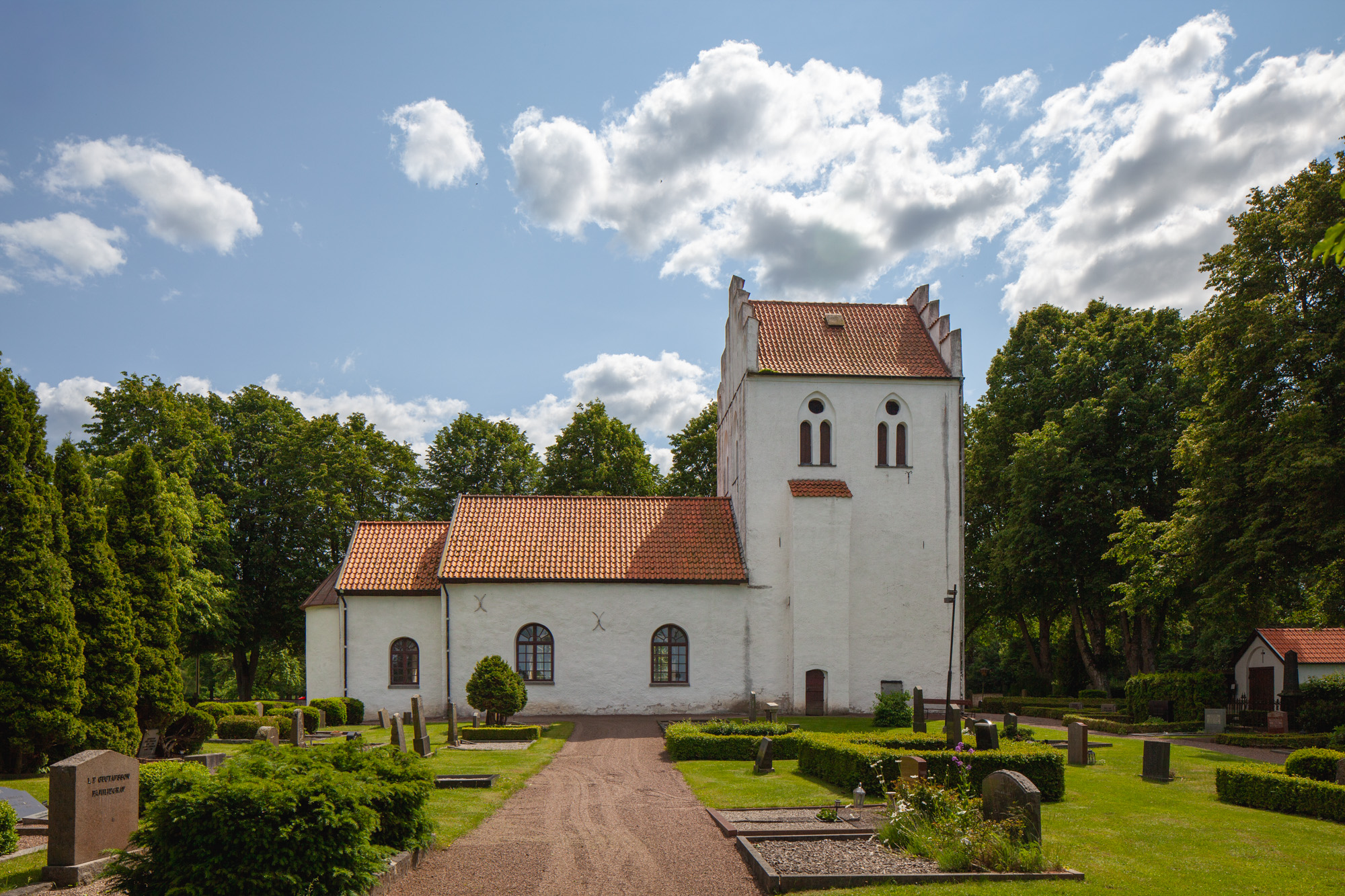 På tårnets nordmur er anbragt en gravsten over Herluf Skafues 14-årige søn. Faderen ejede Eskildstrup på Sjælland og blev 1571 forlenet med Søstrup i Skåne. Moderen var Anne Tygesdatter Brahe. Drengen er i en syet dragt med en baret i hånden. Der er 8 + 8 aner. Indskriftens begyndelse mangler. Stenen er stærkt forvitret.