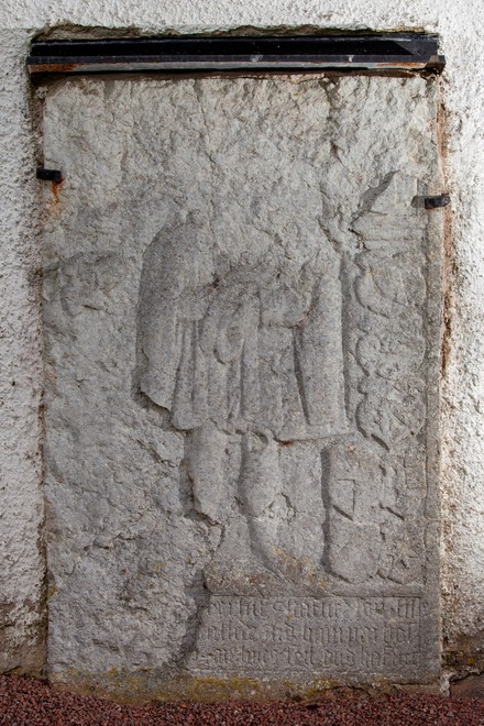 Stenen er anbragt på tårnets sydmur.