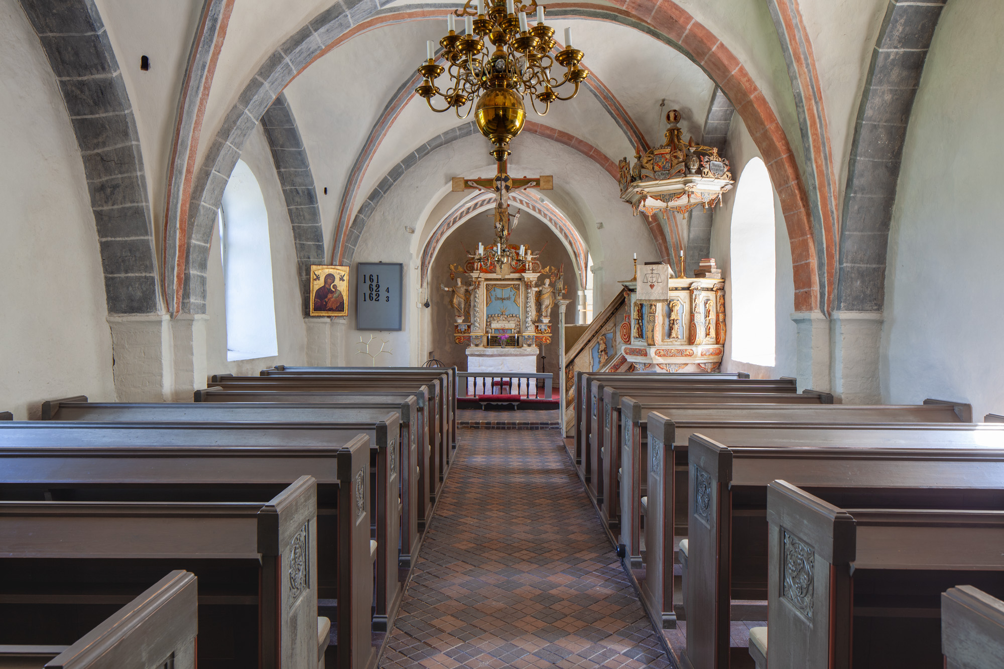 Altertavlen er udført af Johan Ullberg, 1748.