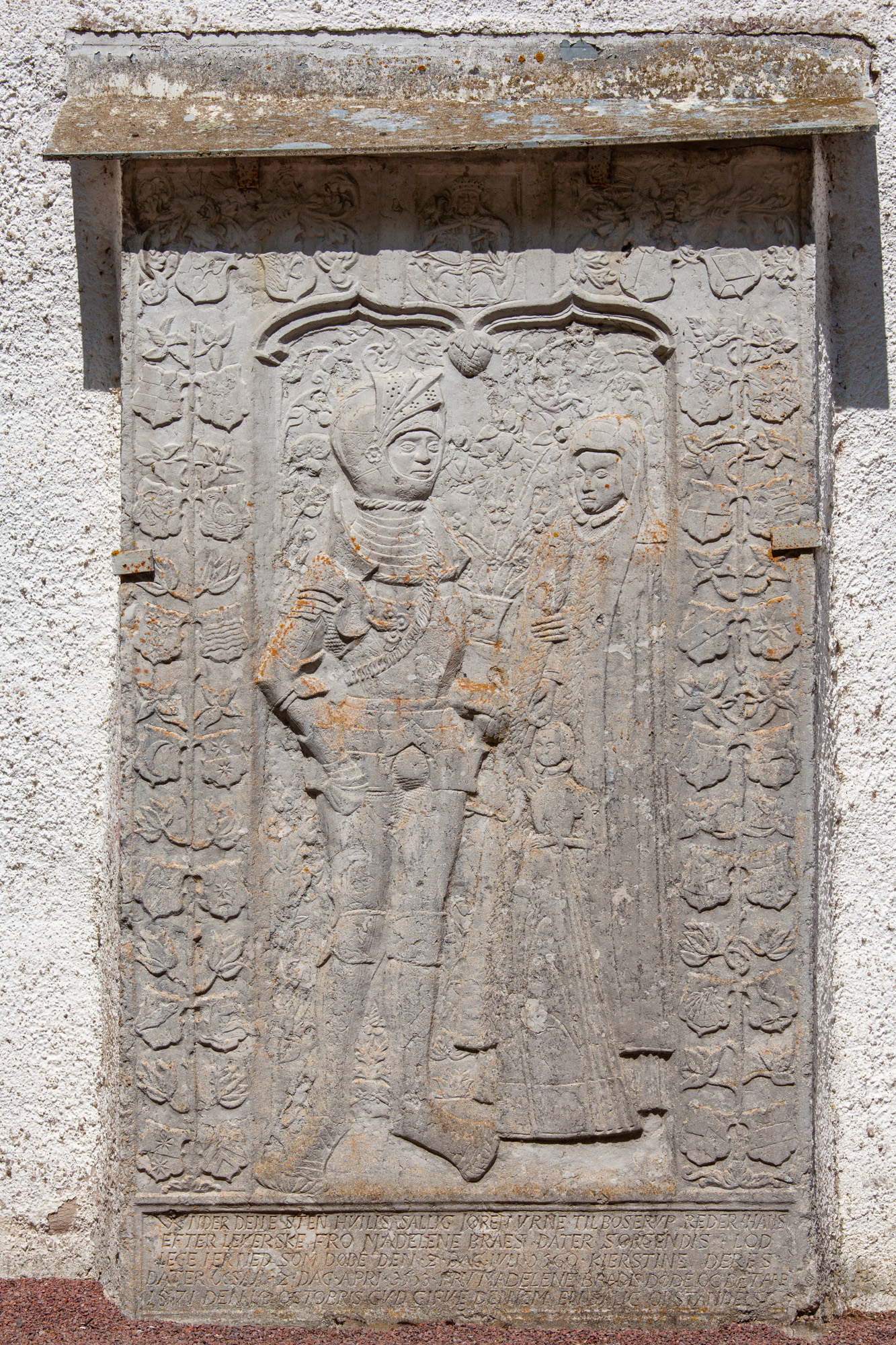 Gravsten over Jørgen Urne til Boserup, ridder, død 2. juli 1560, og Magdalene Brahe, død 14. oktober 1571 samt deres datter Kierstine, død 2. april 1553.