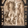 Nordkappe: Kristus som smertensmand. To engle holder hans kappe. Man ser hammeren, pisken, tre søm, lansen, stangen med eddikesvampen og riset.