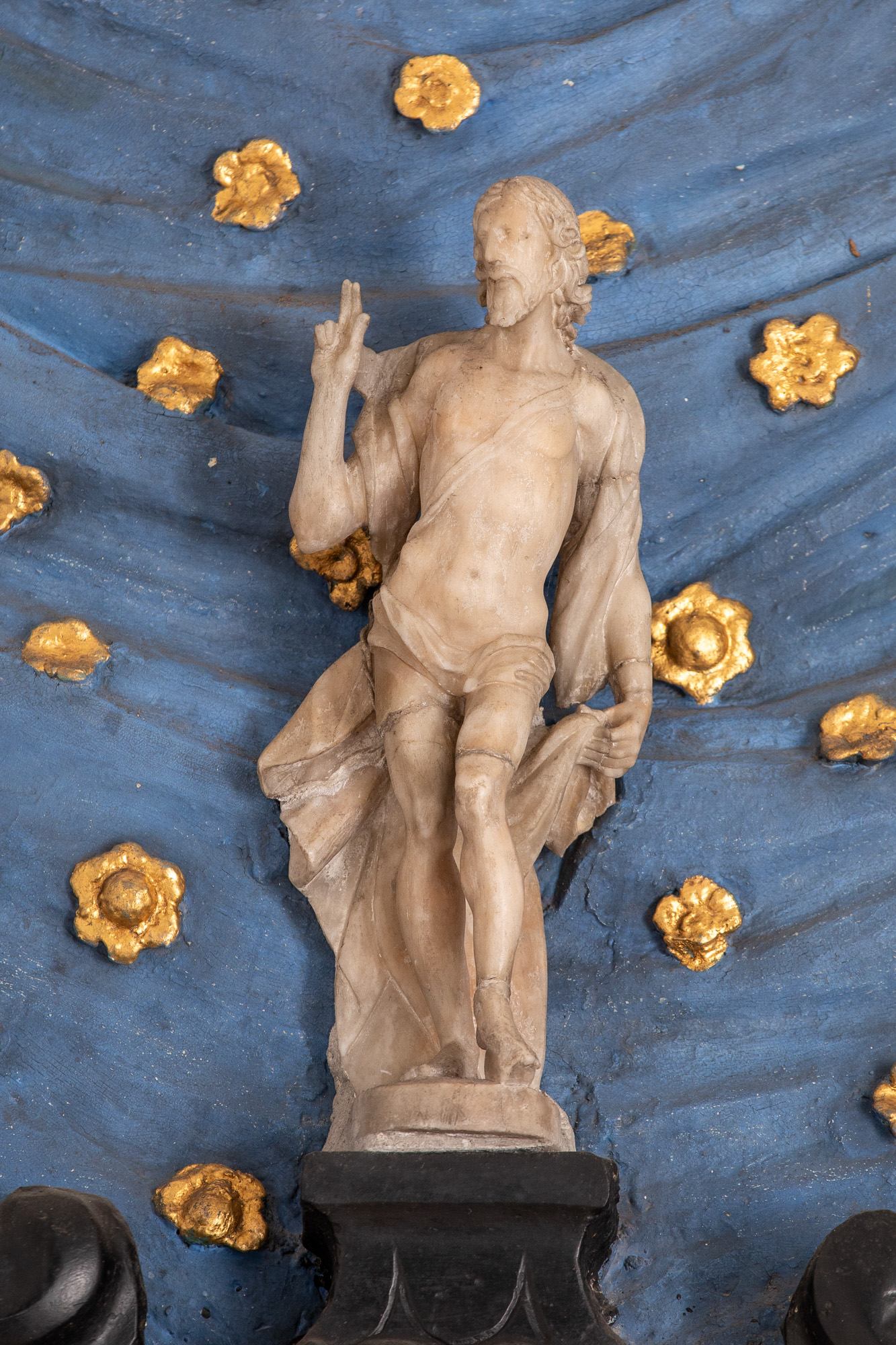 Vestkappe: En uidentificeret apostel, måske Johannes og en udidentificeret apostel.