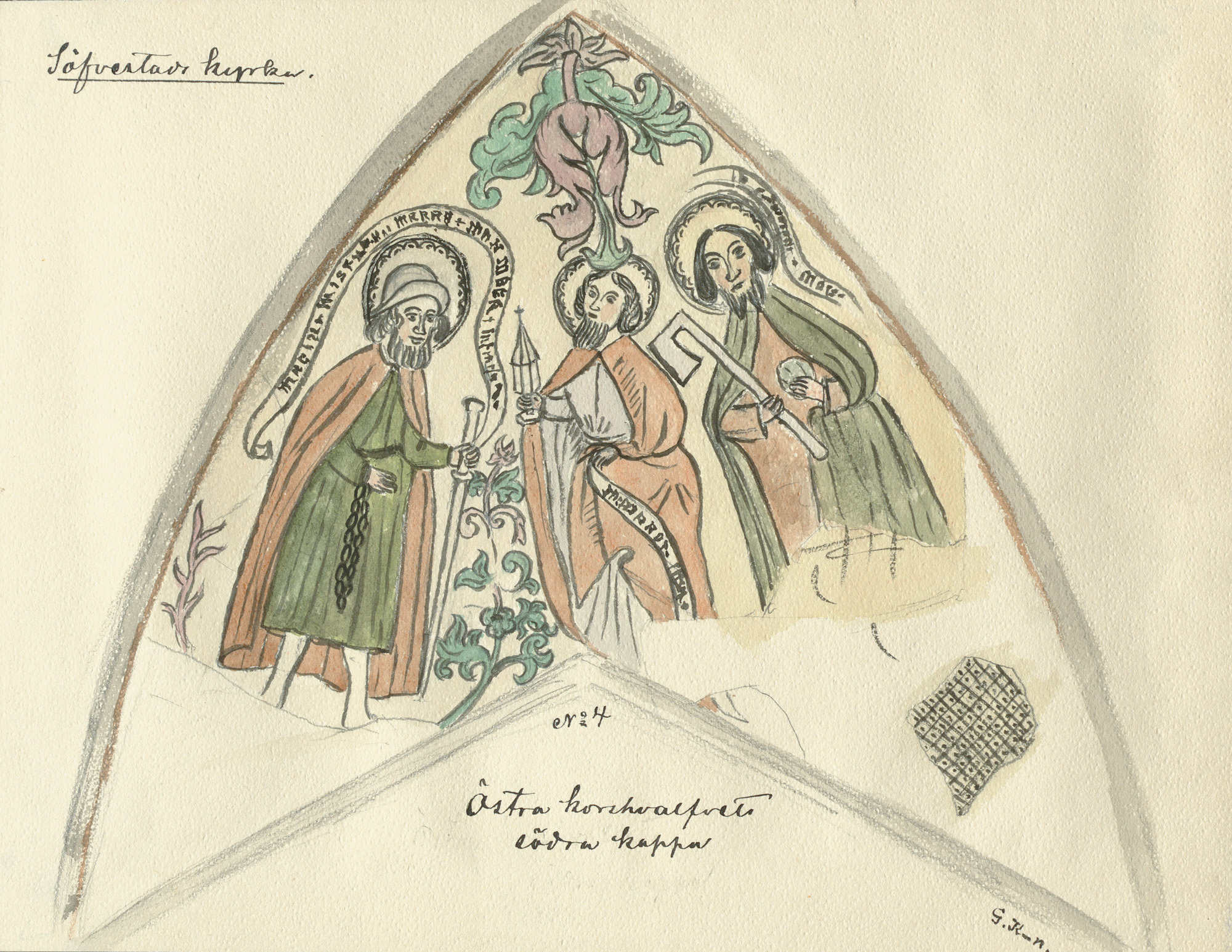 I sydkappen ses apostlene Jakab, en uidentificeret apostel med ciborium og Mattias.