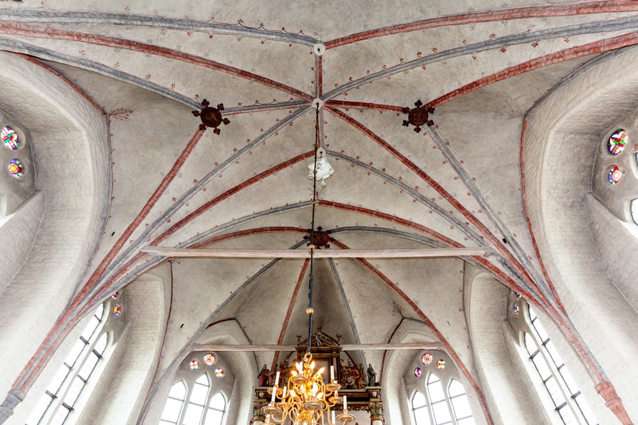 Øverst i tre af hvælvenes issefelt sidder en plakette omgivet af seks korsformede blade. Kun de tre er bevarede, men der har sikkert været et i alle hvælv. Motiverne er S. Olav, løverne i det danske rigsvåben og Folkungernes våbenskjold.