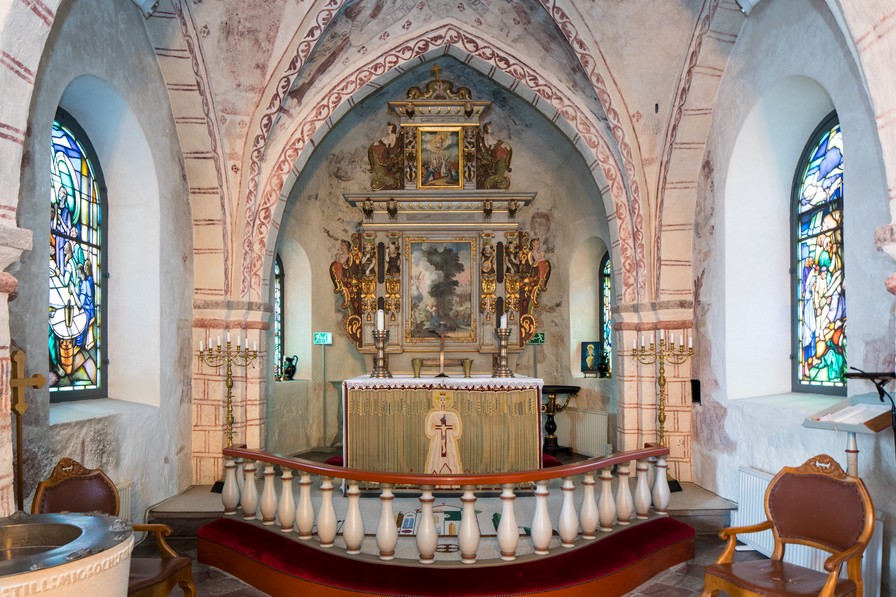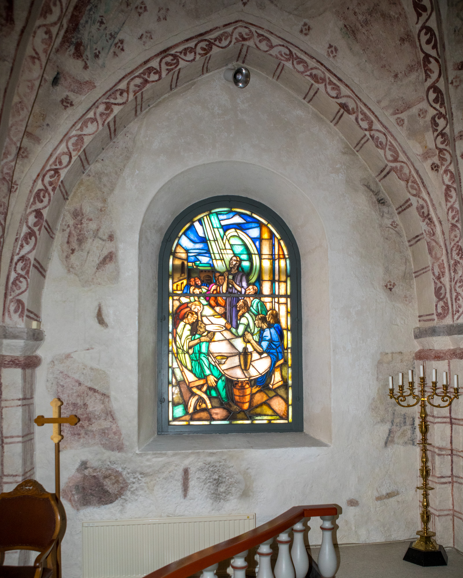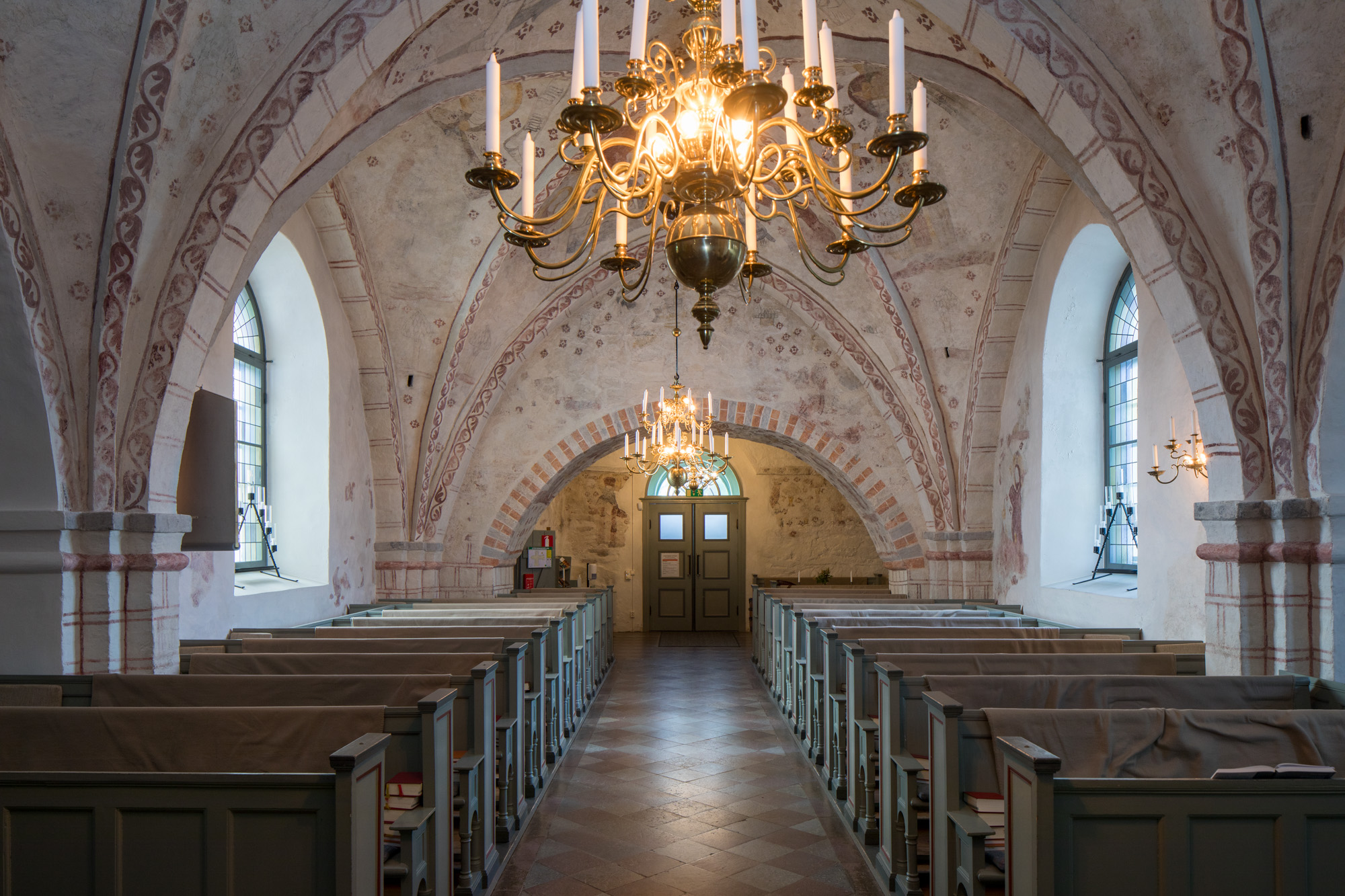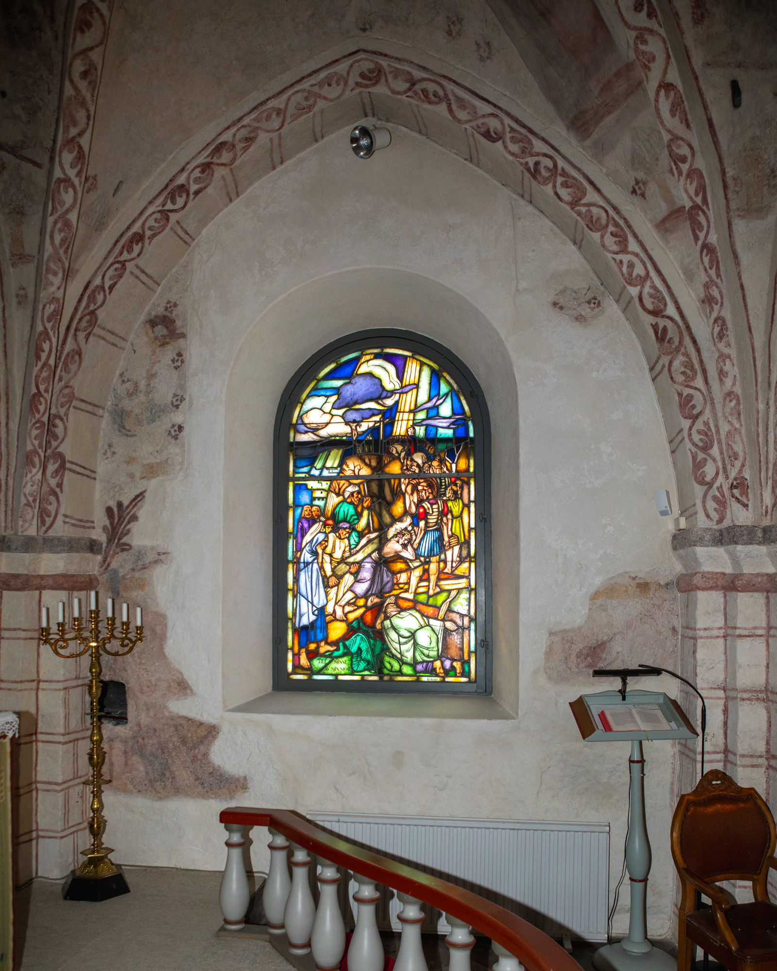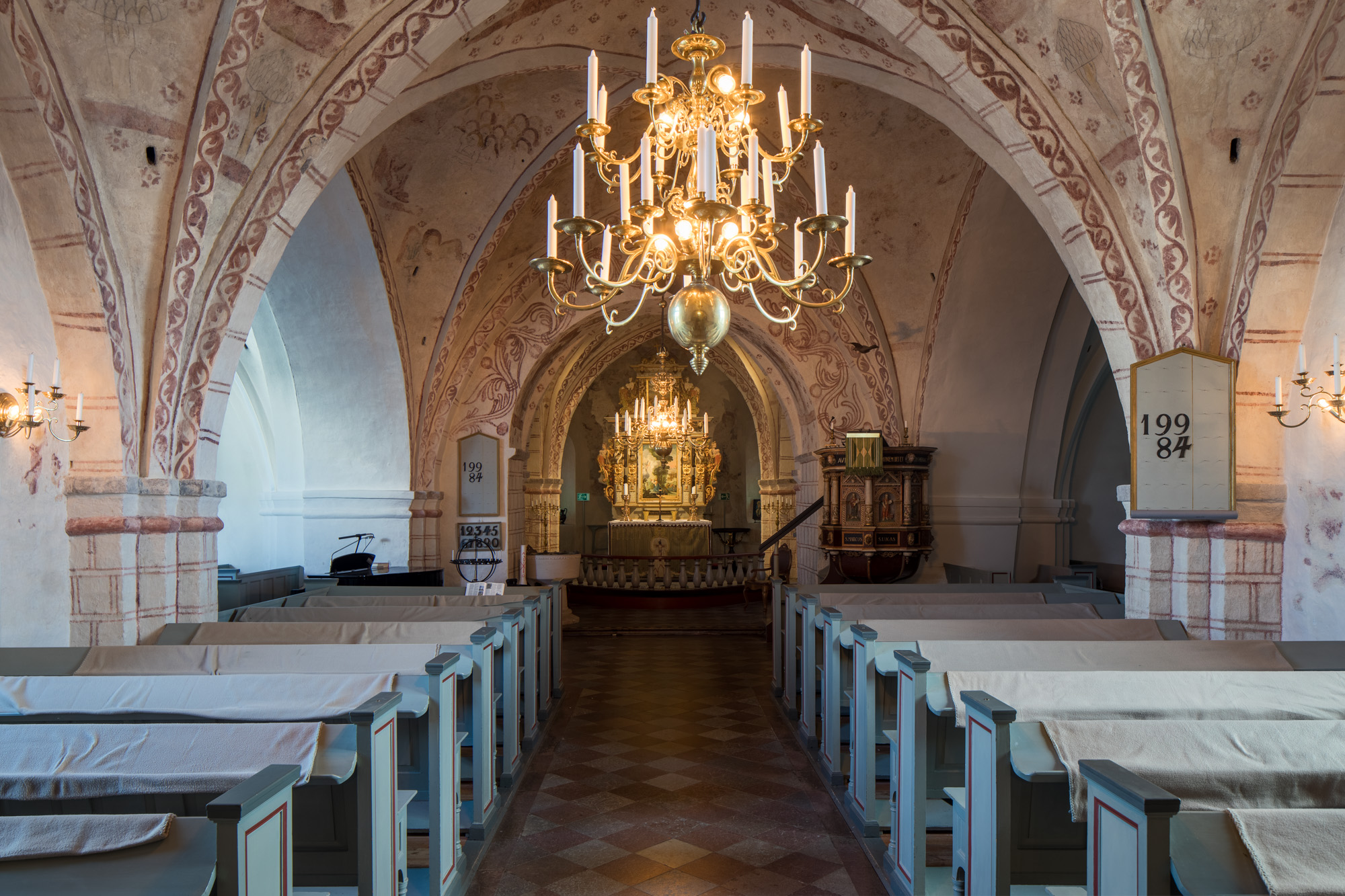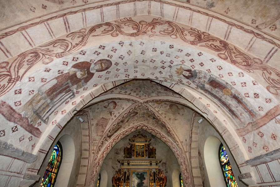 Kalkmalerierne er udført af Lille Harrie værkstedet omkring år 1500, og de fordeler sig over hele kirken fra apsis til tårn.