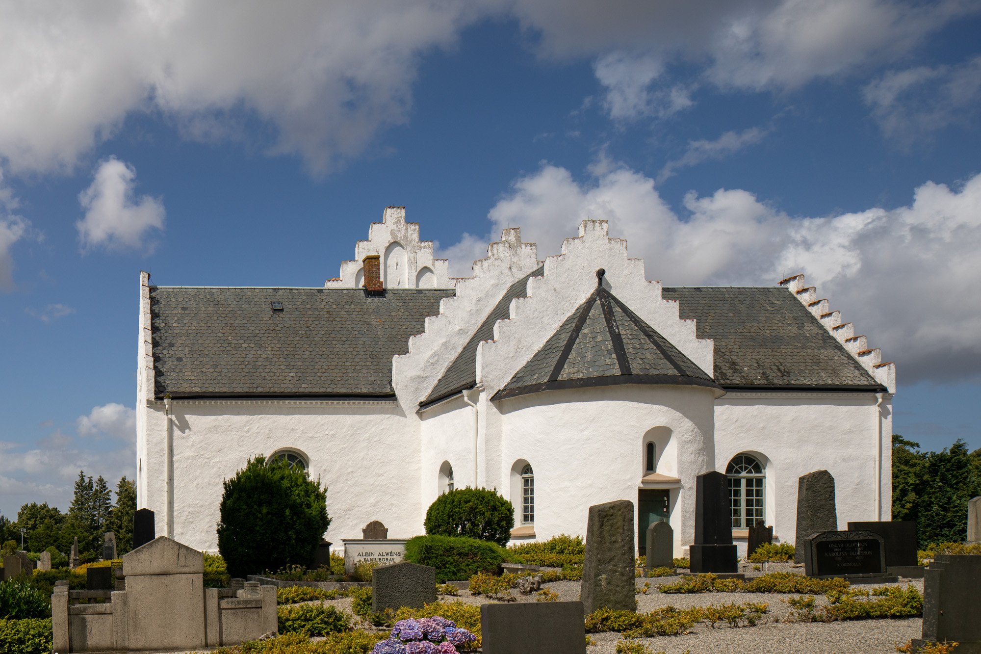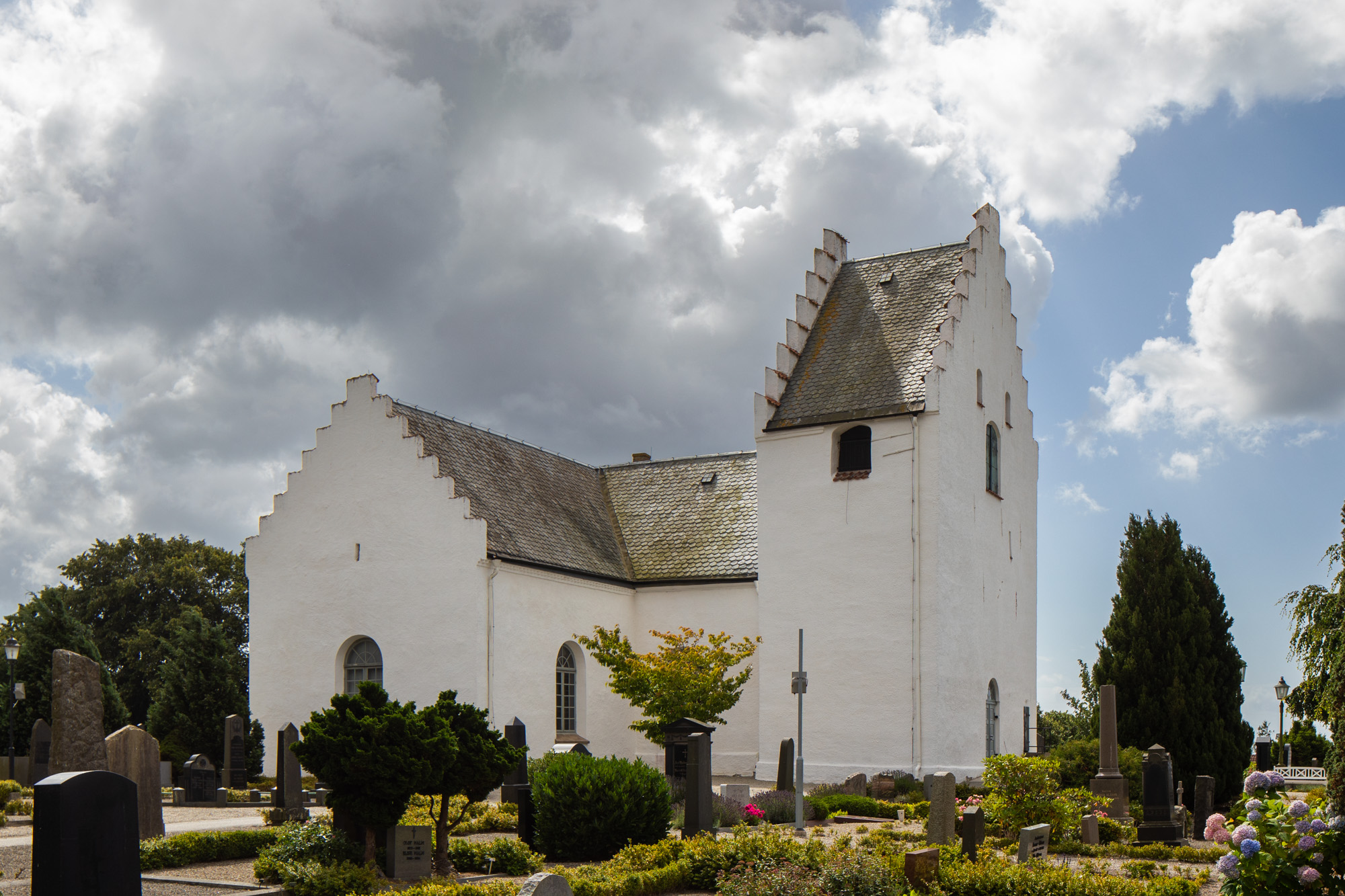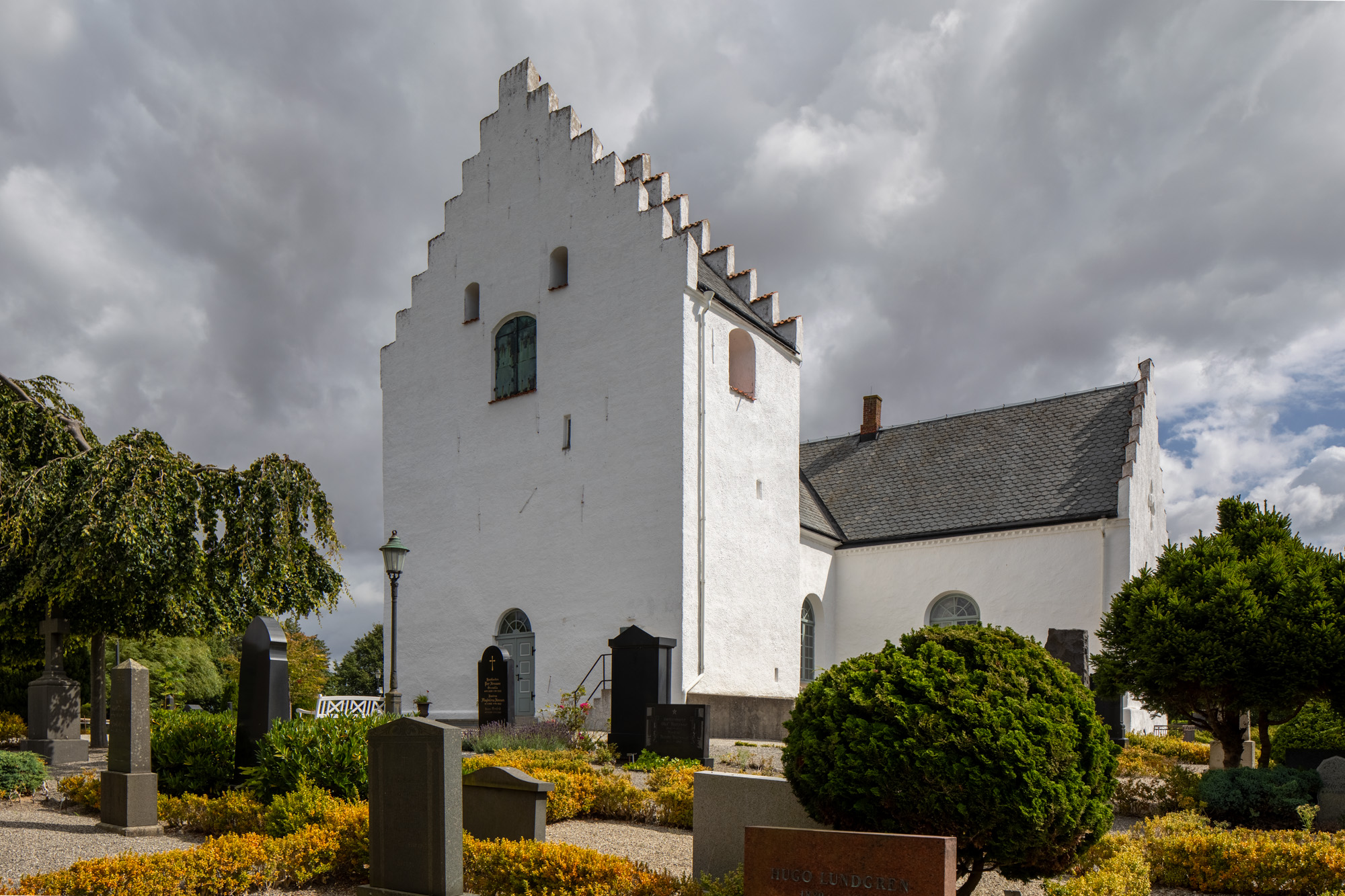 Kirken er bygget i 1100-tallet og opført af kalksten, komstadsten og kampesten. Den bestod oprindeligt af skib, kor og apsis, mens tårnet stammer fra 1200-tallet. Det er i hele skibets bredde. Tårnrummet har en tøndehvælving. En vindeltrappe i sydmuren har oprindelig haft indgang indefra, men senere er der lavet en indgang udefra. Denne trappe fører op til tårnets midterste afdeling, mens man kommer til den øverste via en trappe i nordsiden. Oprindeligt har gavlene vendt mod syd og nord, men er blevet ændret formodentlig allerede i senmiddelalderen, så gavlene vender mod øst og vest. Glamhullerne er udvidede. Kirken fik hvælvinger i 1400-tallet. I samme periode blev der opført et våbenhus på sydsiden – og måske også et på nordsiden. I 1700-tallet blev en korsarm opført på kirkens nordside, og endnu en korsarm blev tilføjet 1847 på sydsiden. Dermed forsvandt den oprindelige syddør og våbenhuset. Der blev derefter lavet en indgang gennem tårnets vestside. Den oprindelige sydindgang havde en rundbue med en bred karnisprofil alt af fint tilhugget kalksten.