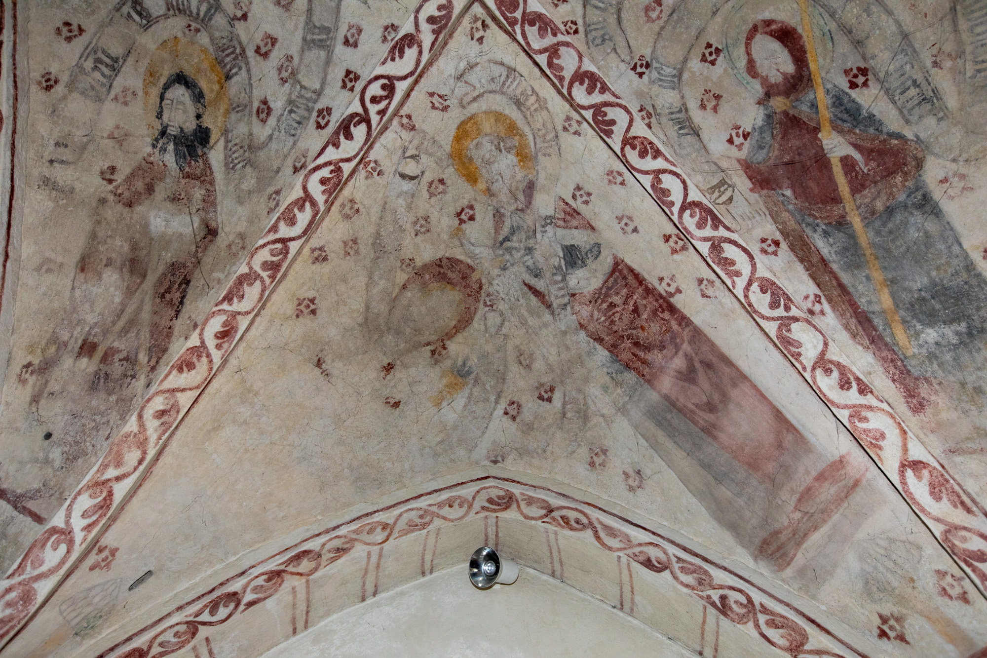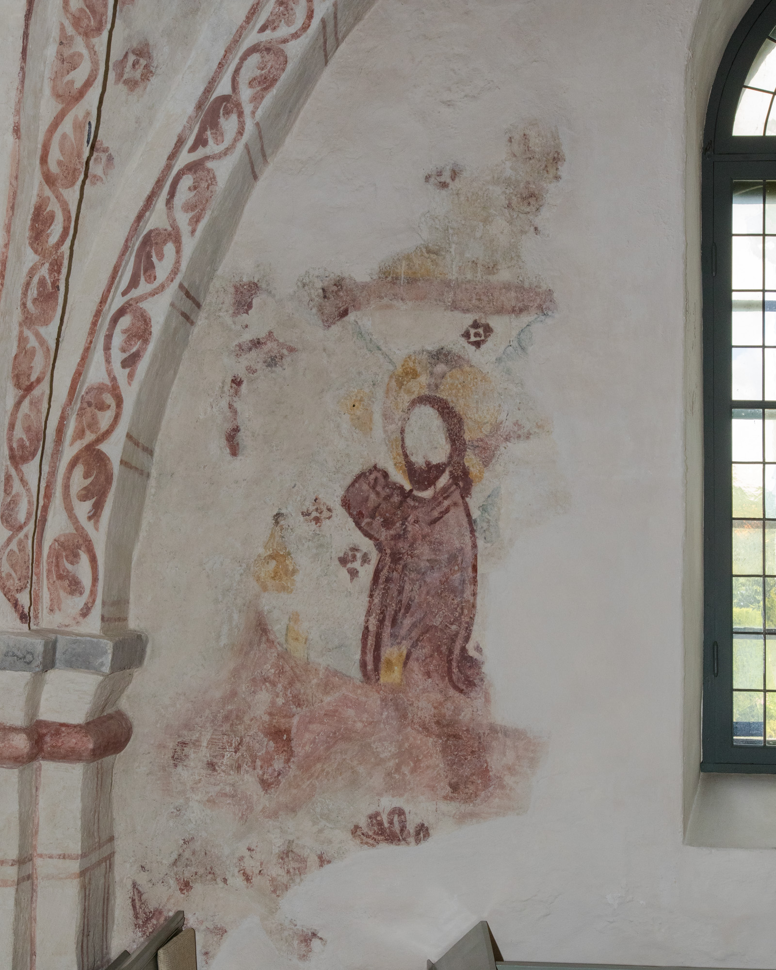 Østvæg på buens nordside. Tre personer med glorier. Uidentificeret.