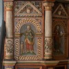 Vestkappe. Thomas: Et sepultus des[cendit] ad [in]ferna t[e]rcia die resurrex[it a] mortuis t[oma]s. – Jakob d.Æ.: Adsendit [sic] ad celos sedet ad dexteram dei pa[tris omni]potentis [i]acobus.