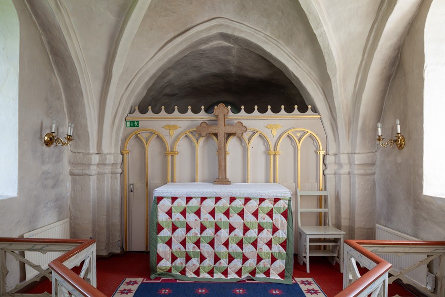 Der er rester af en sekundær senmiddelalderlig bemaling.