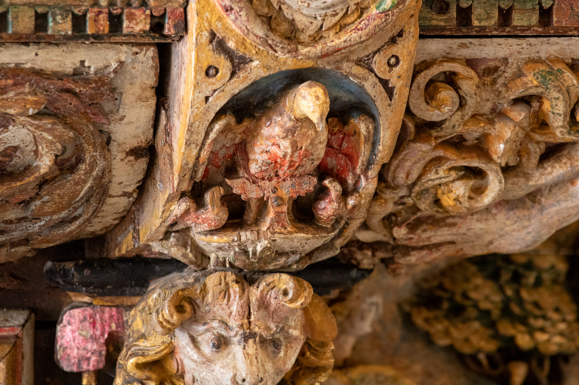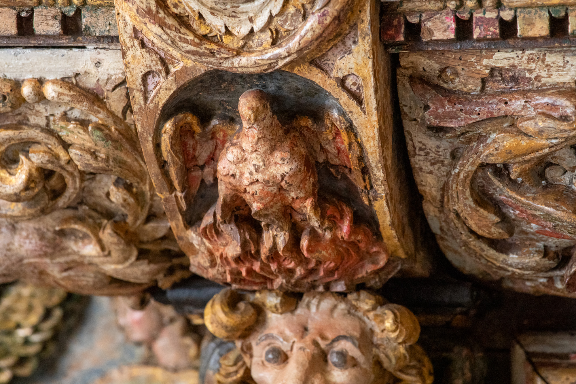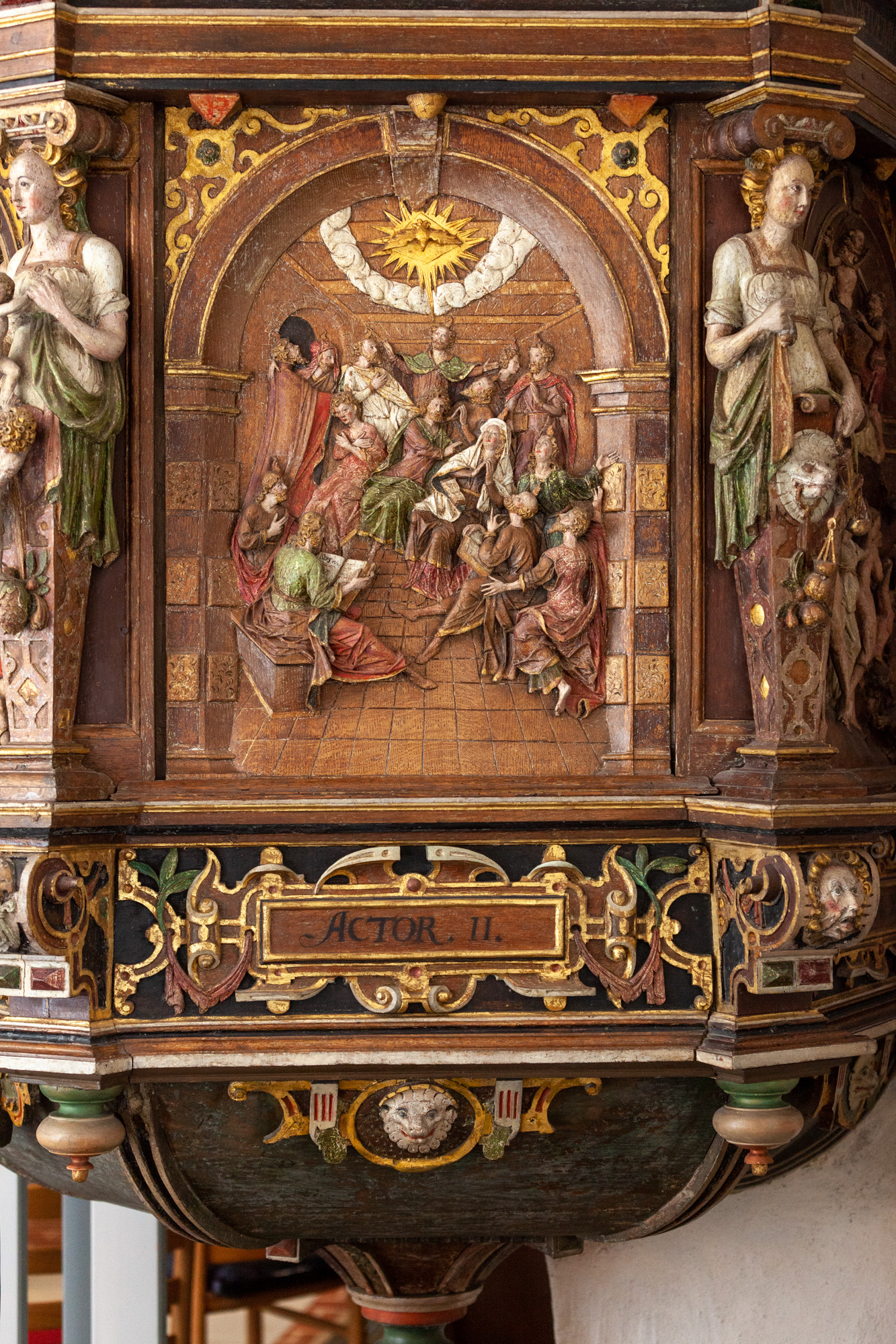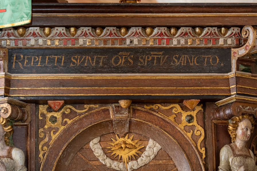 Maria i Solgissel (se også lydhimlen over prædikestolen) samt Fugl Fønix og Pelikanen er en efterklang af den førreformatoriske billedverden.